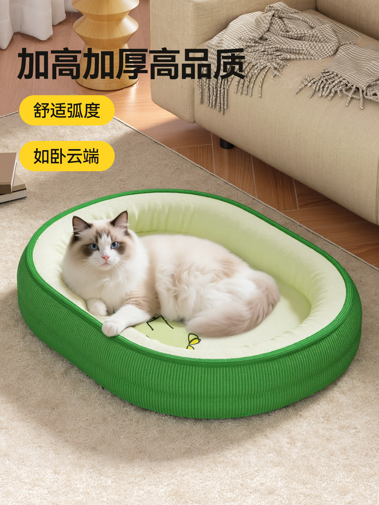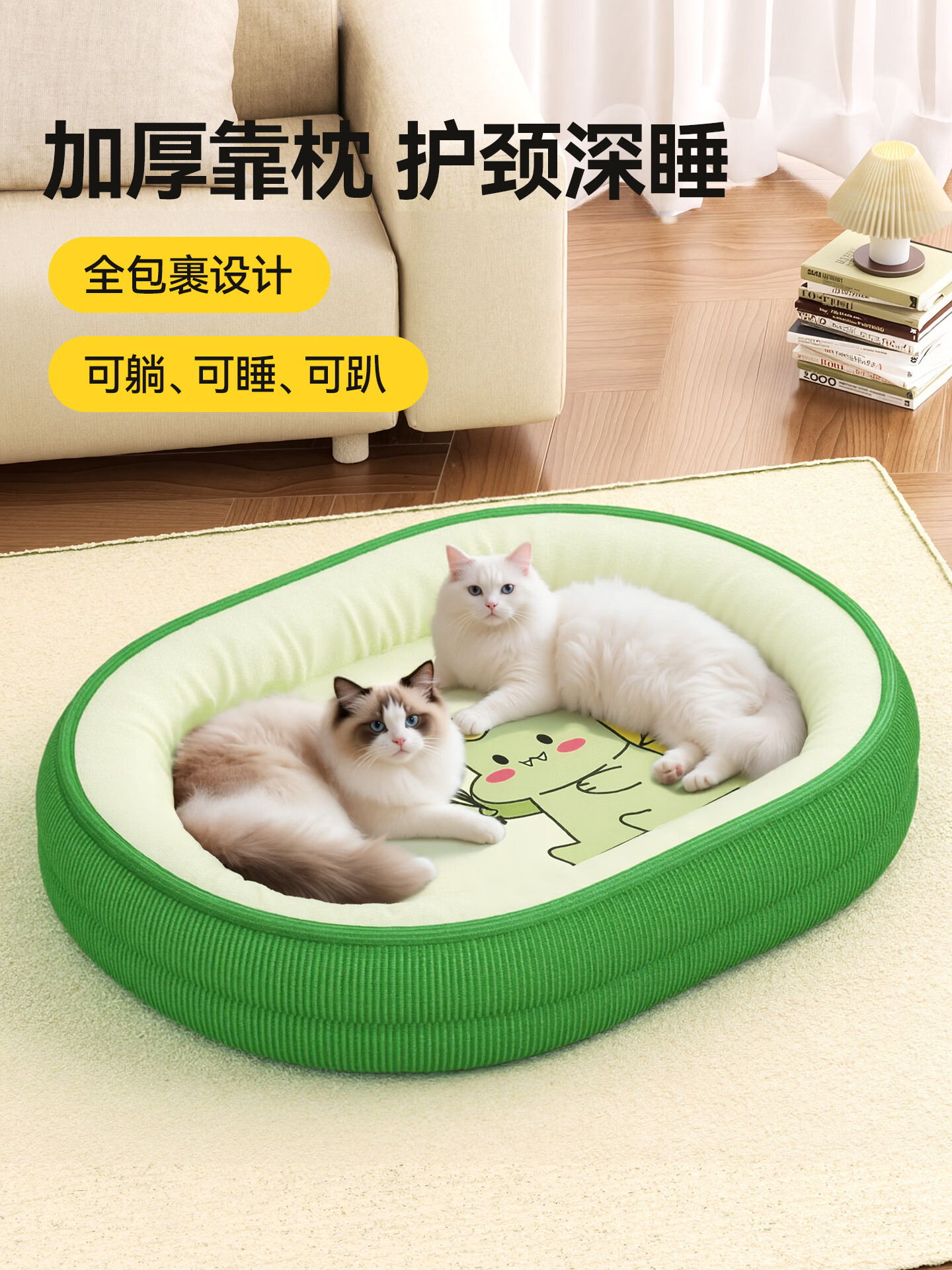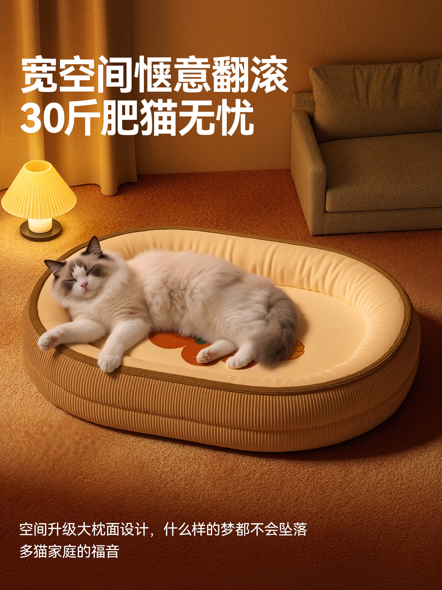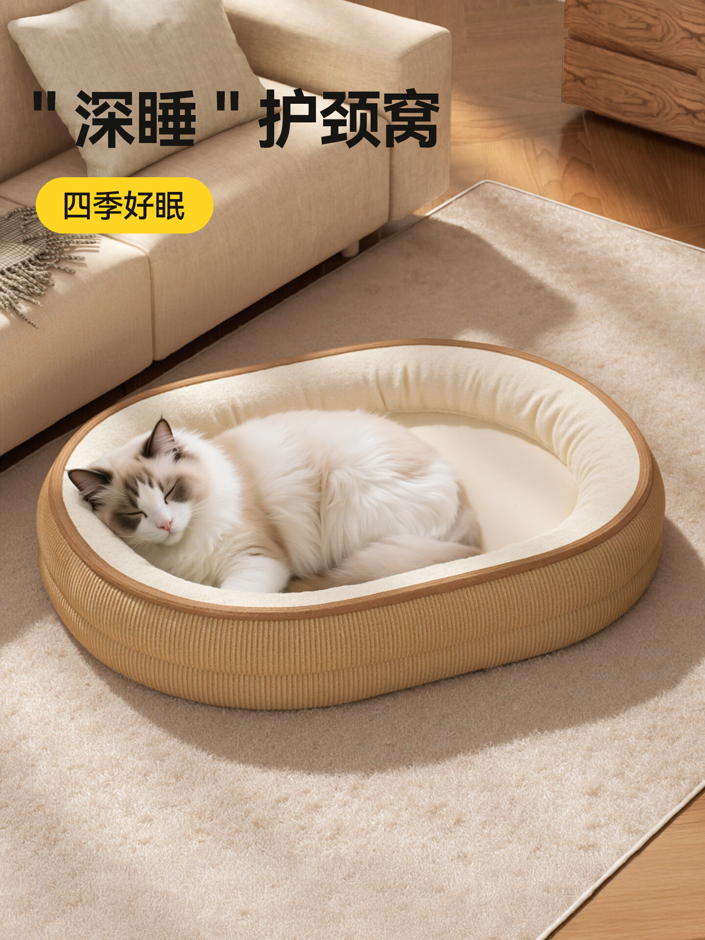 Qioh cat nest, universal for all seasons, oval sleeping nest for cats, large size safe nest for pets, removable and washable small and medium-sized dog mats, brown bear neck nest, soft and comfortable S 40*30cm, recommended within 5 pounds