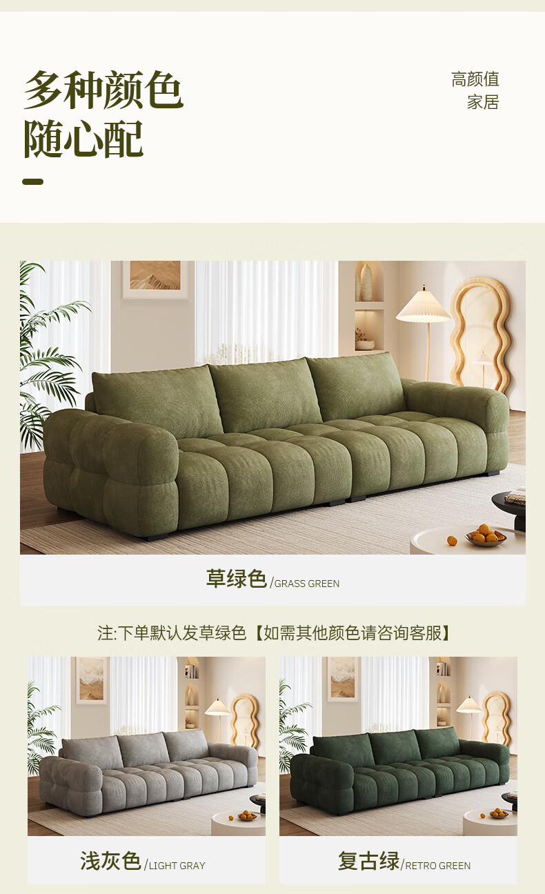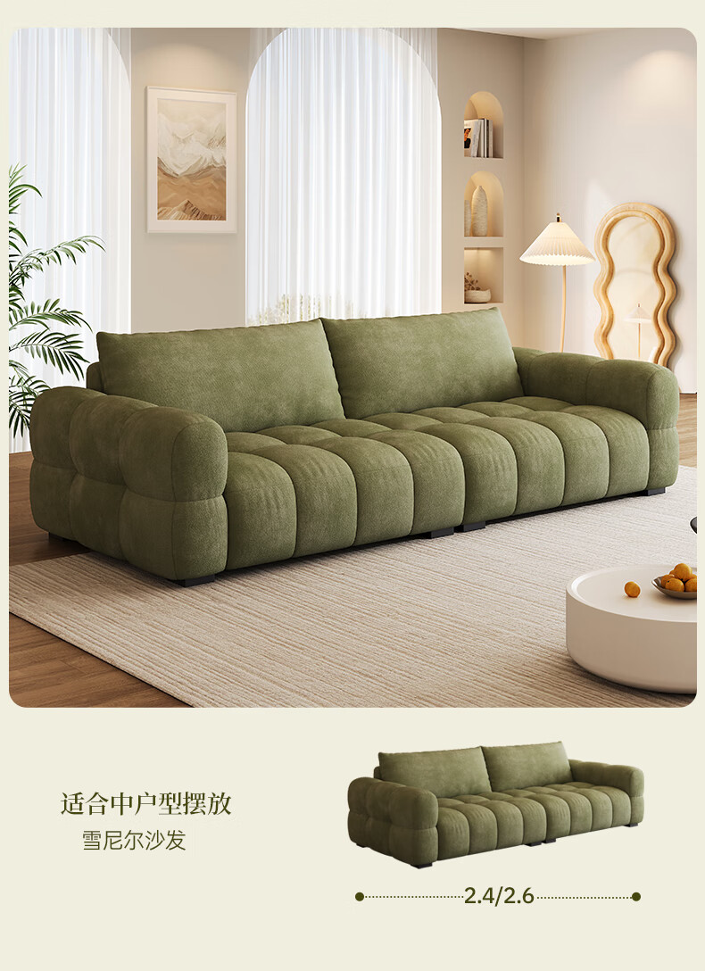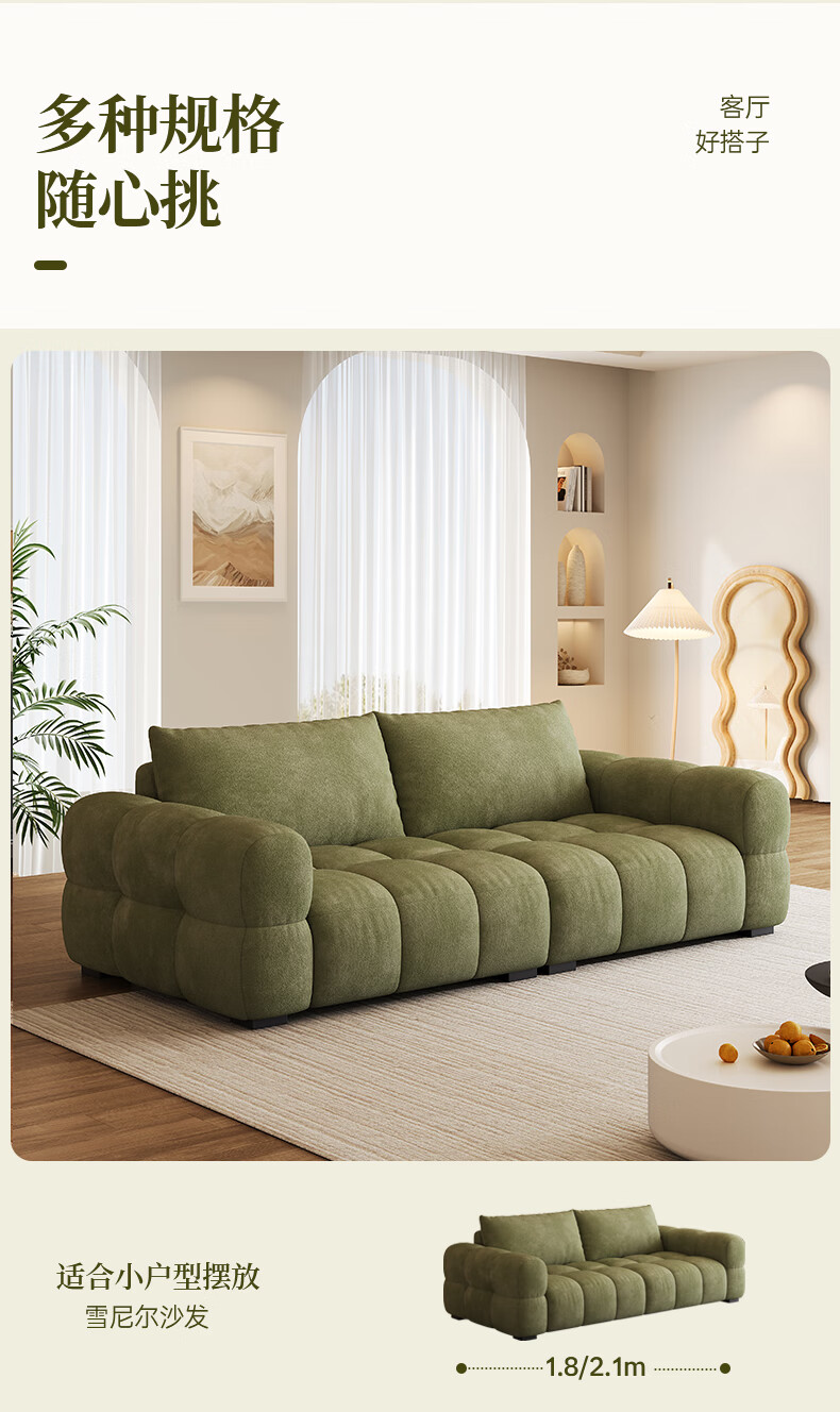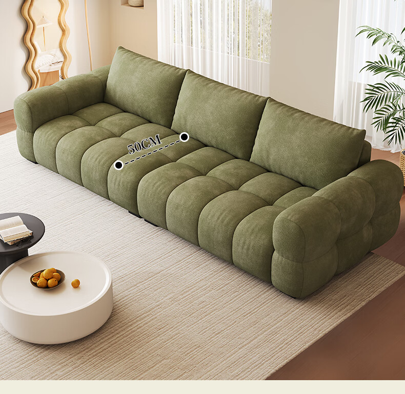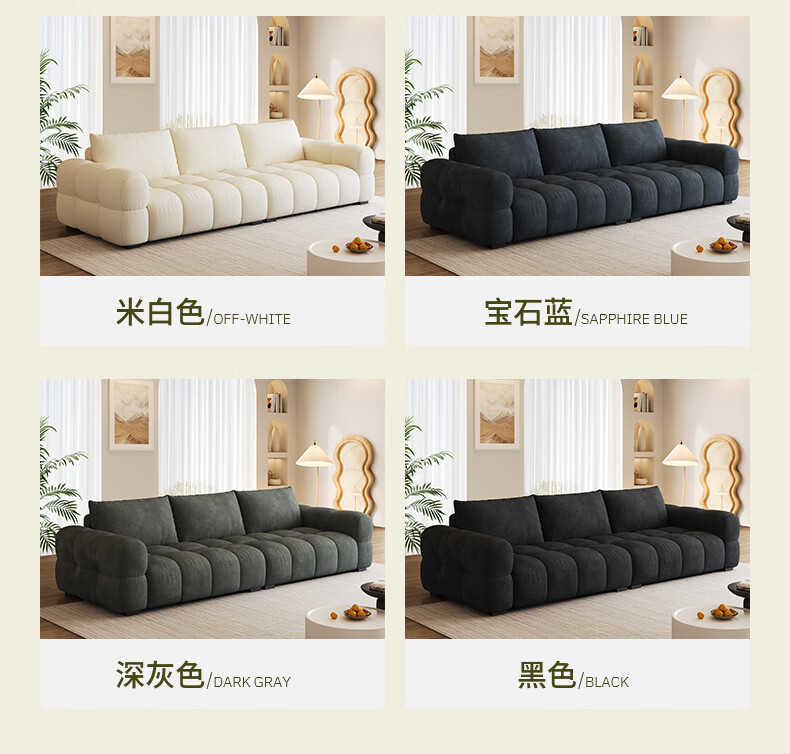 Baifumei Chenil fabric modern simple living room home sofa marshmallow puff cloud straight sofa 2025 new model three people 2.1 meters 80cm wide 30% selection - cat claw flannel - violet sponge + latex cushion