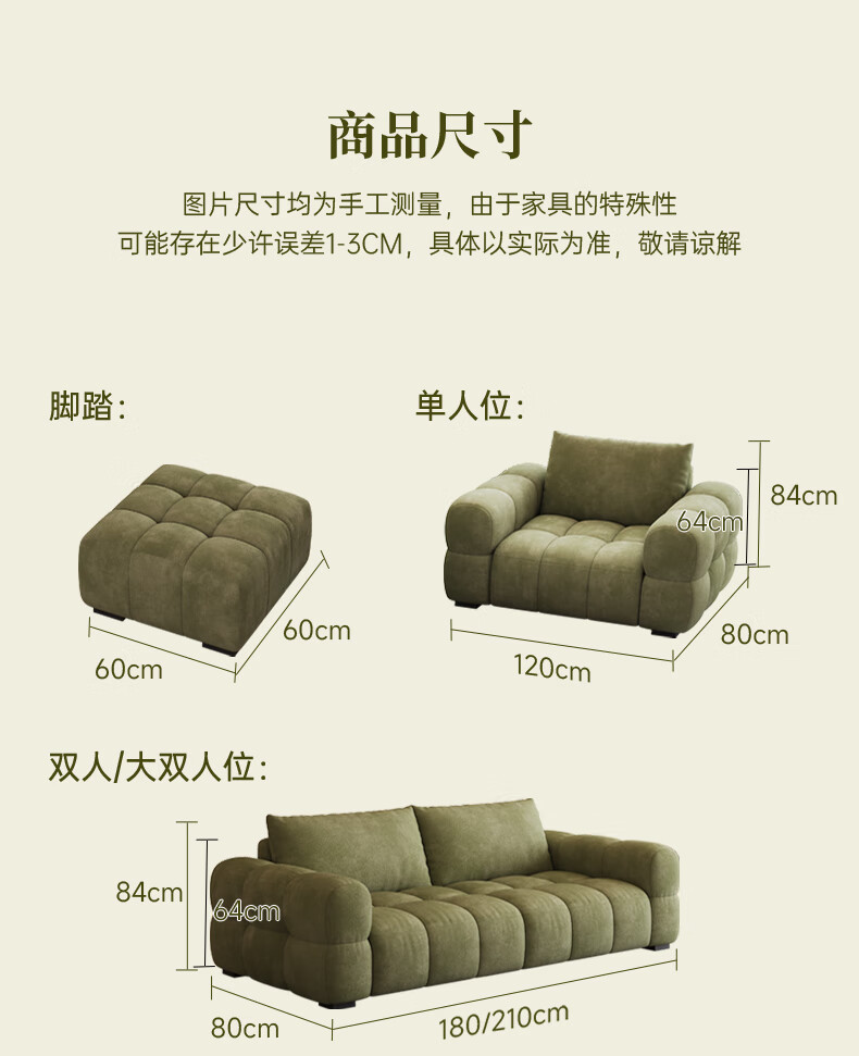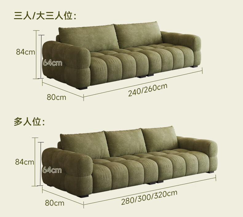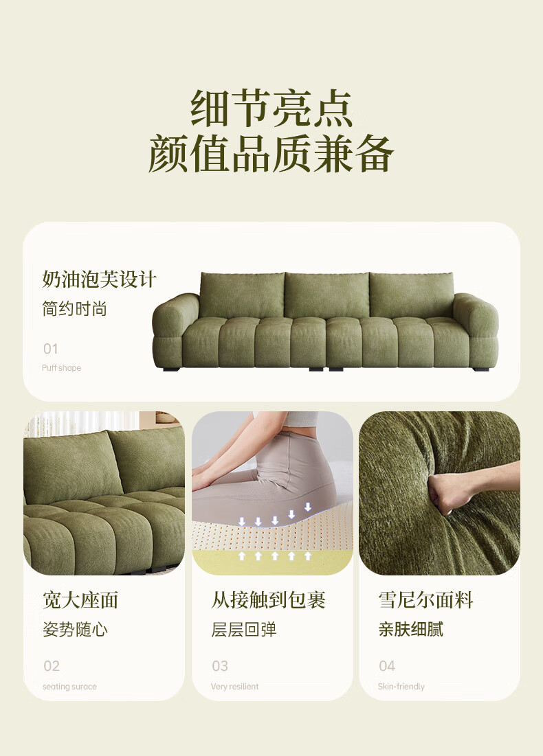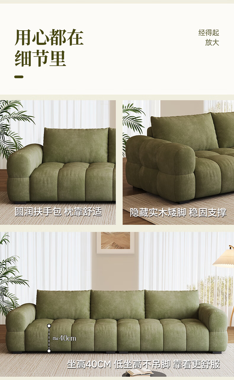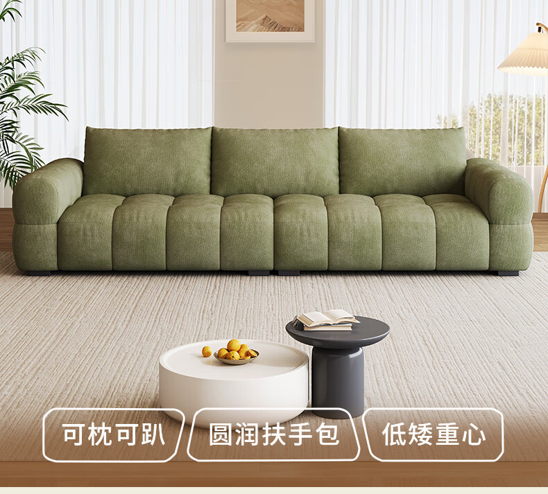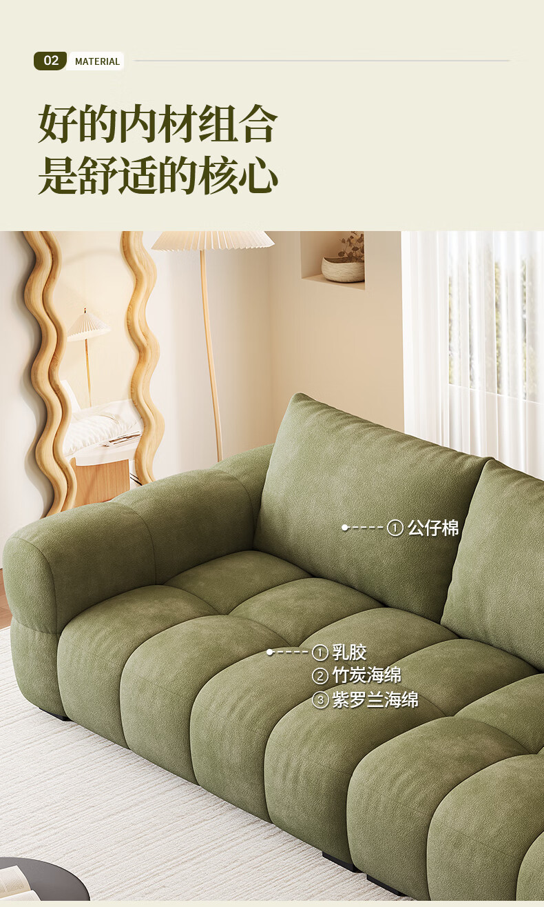 Baifumei Chenil fabric modern simple living room home sofa marshmallow puff cloud straight sofa 2025 new model three people 2.1 meters 80cm wide 30% selection - cat claw flannel - violet sponge + latex cushion