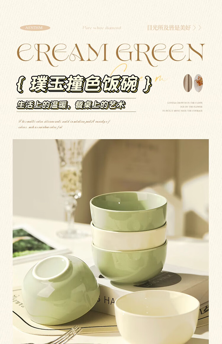 Lowe rice bowl, a particularly good-looking rice bowl for home use, small bowl, high-value tableware, ceramic bowl, large soup bowl, instant noodle bowl, underglaze color, 4 pieces, 4.5-inch rice bowl, mixed colors