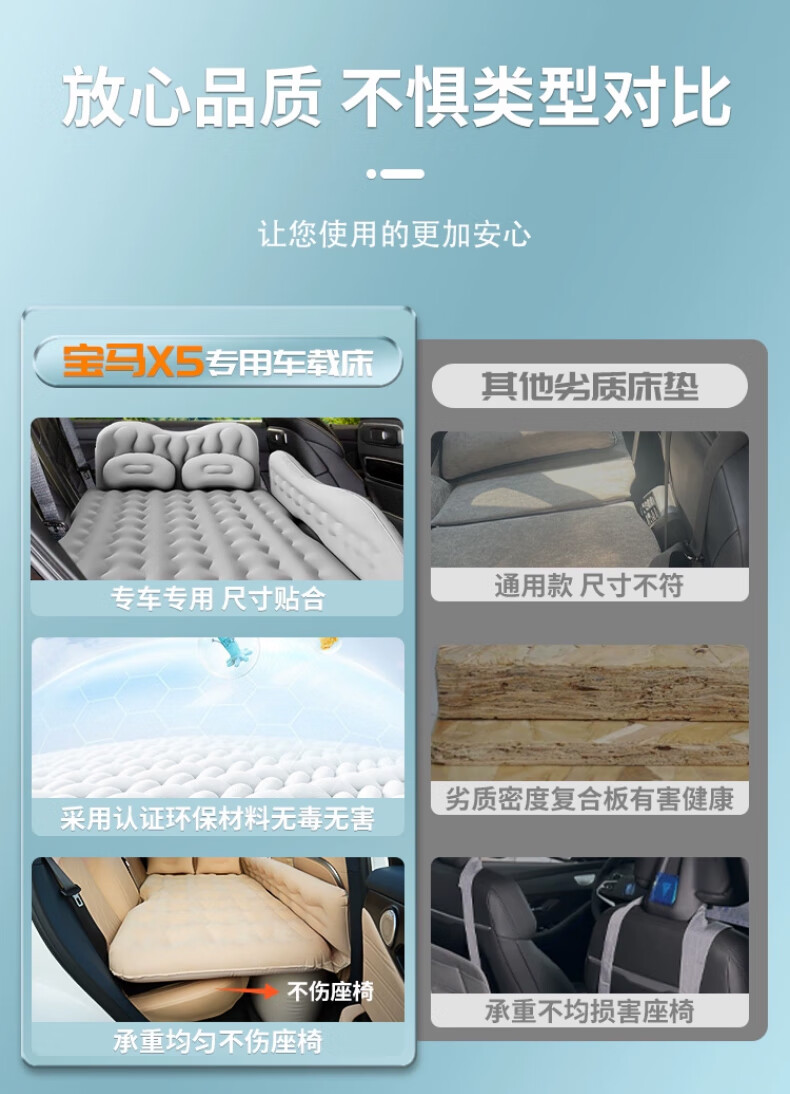 Lumanman BMW X5 special car air mattress sleeping pad car sleeping artifact rear seat car automatic black basic model comes with 2 storage piers + 2 headrests + storage bags Lifetime warranty BMW X5 special car bed
