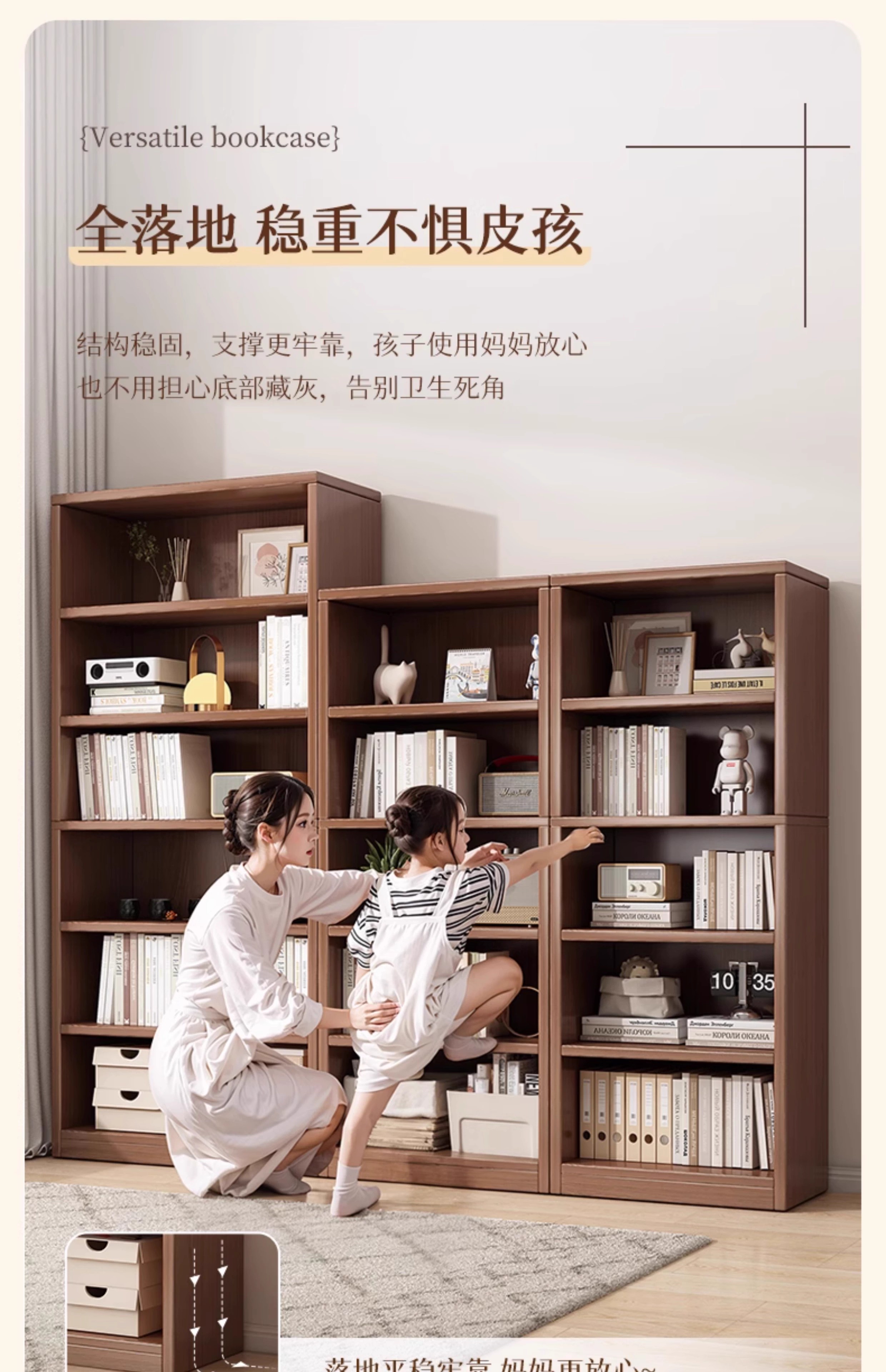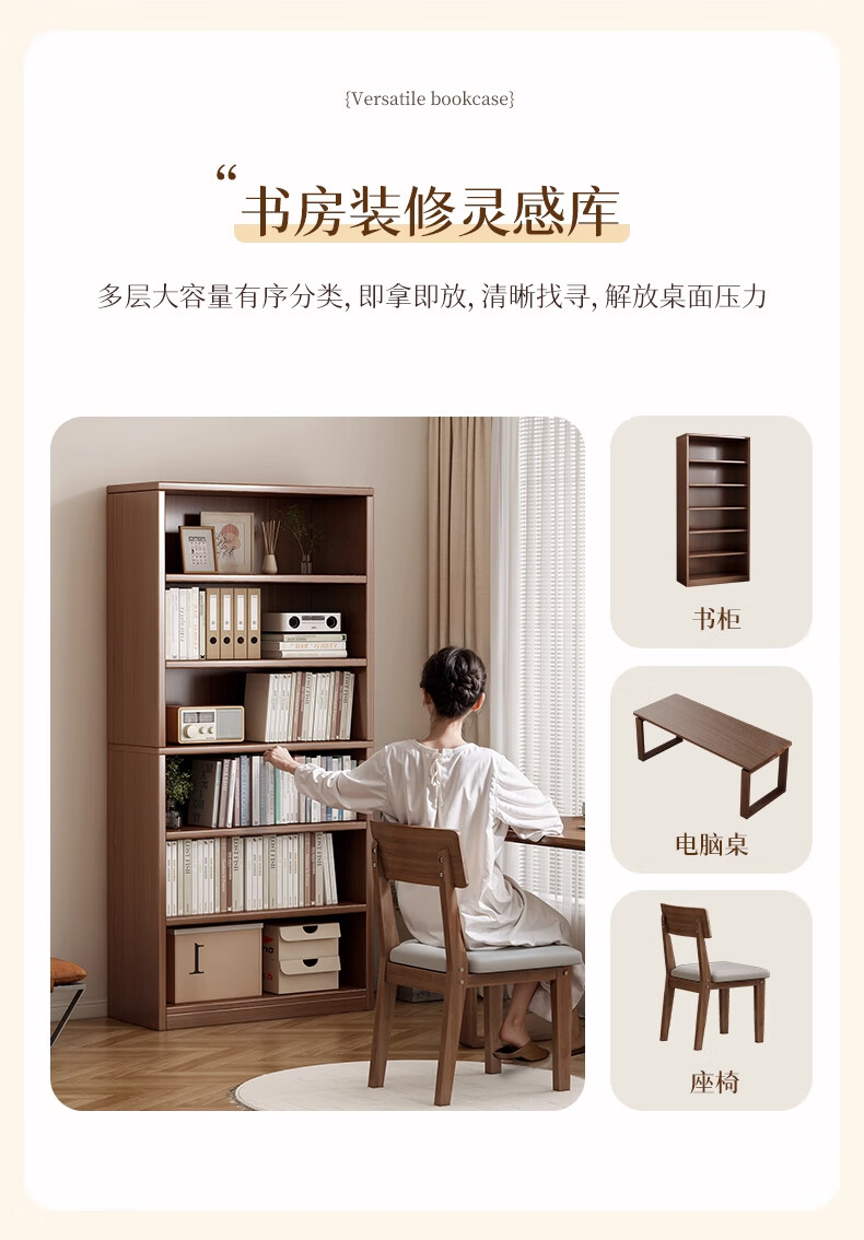 Bookcase storage cabinet floor-standing bedroom study multi-layer book storage cabinet living room display cabinet storage cabinet bookshelf five layers | wilderness oak color 60*30*150 quality density board