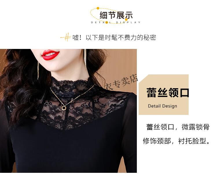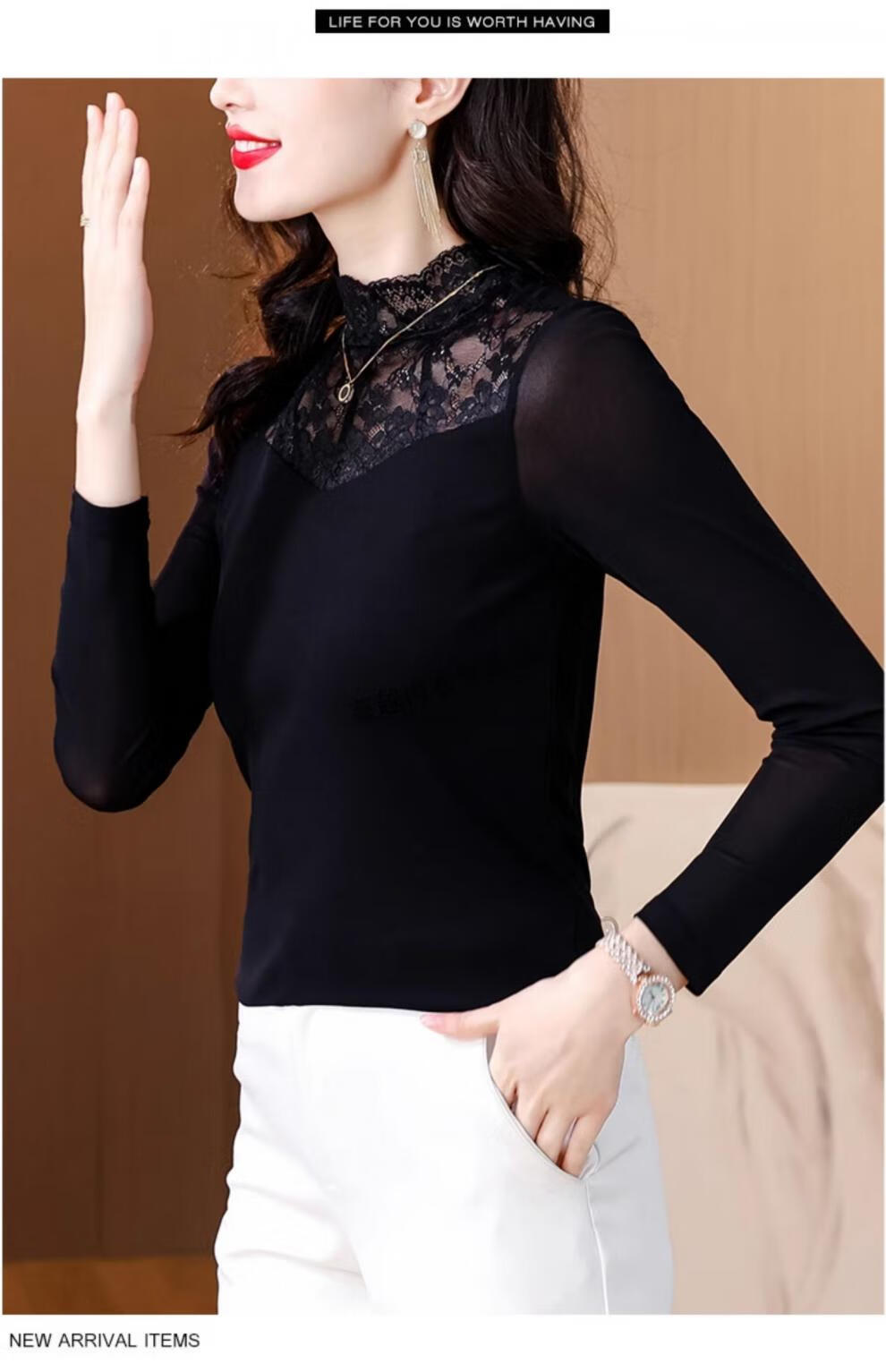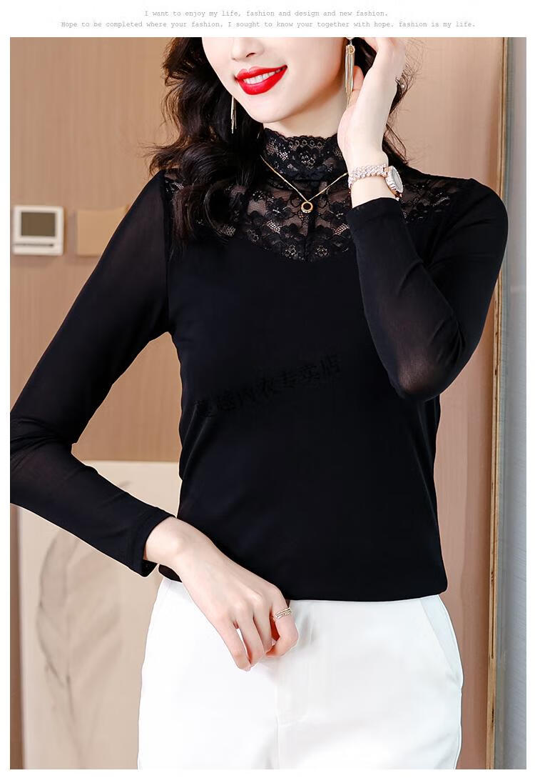 Modal half-high collar lace mesh bottoming shirt long-sleeved women's autumn new slim fit inner shirt slim black T-shirt black regular <this year's trend is chic, beautiful and unique 3XL 125-135 pounds