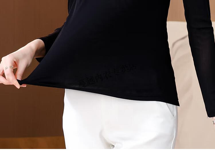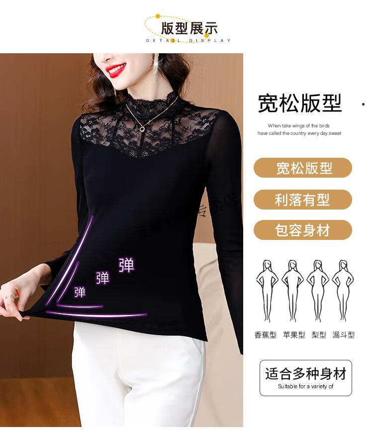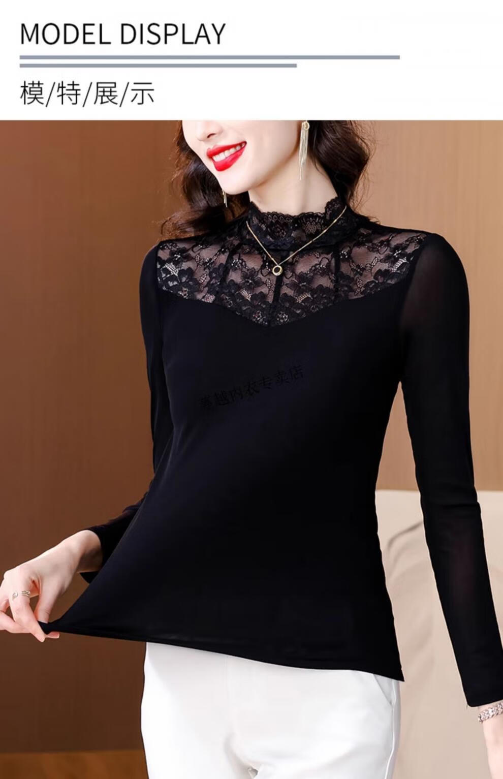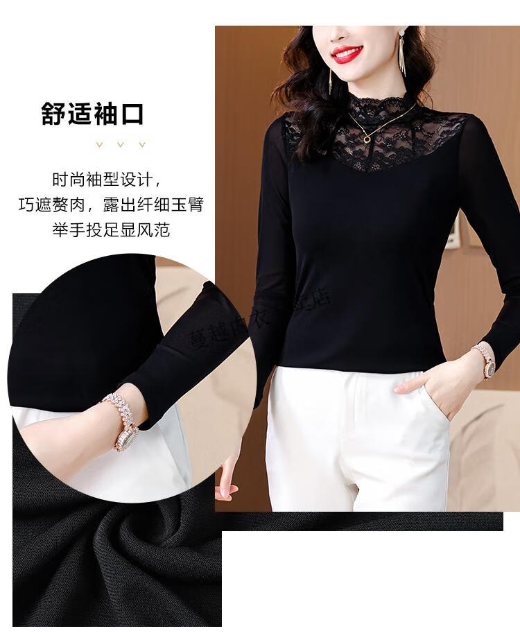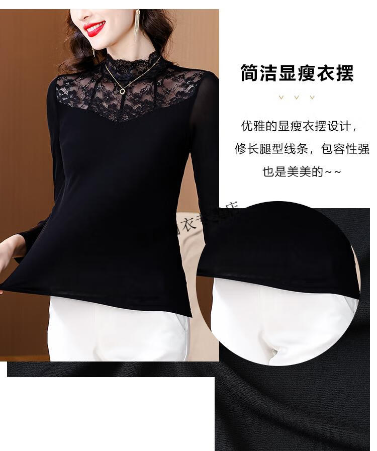 Modal half-high collar lace mesh bottoming shirt long-sleeved women's autumn new slim fit inner shirt slim black T-shirt black regular