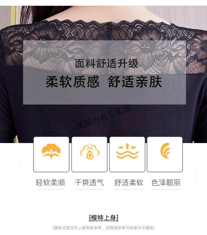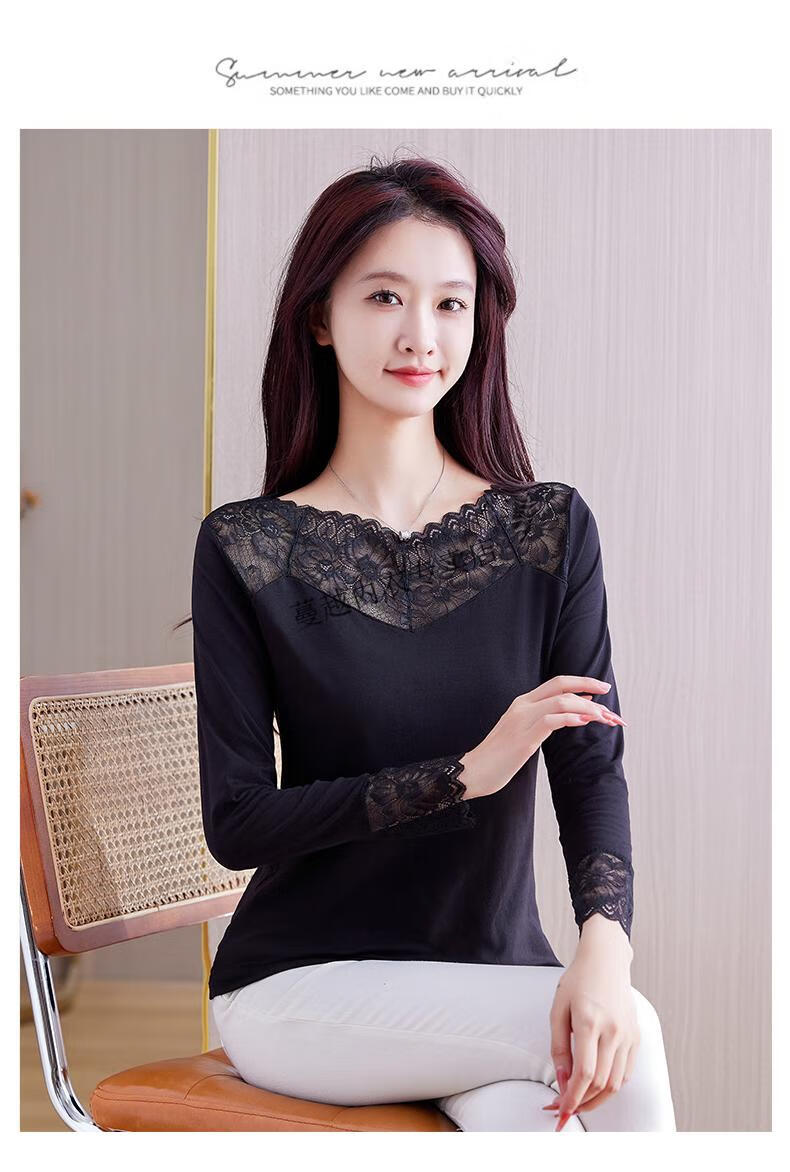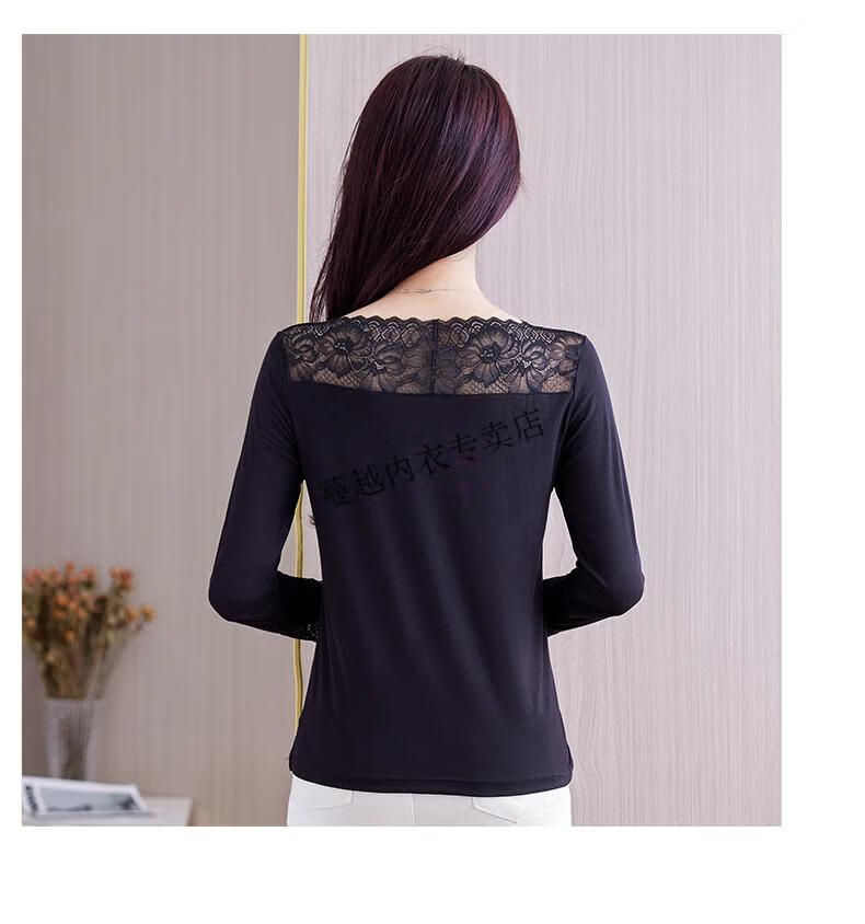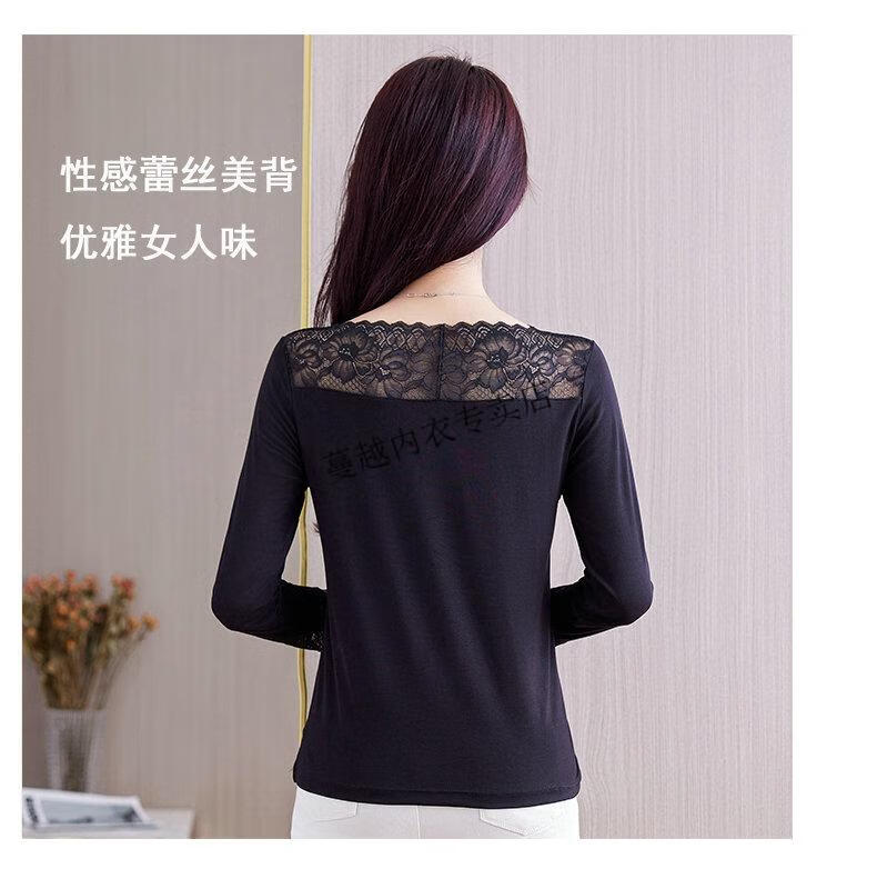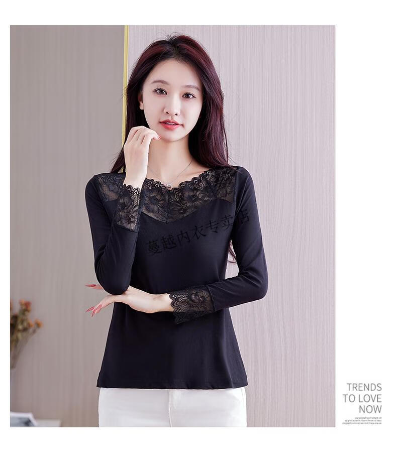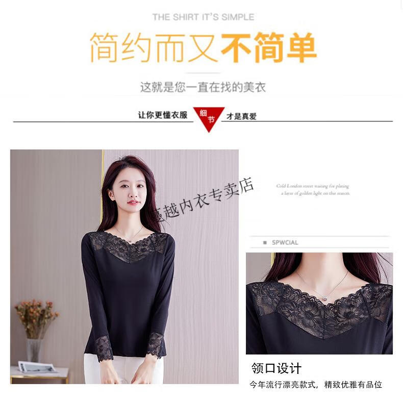 Modal V-neck Modal bottoming shirt for women low-neck versatile lace bottoming shirt 2026 autumn new trend 8145 black V-neck rose lace long-sleeves One size fits all 90kg-130kg