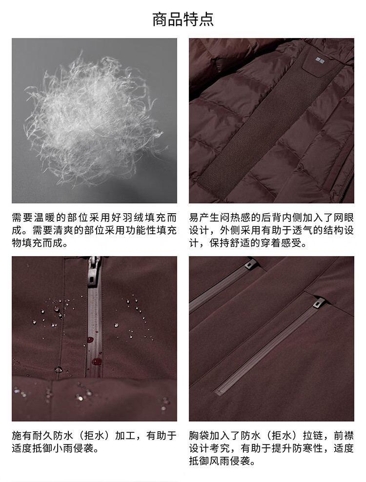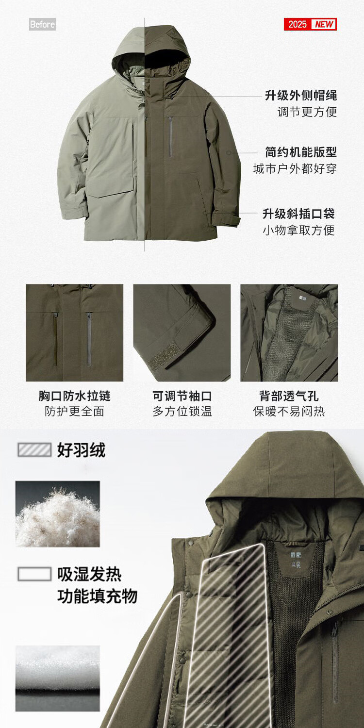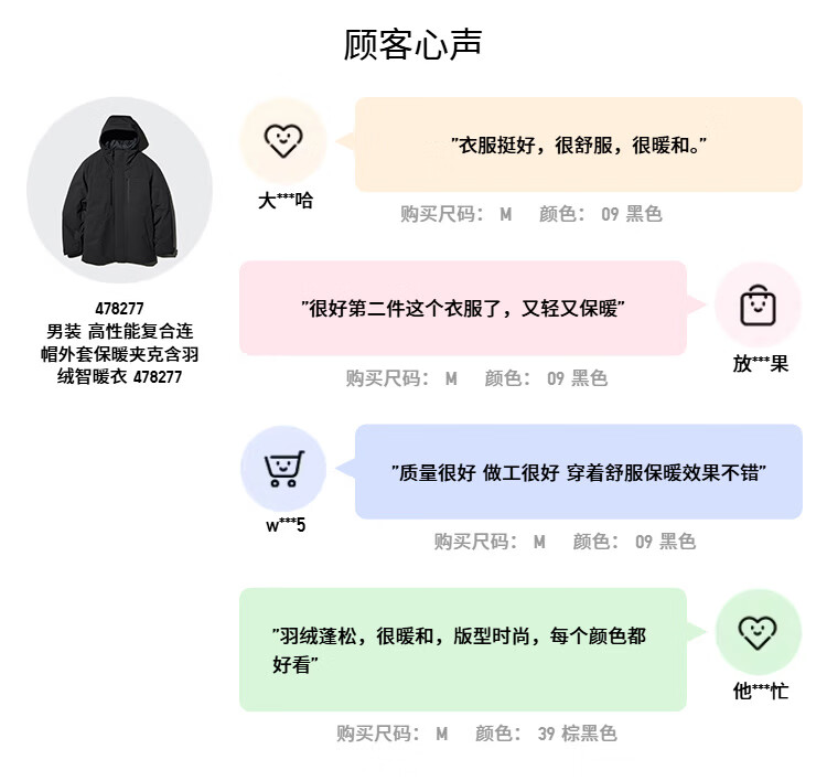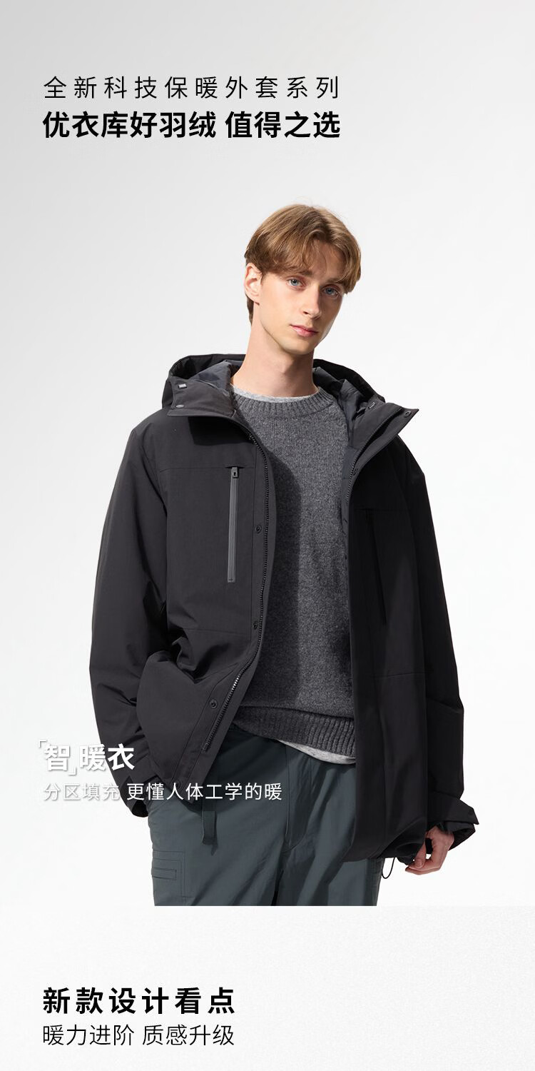 Uniqlo Men's and Women's High Performance Composite Hooded Jacket Warm Jacket with Down Smart Warm Jacket 478277 09 Black L