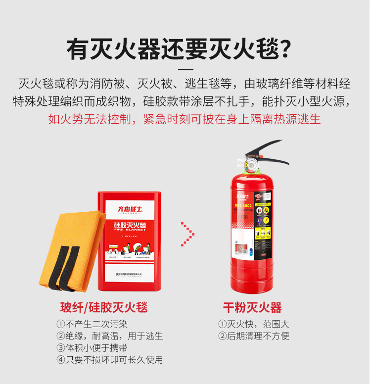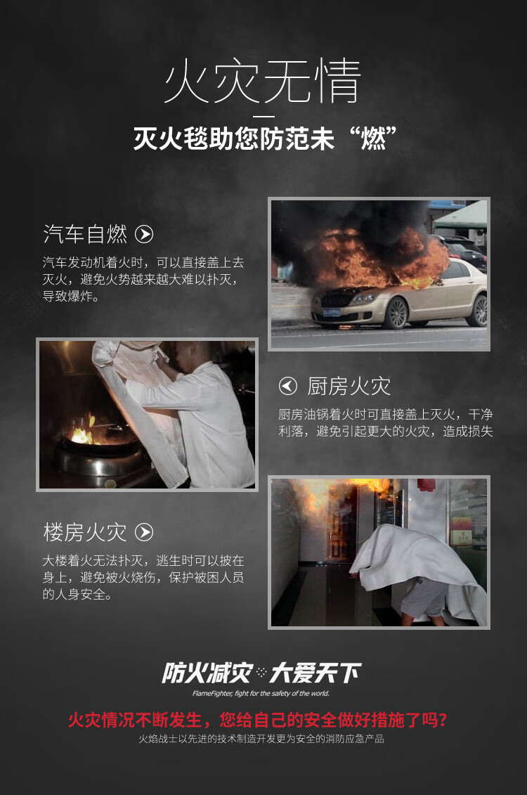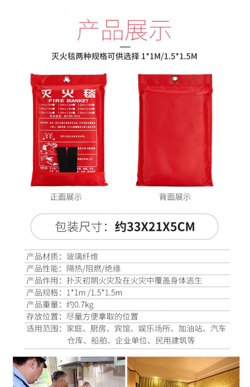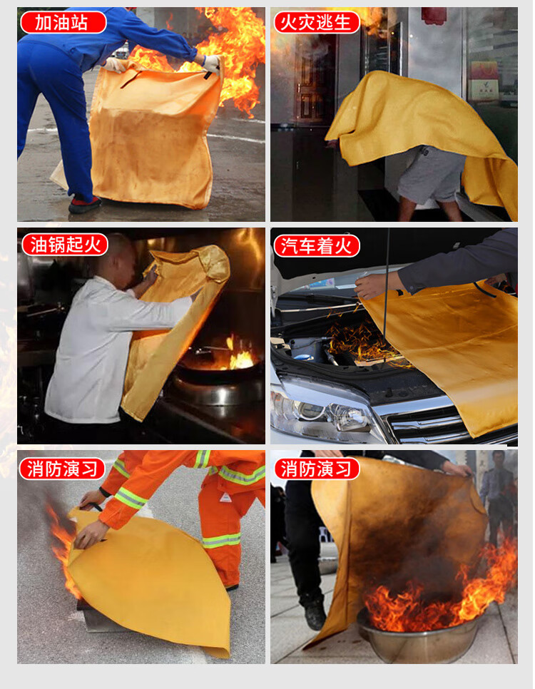 Flame Warrior Fire Blanket Fire Extinguisher Supporting Household Kitchen Factory 1.5m/1m Fiberglass Vehicle Fire Blanket 6*8m