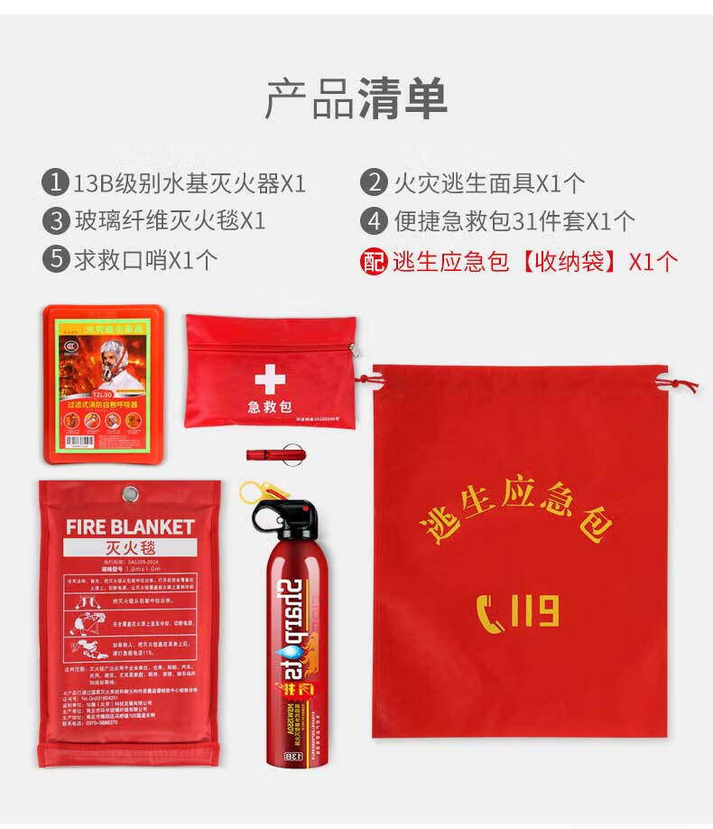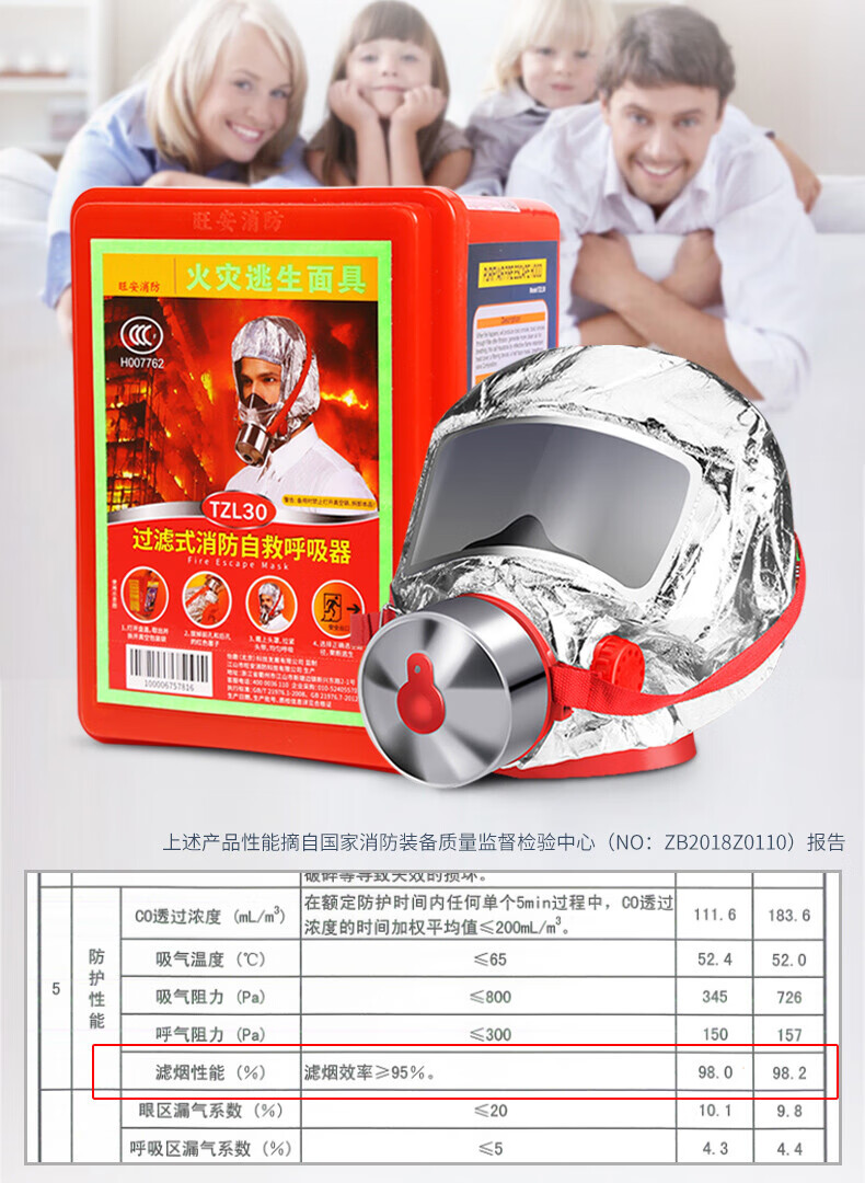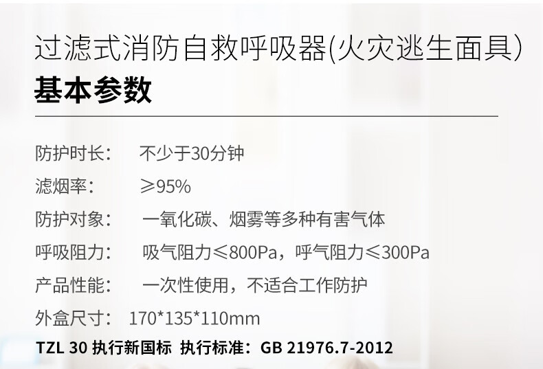 Zhunhang Fire Safety Emergency Civil Defense Set People Fire Mask Fire Blanket Fire Extinguisher First Aid TZL30 Fire Mask 20 Pack