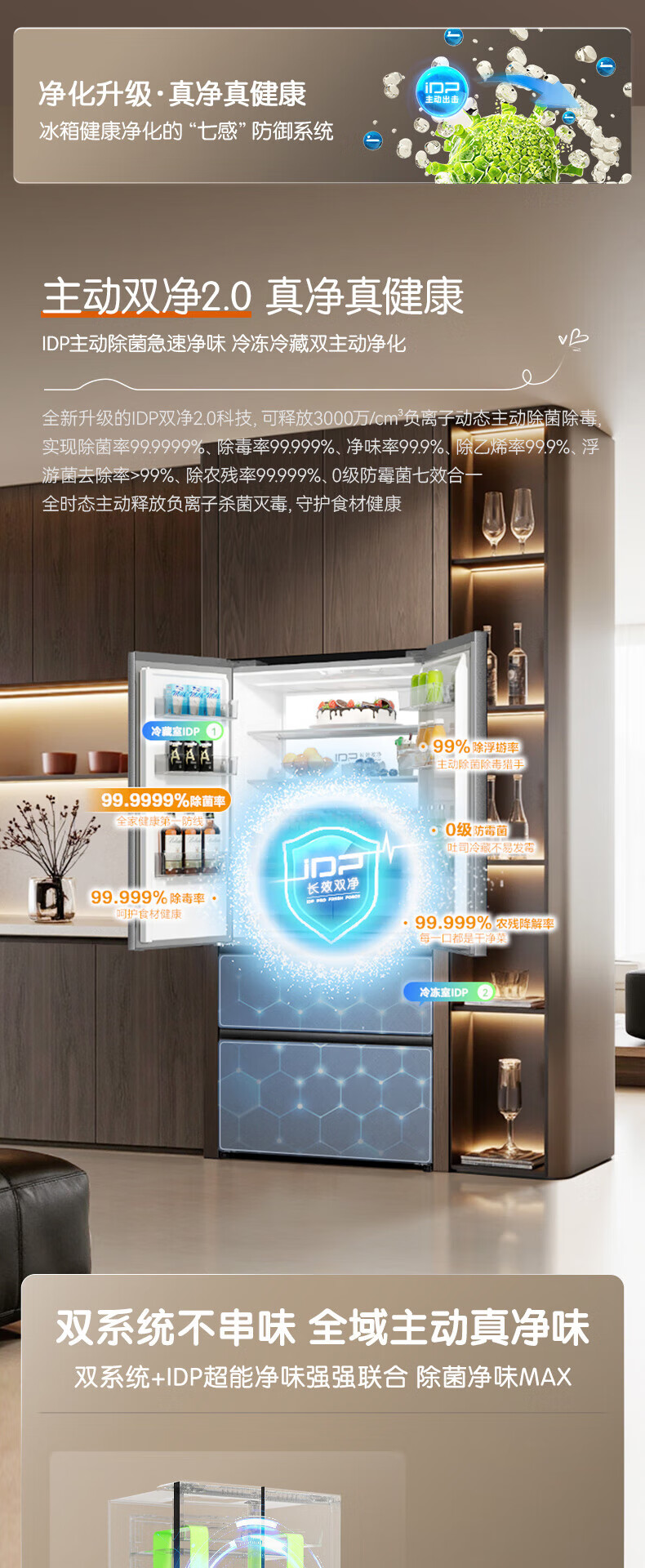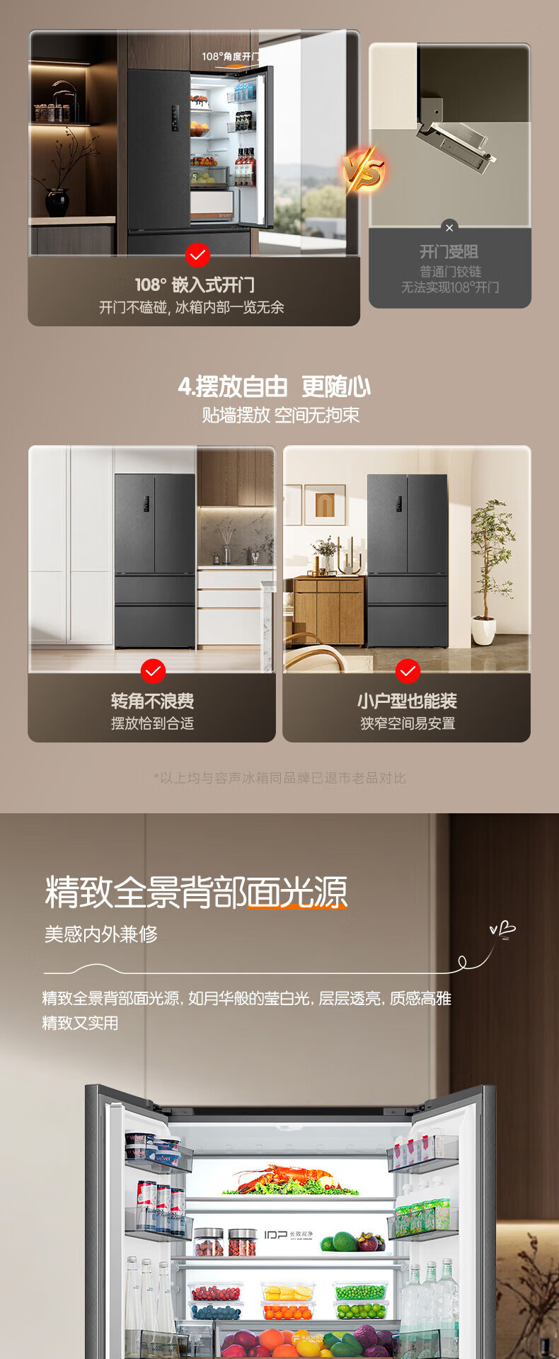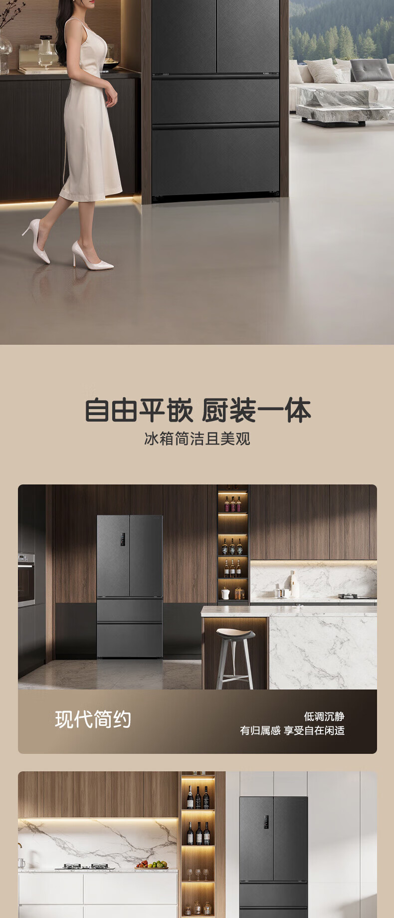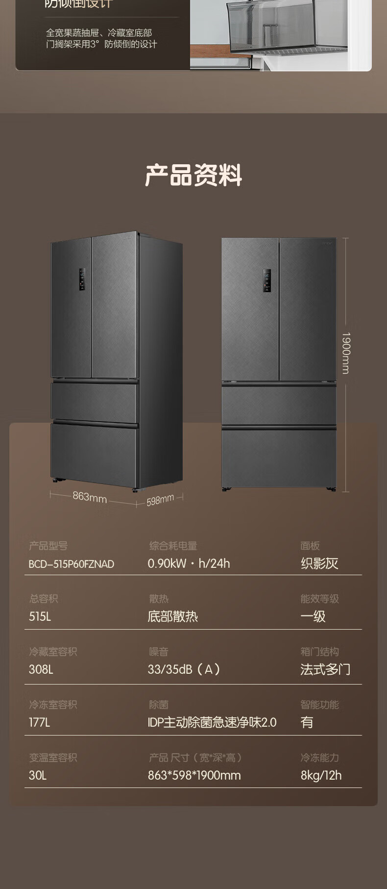 Rongsheng Cube 515 machine king double system French multi-door four-door ultra-thin zero-embedded refrigerator first-class energy efficiency automatic ice making BCD-515P60FZNAD gray national subsidy World Cup 60cm true zero-embedded | bottom cooling ultra-clean automatic ice making