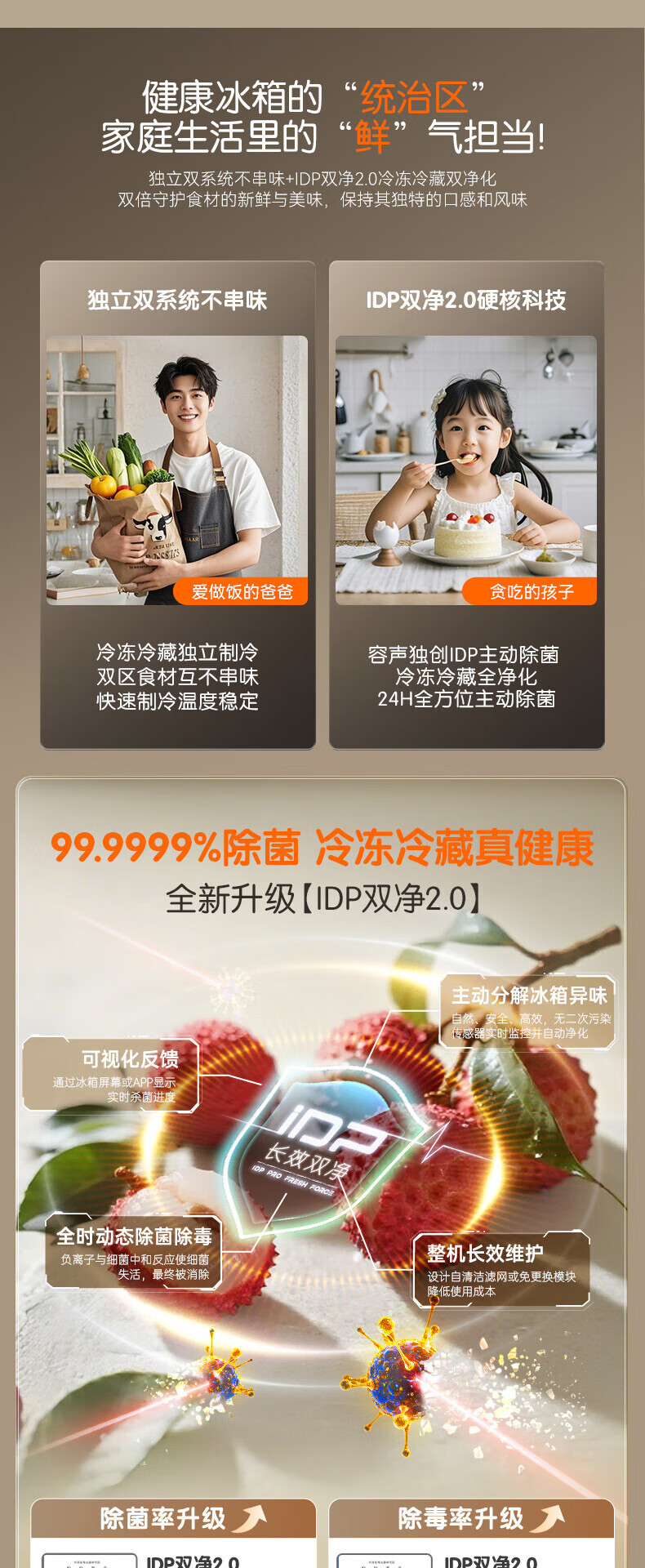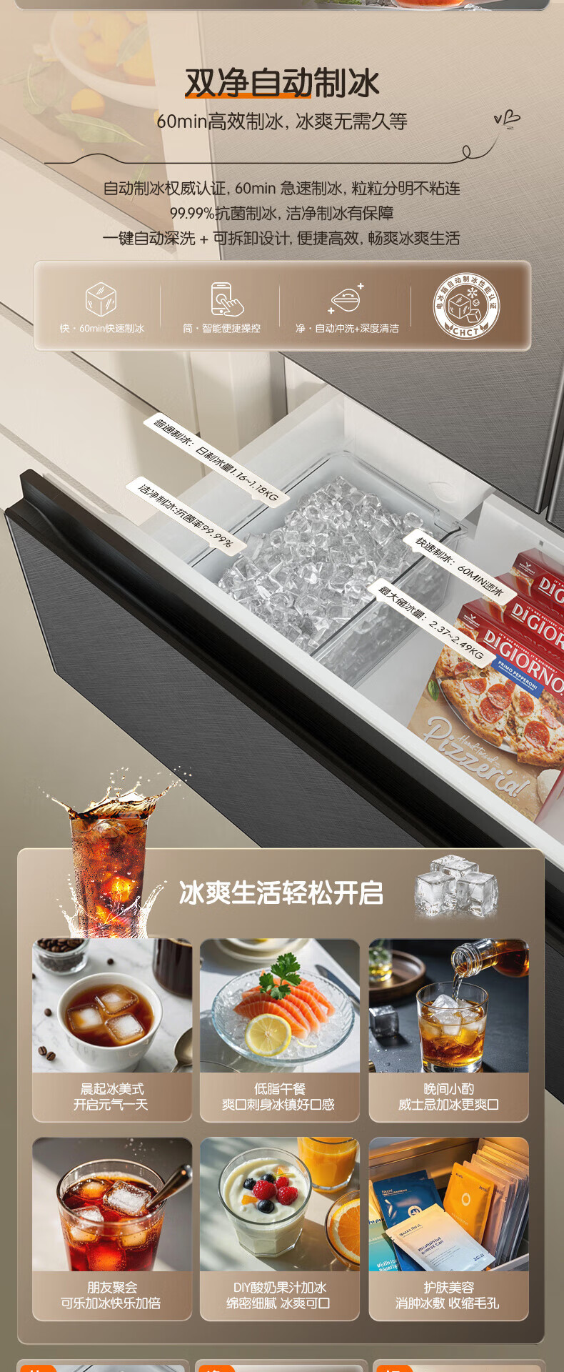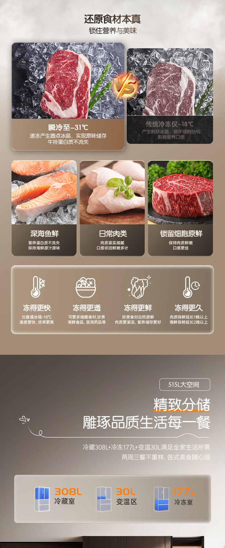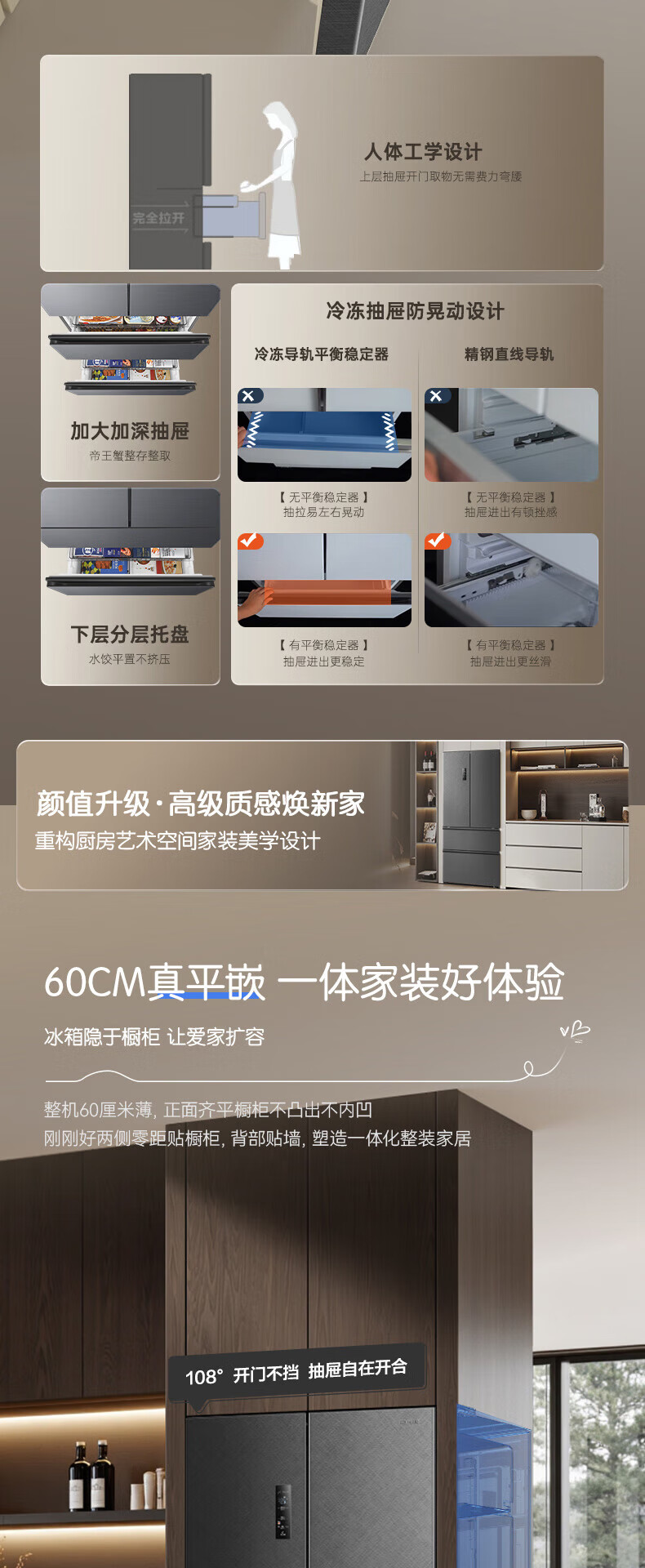 Rongsheng Cube 515 machine king double system French multi-door four-door ultra-thin zero-embedded refrigerator first-class energy efficiency automatic ice making BCD-515P60FZNAD gray national subsidy World Cup 60cm true zero-embedded | bottom cooling ultra-clean automatic ice making