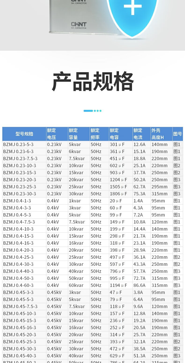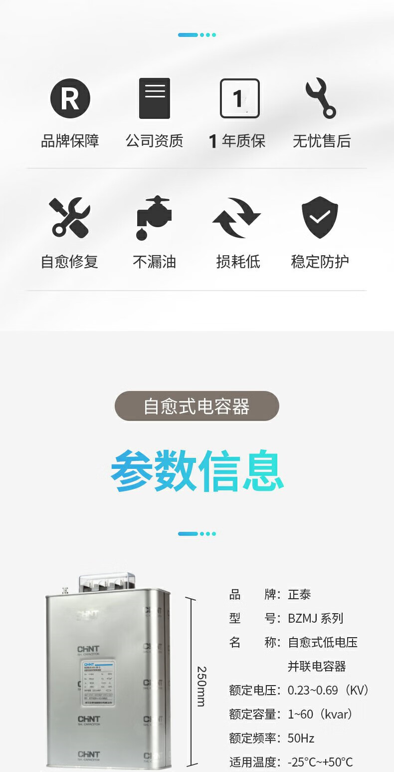 Chint reactive power compensation self-healing capacitor BZMJ0.4 0.45-30-3 low-voltage parallel power compensator BZMJ 0.4-30-3