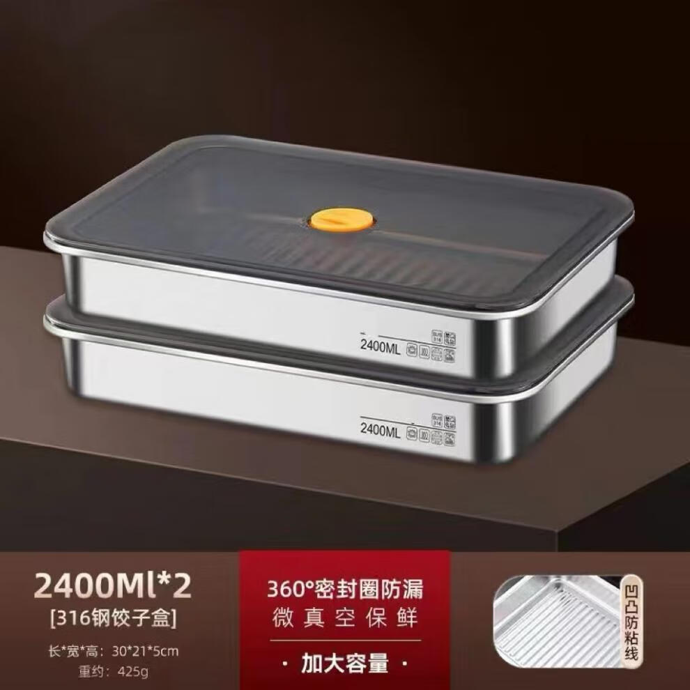 Ye Yu Dumpling Box Household 316 Dumplings Frozen Sealed Preservation Box Wonton Quick Frozen Kitchen Refrigerator Storage Box 316 Steel Dumpling Storage Box (Two)
