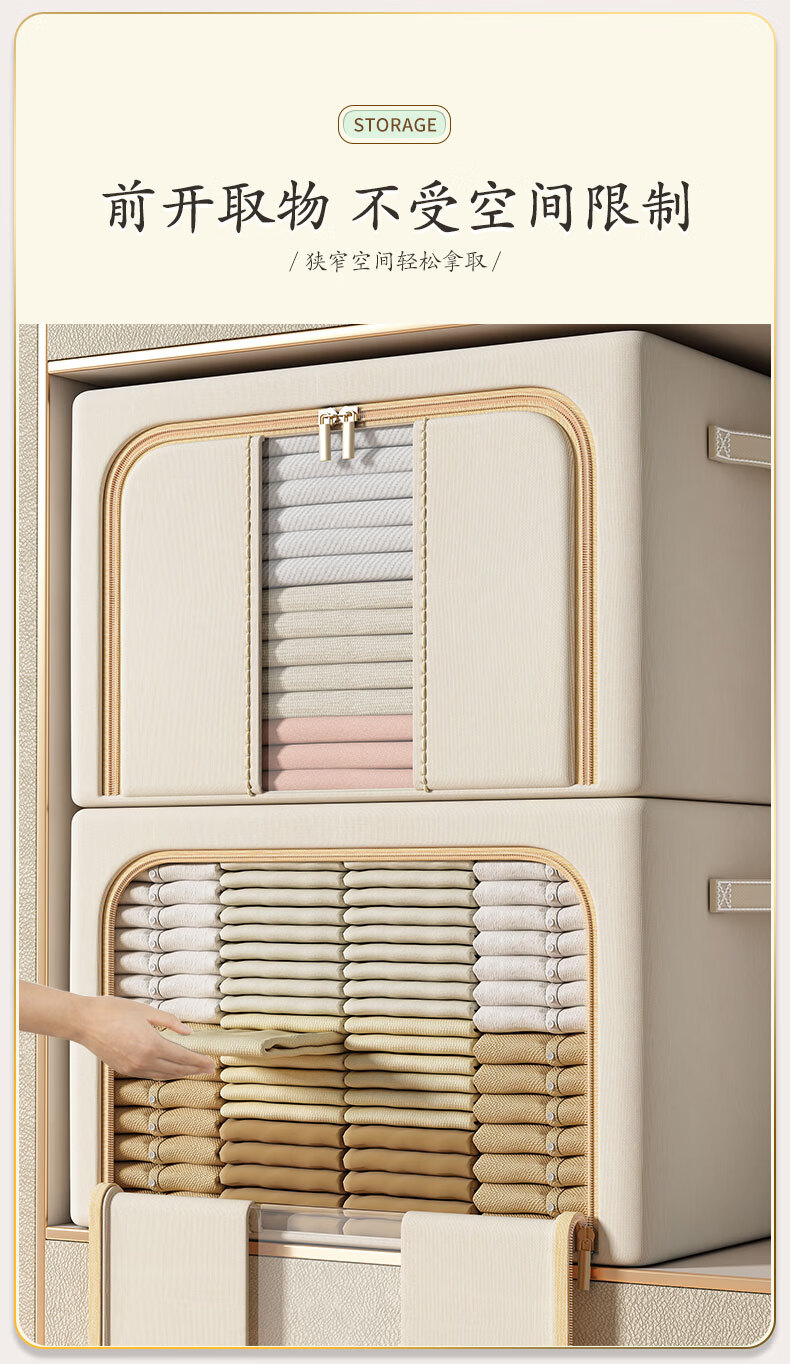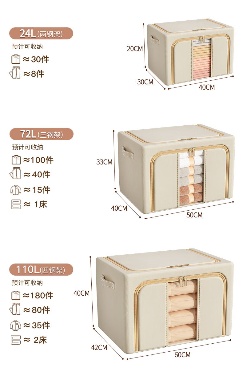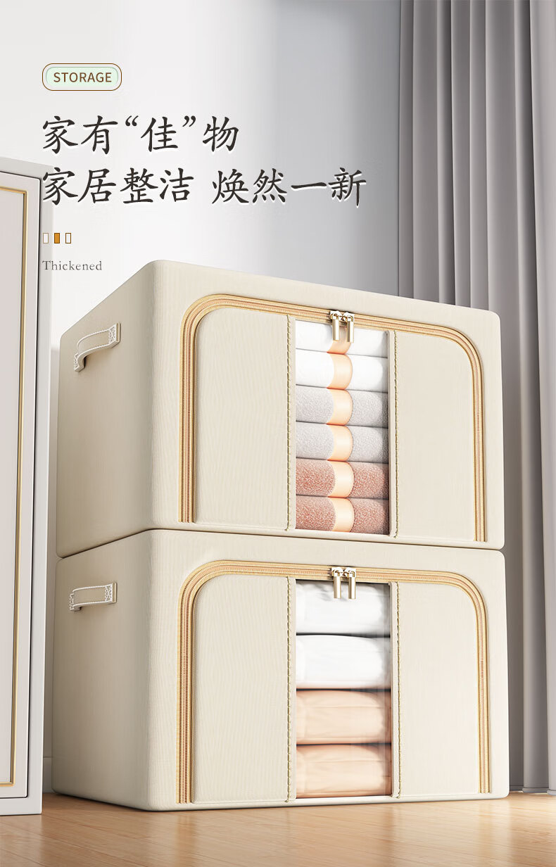 He Jiagong 3-pack clothes and quilt storage bag zipper type moving packing clothing organization bag large capacity waterproof and moisture-proof khaki 2-pack double window double door丨thick and bold 24L (length 40*width 30*height 20cm) worsted texture/bold