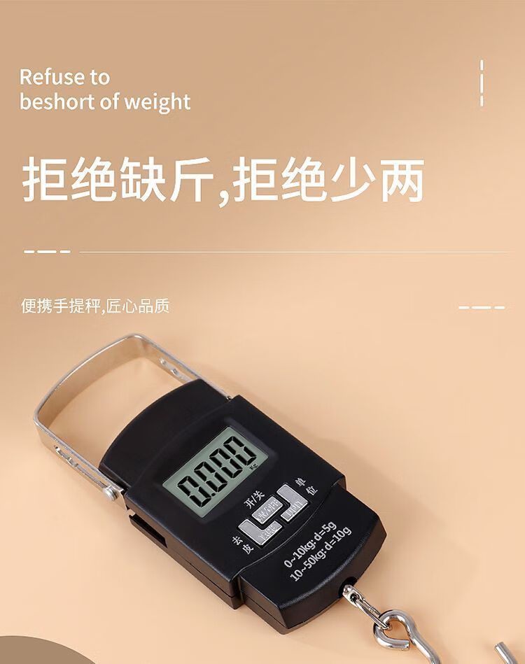 High-precision portable electronic scale small portable household mini fish scale hand luggage express spring hook small scale exclusive dual-core sensor 2nd generation weighing 102J-