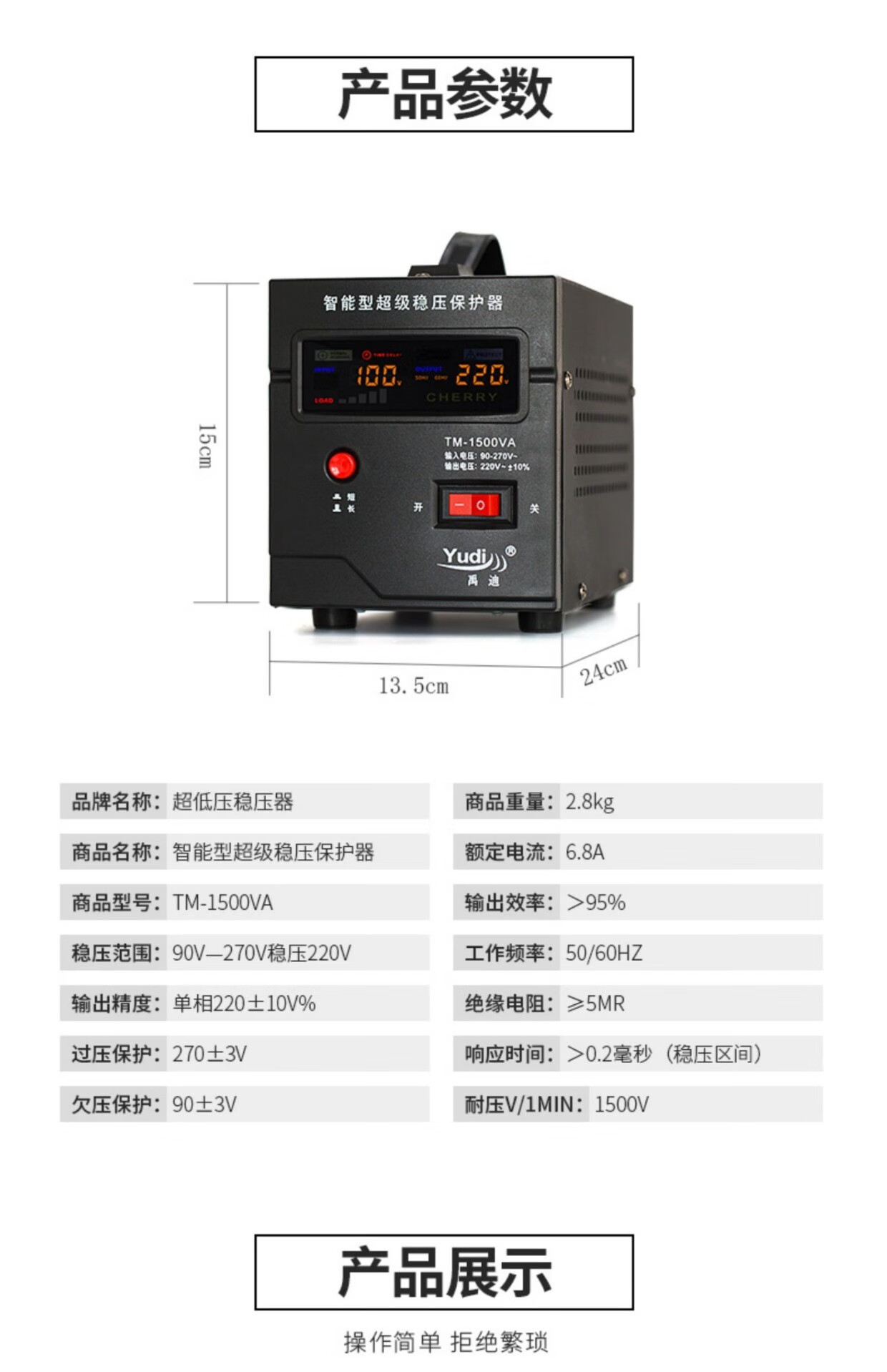 Zhengxi Yudi Computer Voltage Stabilizer Small Power 1500w Refrigerator TV Special Household Fully Automatic 220v Voltage Stabilizer Single Computer / Refrigerator TV Special