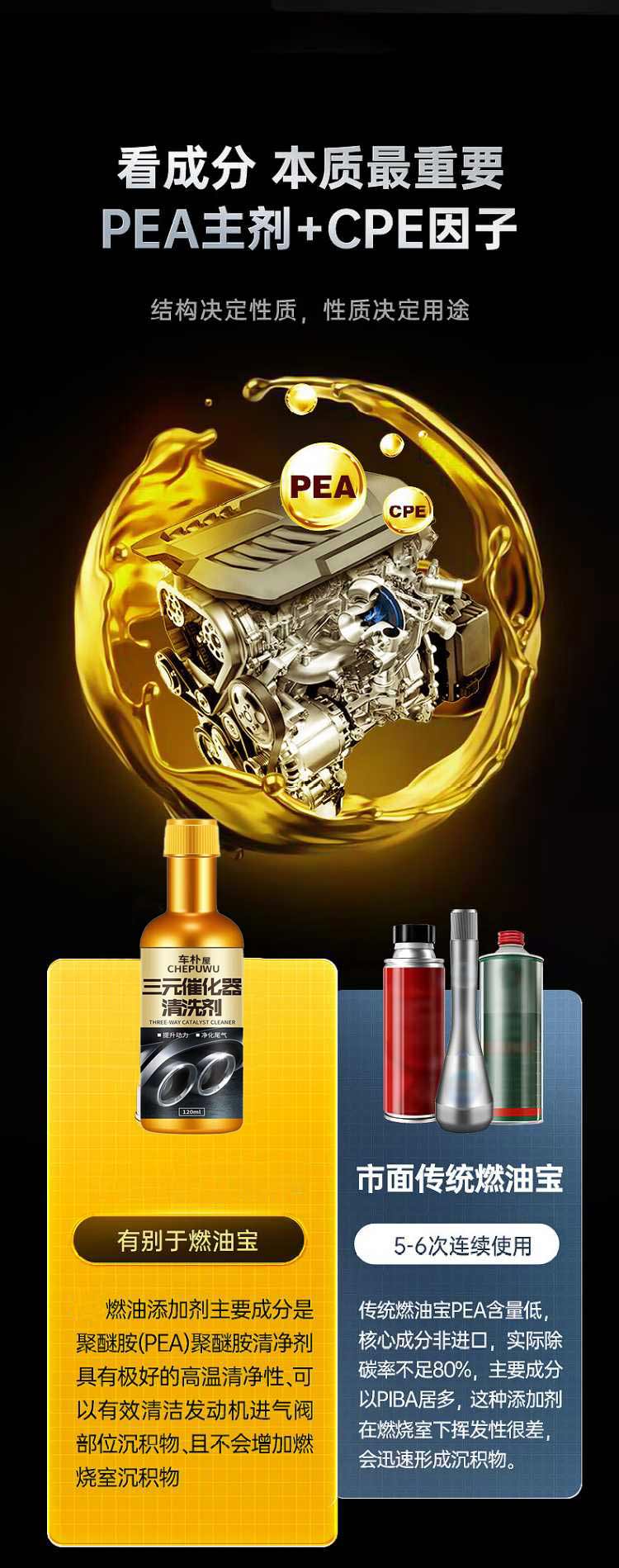 Chepuwu three-way catalytic cleaner, deep cleaning fuel treasure, carbon deposit removal, three-way catalytic converter additive, three-way catalytic cleaner, buy 5, get 3 free, 8 bottles
