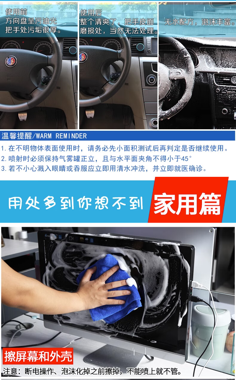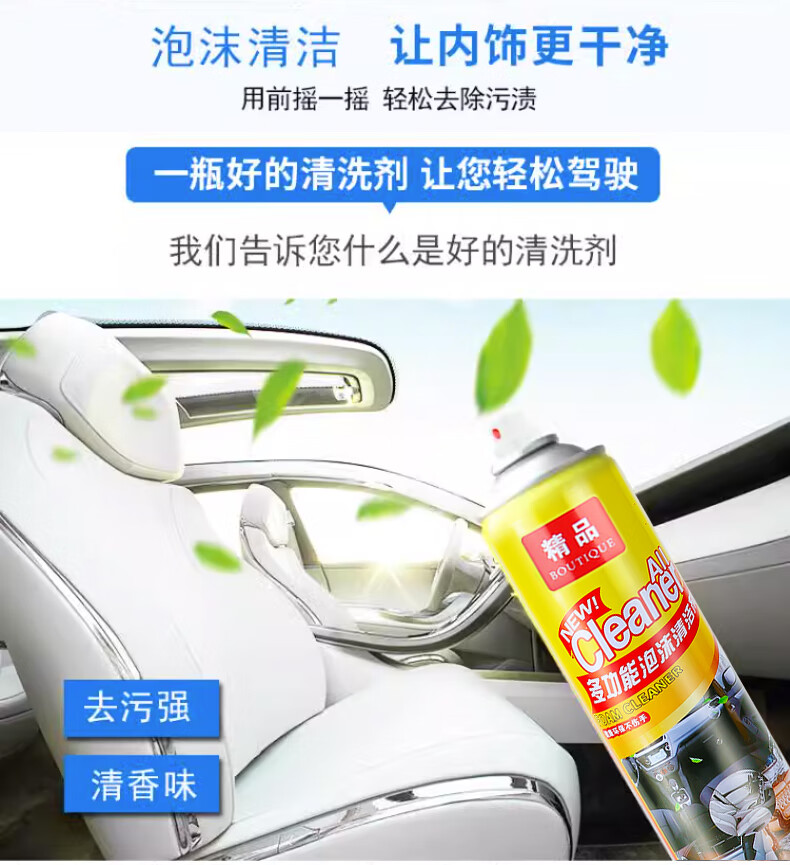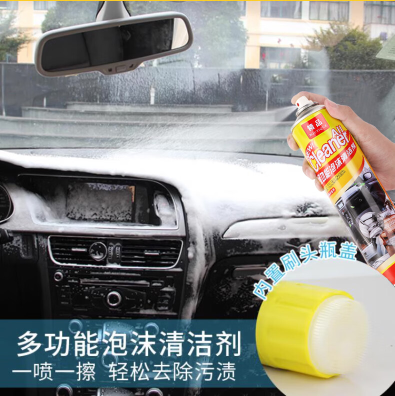 Car Interior Cleaner Multi-functional Foam Cleaner Car Wash Liquid Decontamination Ceiling Car No-Wash Cleaning Set 1 Bottle 650ml Foam Cleaner