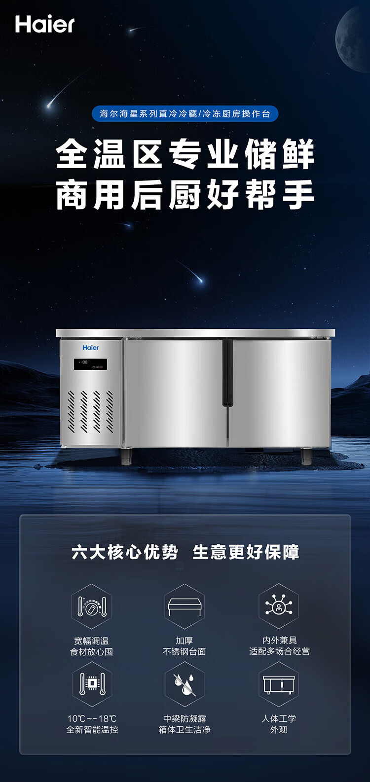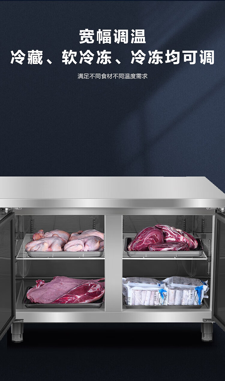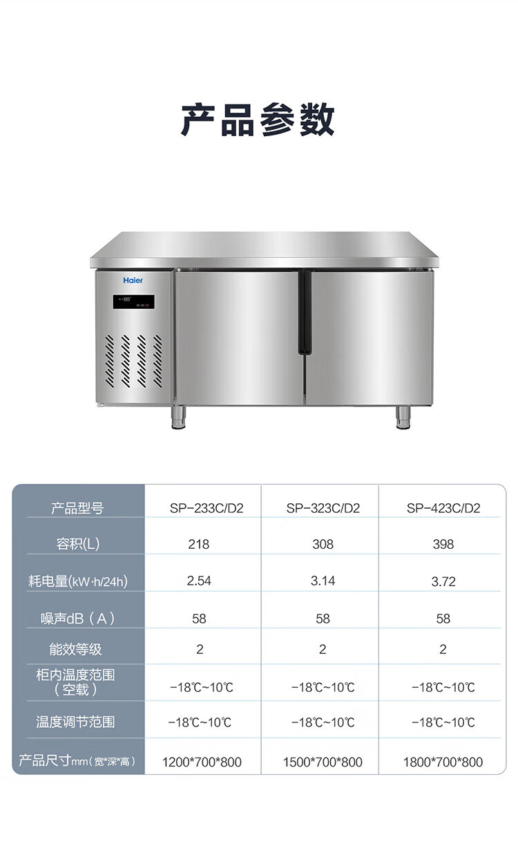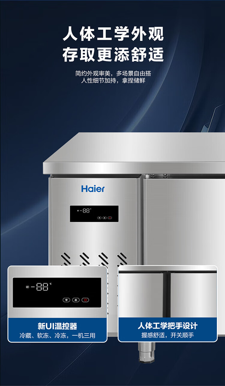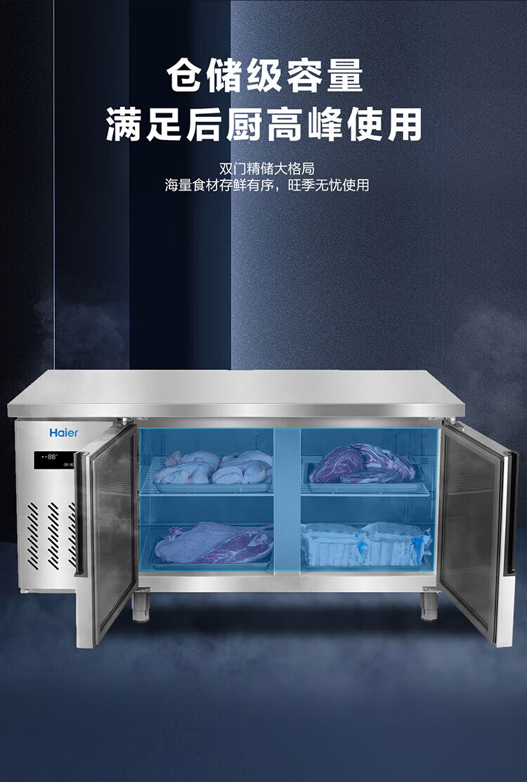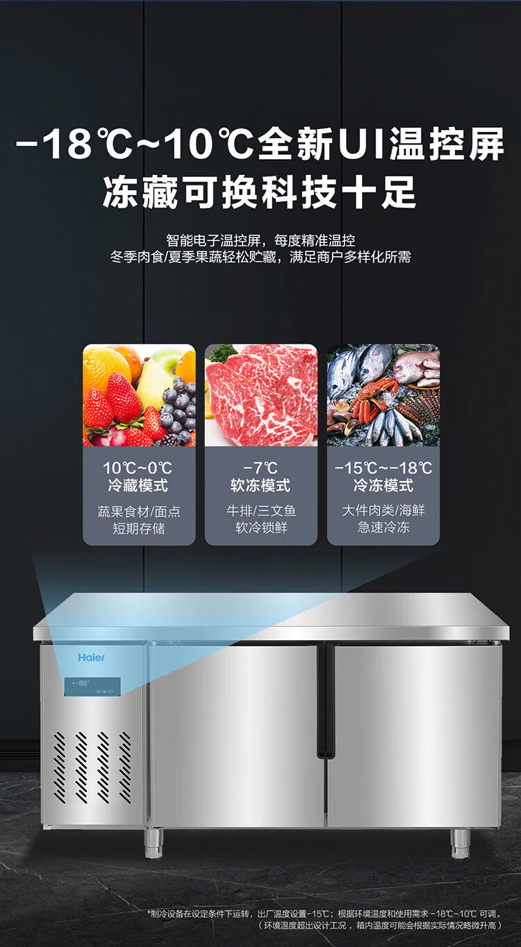 Haier commercial freezer stainless steel operating table fresh-keeping work platform kitchen refrigerator hotel restaurant canteen milk tea shop refrigeration frozen copper tube quick-frozen beef and mutton vegetables 1.2 meters 233 liters | Refrigeration/freezing conversion | Stainless steel