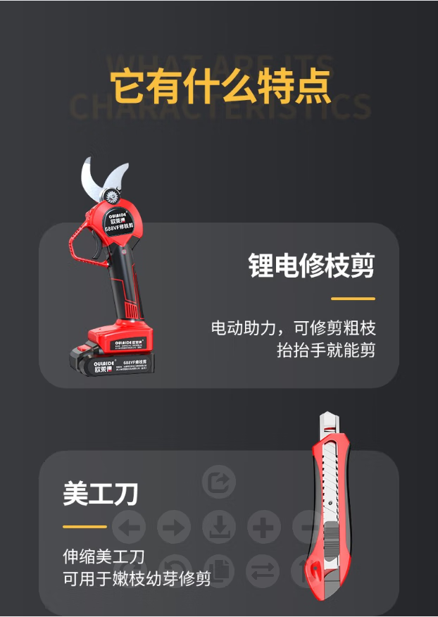 OLED 688 Brushless Electric Scissors Tungsten Steel Blade Dual Battery Long Life Lithium Battery New Charging Pruning Branch Brushless Upgraded Dual Battery + Tool Set