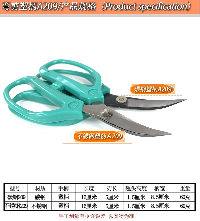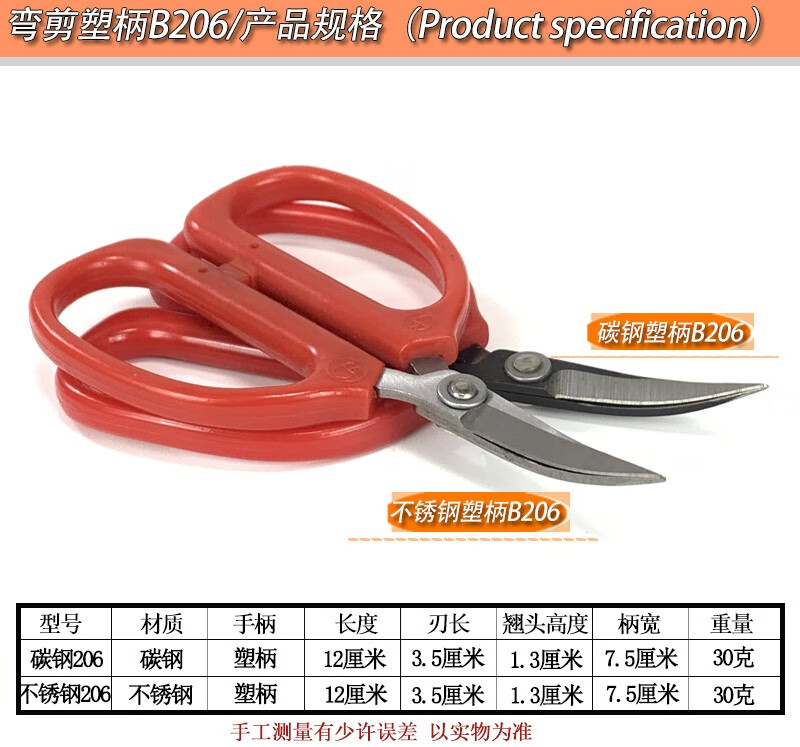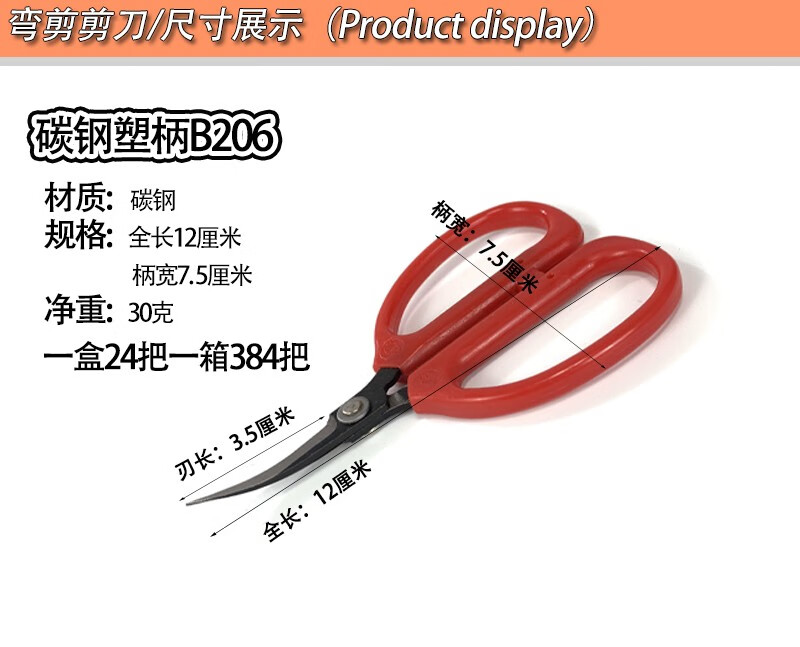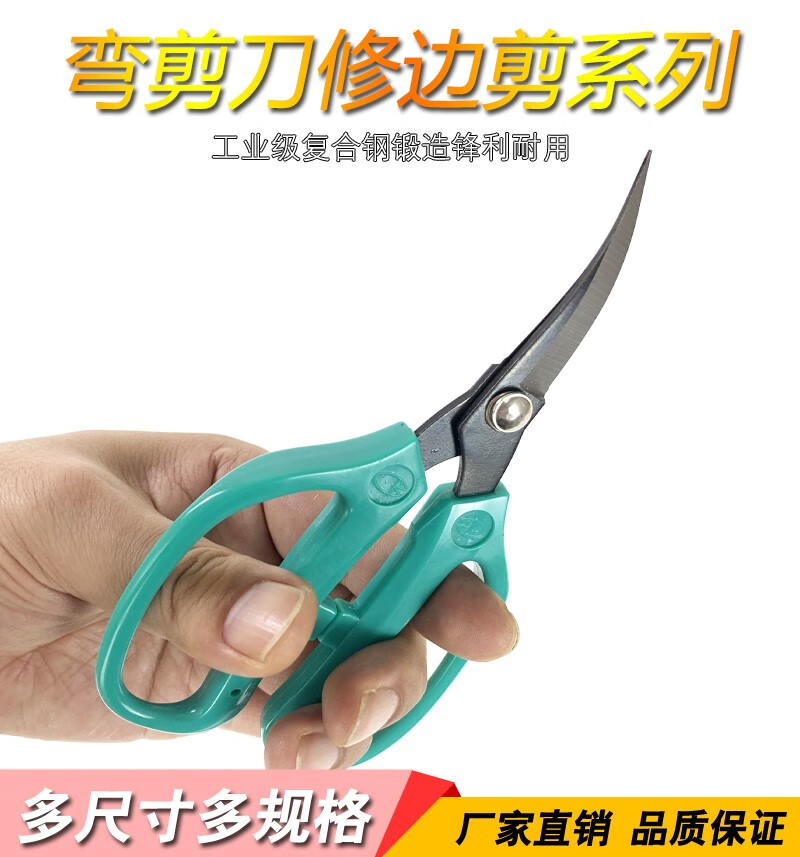Trimming scissors, handmade elbow scissors, tilted scissors, rubber trimming, leather bag soles, factory curved embroidery scissors, carbon steel curved scissors A206 (12 cm long)