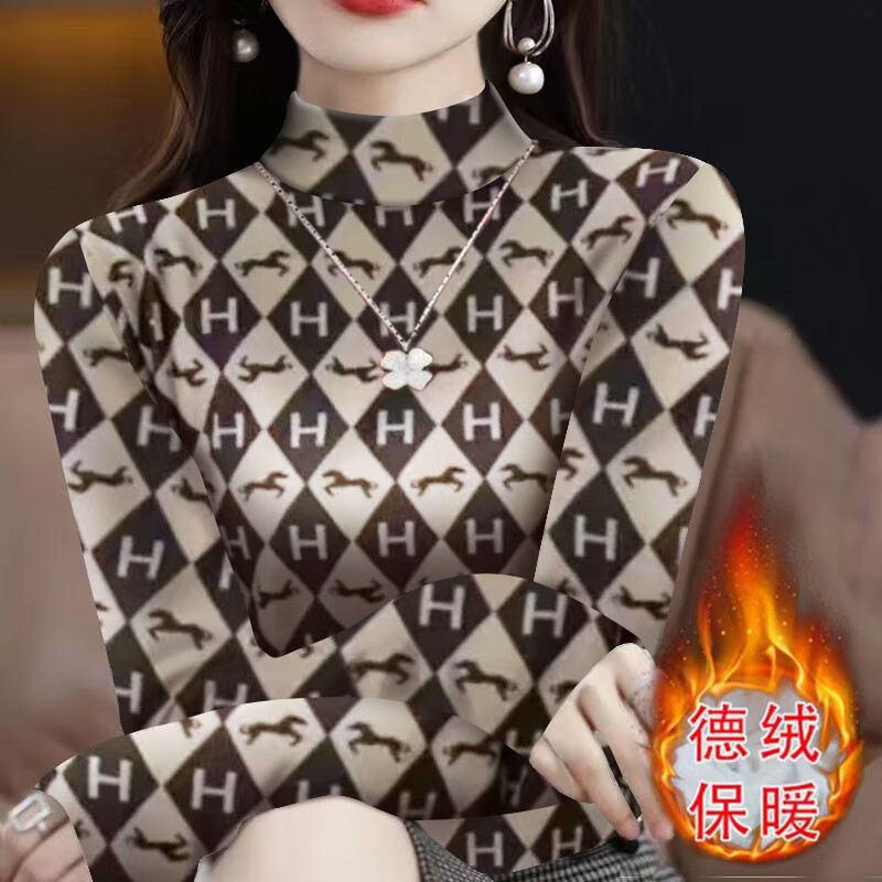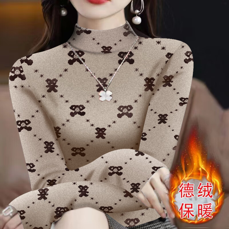 MiiOW half-turtle collar German velvet bottoming shirt for women in autumn and winter new fashion printed long-sleeved T-shirt large size slim warm top for women B11 Bear M recommended 80-100 pounds