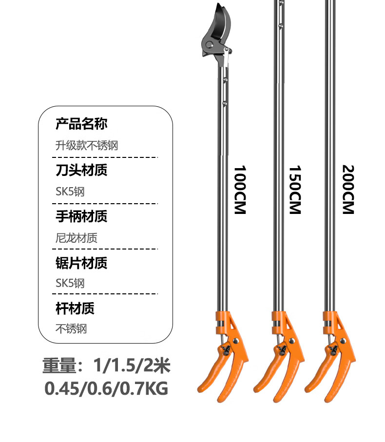 Jingxi Selection high-branch shears high-altitude pruning shears extension pole stainless steel pruning high-branch fruit tree pruning branch shears 200 cm high-altitude pruning shears come with protective suit