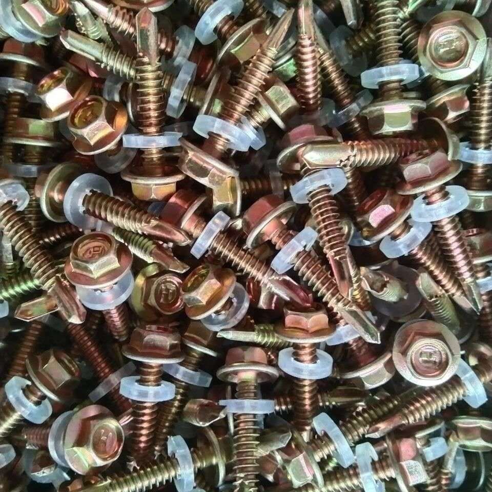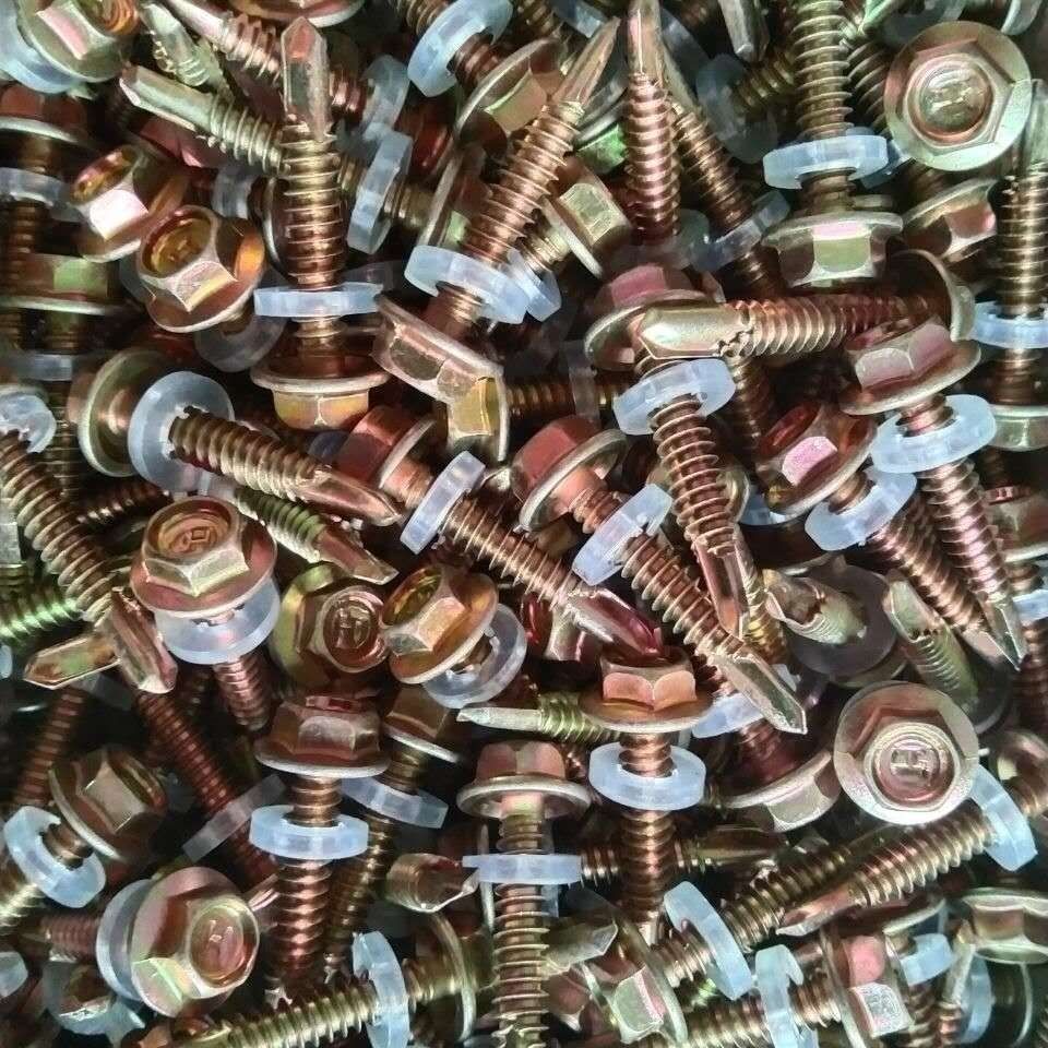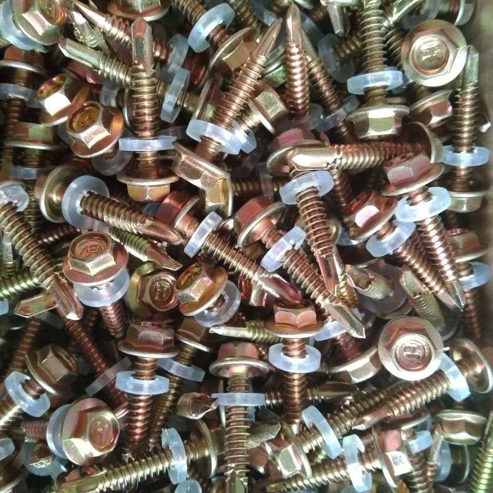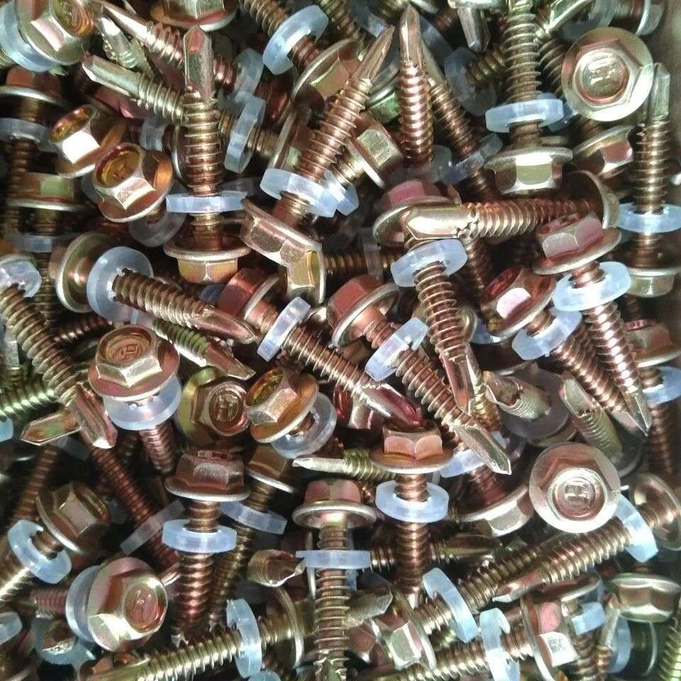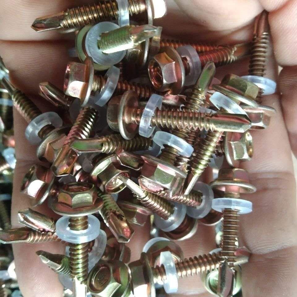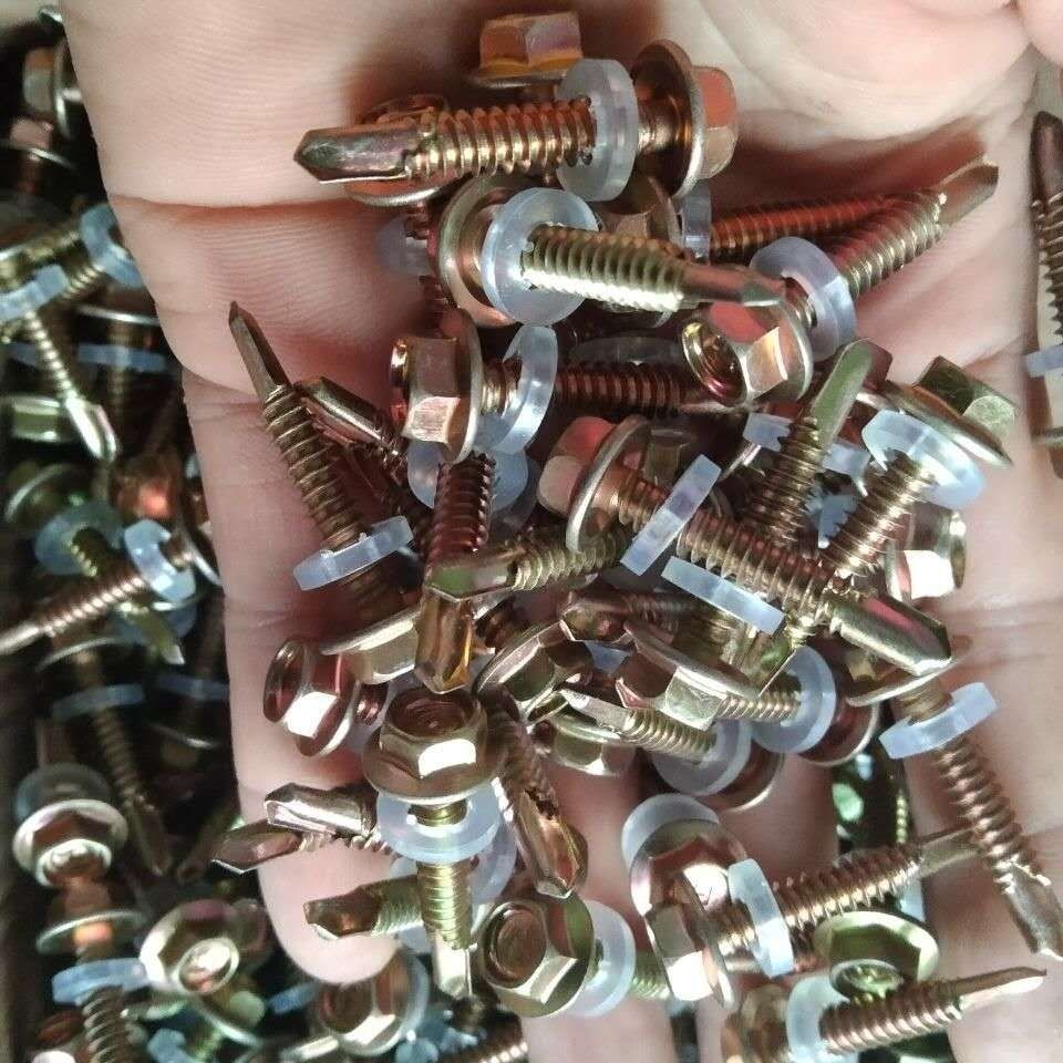 Meikejie external hexagonal drill tail wire dovetail self-drilling screw self-tapping self-rotating color zinc tile nail rosette screw tail nail length 30 mm (500 pieces) free sleeve