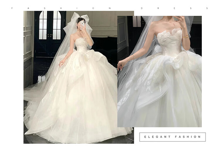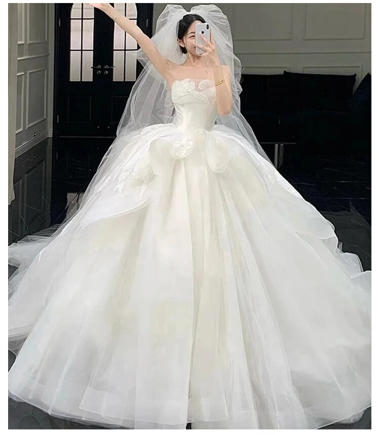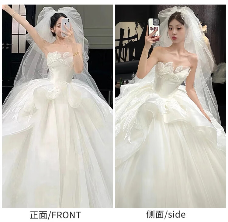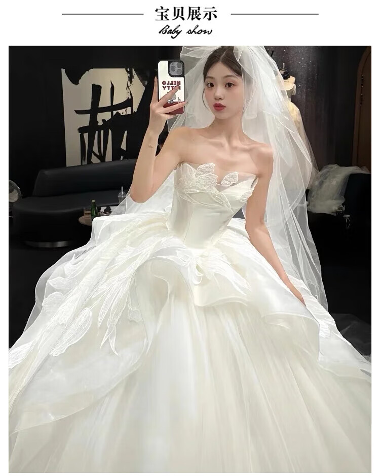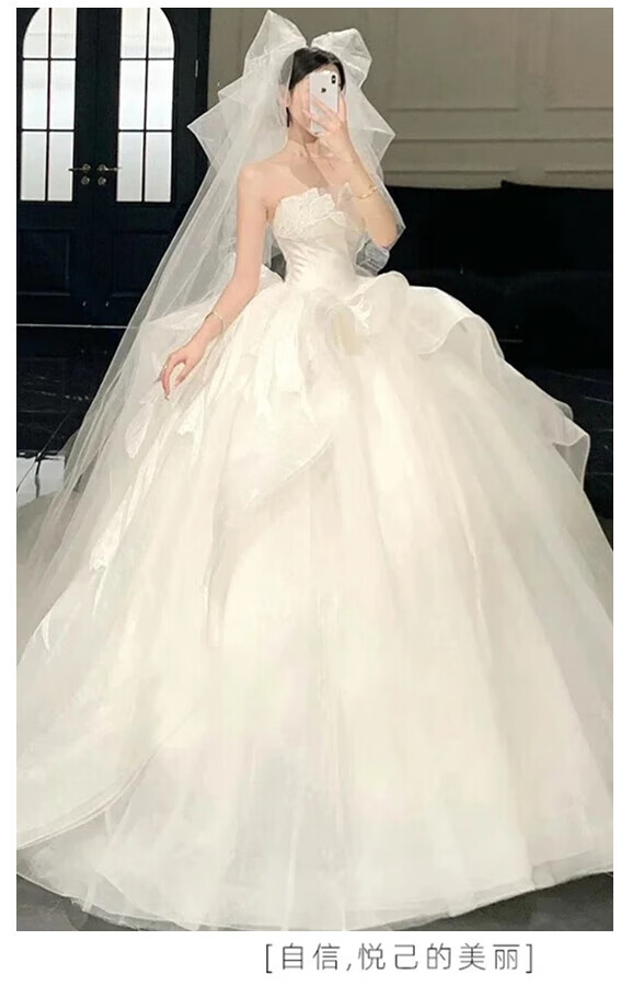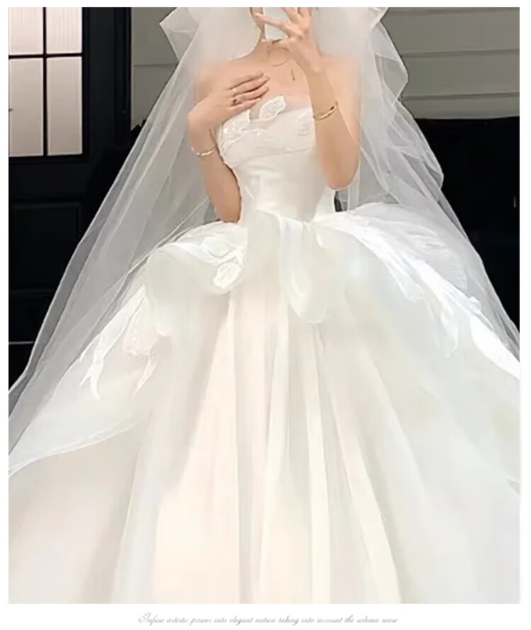 Wei Lianmenglan high-end tube top bridal wedding dress 2025 new French texture small person light luxury trailing main gauze summer white floor-length + matching zipper support L Weight about 110 pounds
