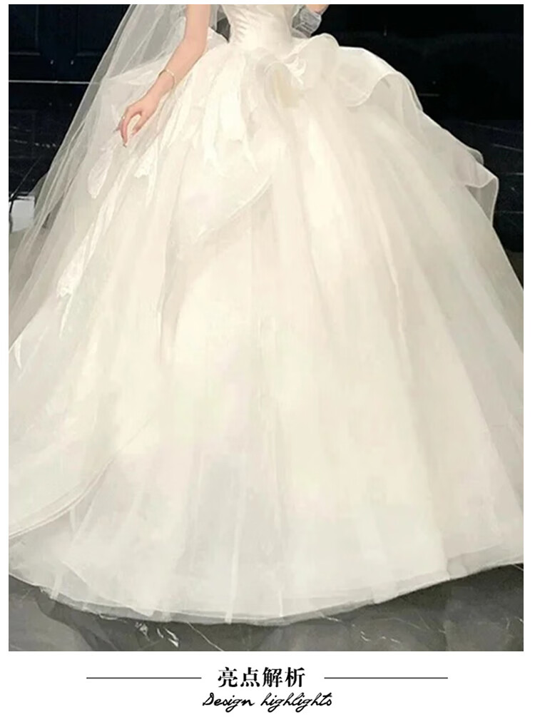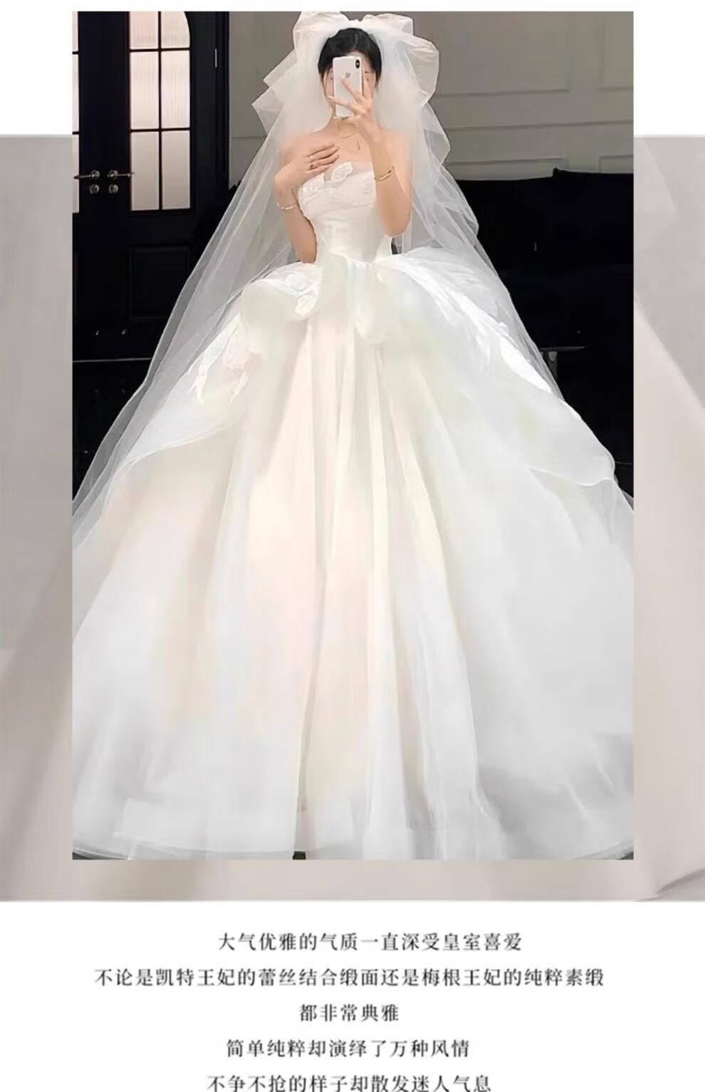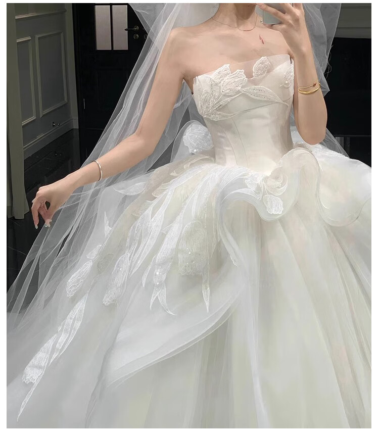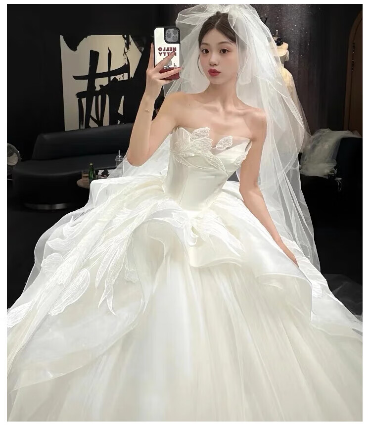 Wei Lianmenglan high-end tube top bridal wedding dress 2025 new French texture small person light luxury trailing main gauze summer white floor-length + matching zipper support L Weight about 110 pounds