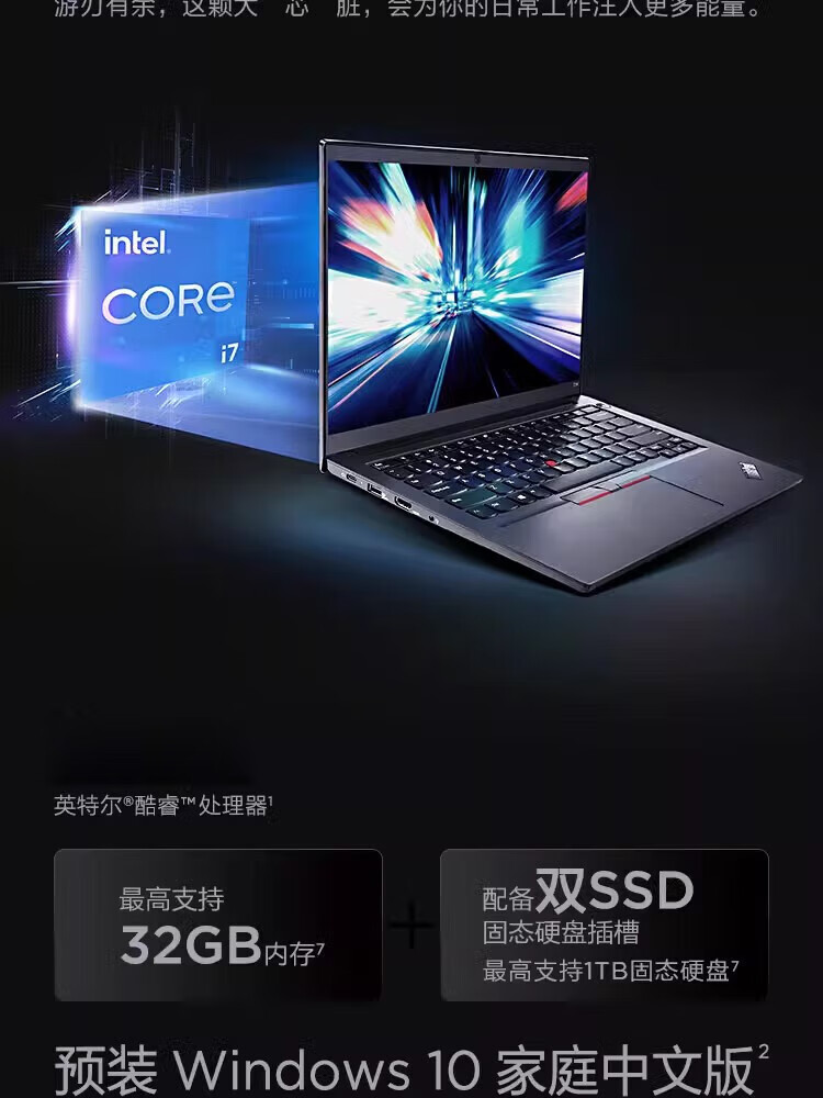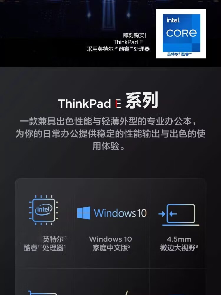Lenovo Exhibition Machine Thinkpad E Series Business Office Thin and Light Laptop Computer Student Online Class Laptop Core I5 Processor China Mainland 32G-1T High Speed Solid State