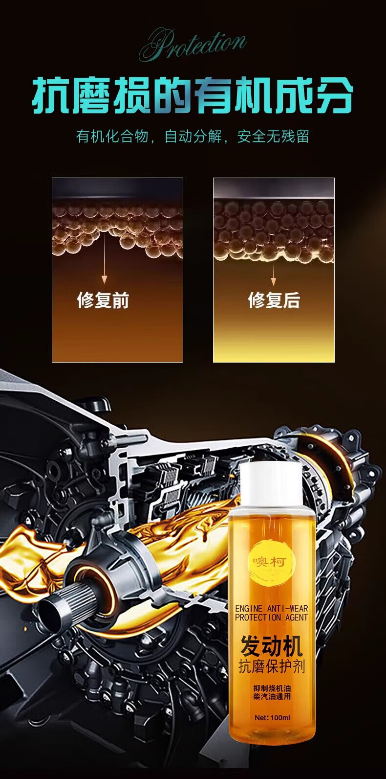 Car engine anti-wear protective agent, noise reduction and jitter, powerful oil-burning anti-wear protective agent imported from Germany, 3 bottles, 2 shots and 3 shots