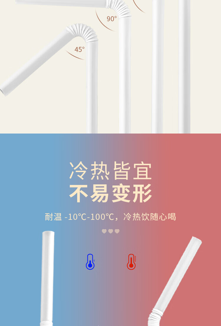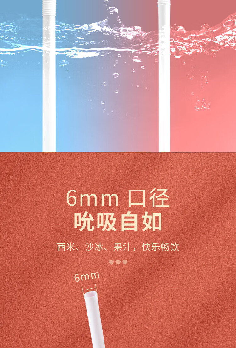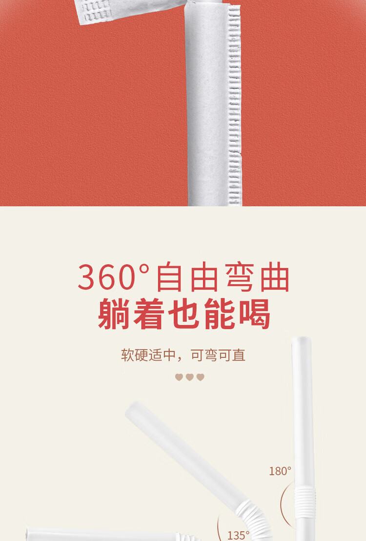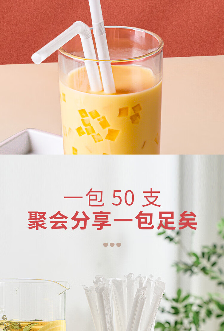 Fresh Life disposable straws, individually packaged, flexible, food contact grade, thin plastic straws for pregnant women and children, 50 pieces * 2 pack, length 197mm, diameter 6mm