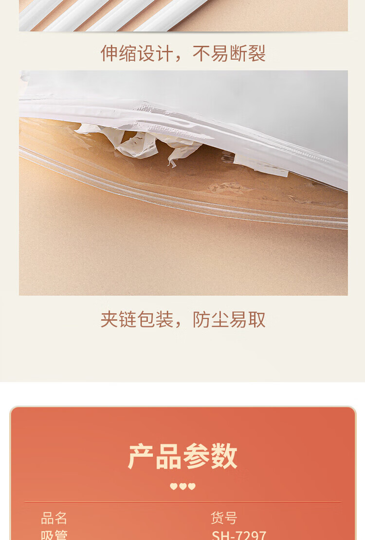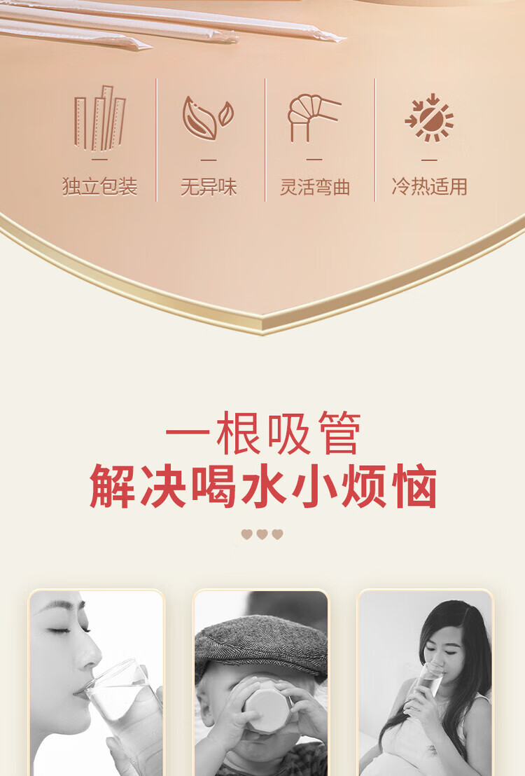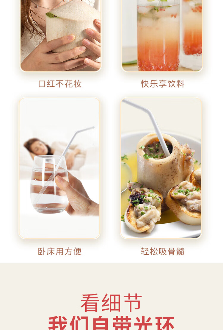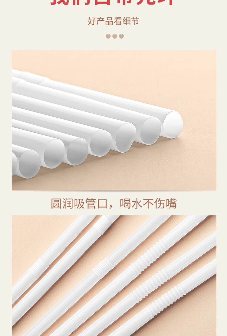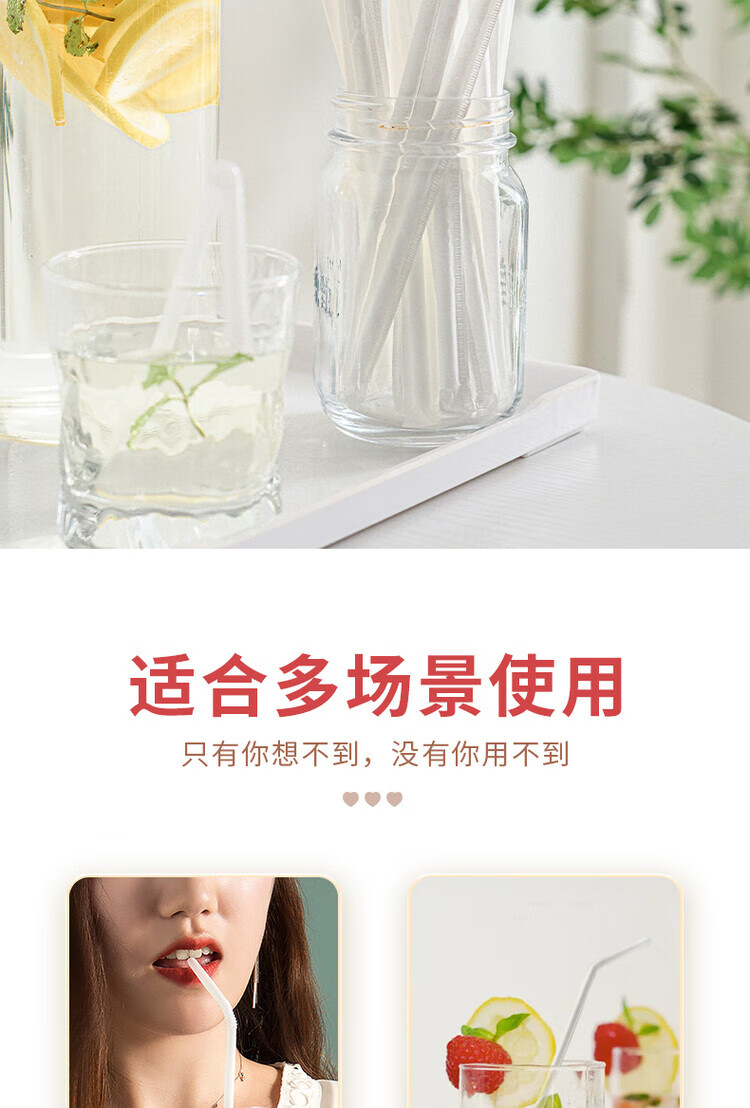Fresh Life disposable straws, individually packaged, flexible, food contact grade, thin plastic straws for pregnant women and children, 50 pieces * 2 pack, length 197mm, diameter 6mm