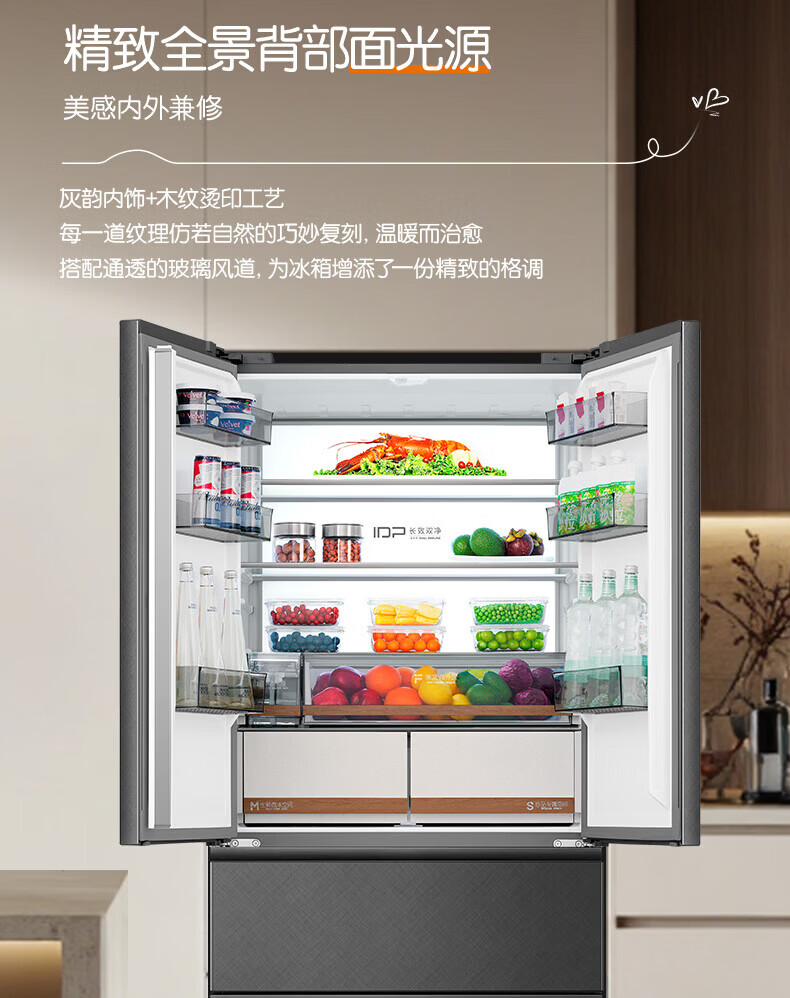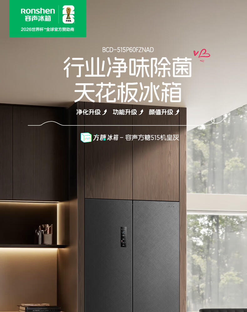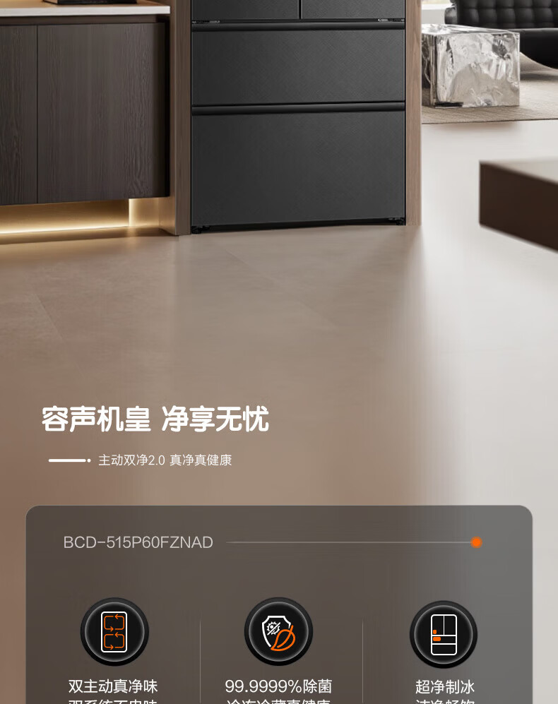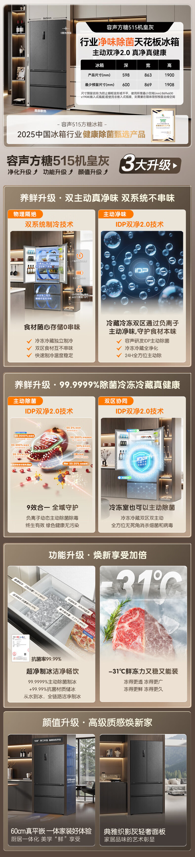 Rongsheng Cube 515 machine king double system French multi-door four-door ultra-thin zero-embedded refrigerator first-class energy efficiency automatic ice making BCD-515P60FZNAD gray national subsidy World Cup 60cm true zero-embedded | bottom cooling ultra-clean automatic ice making