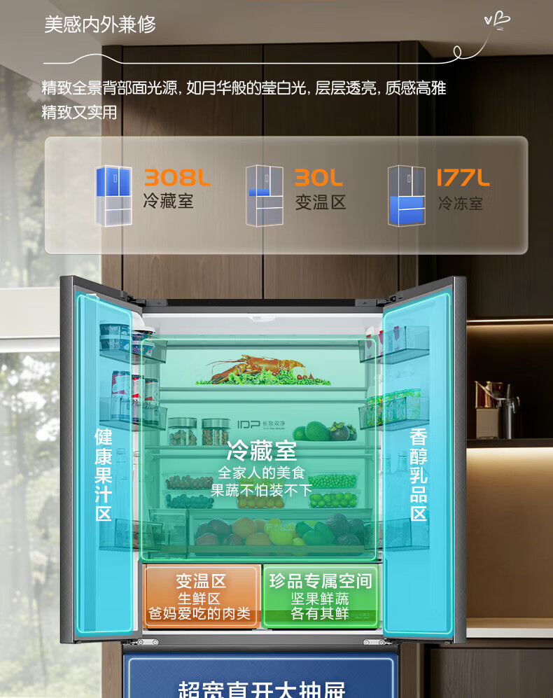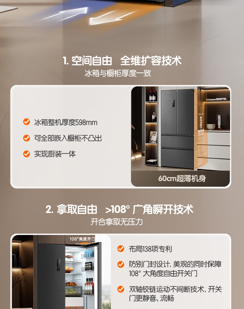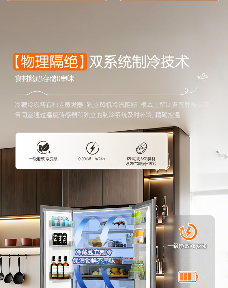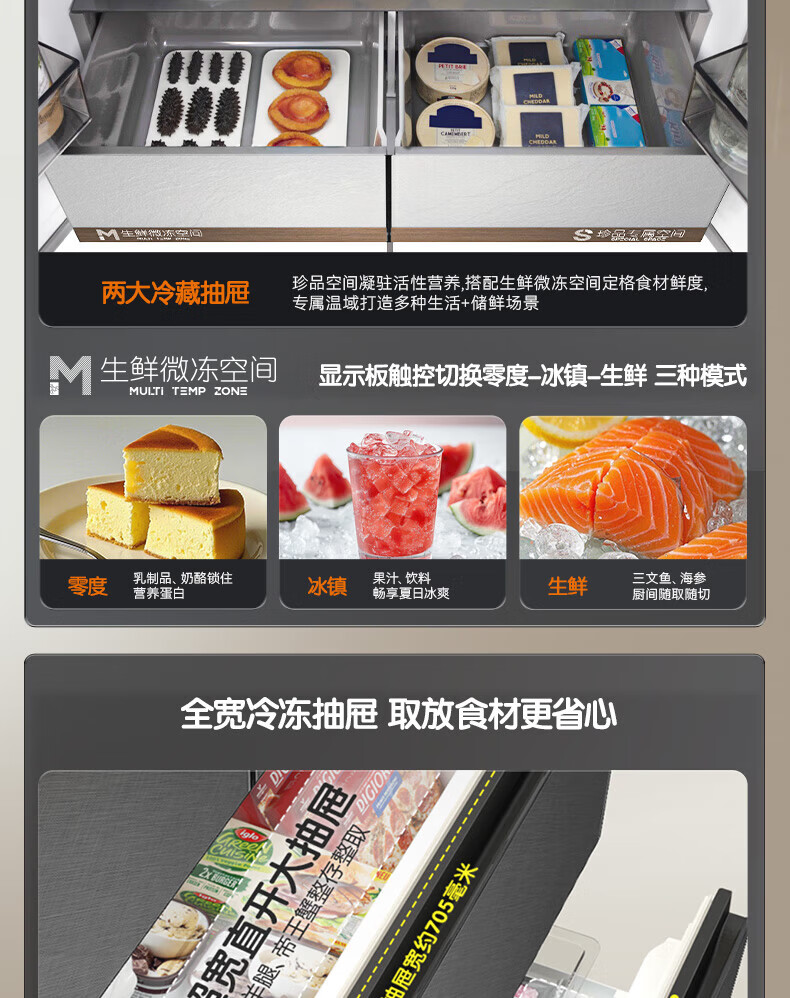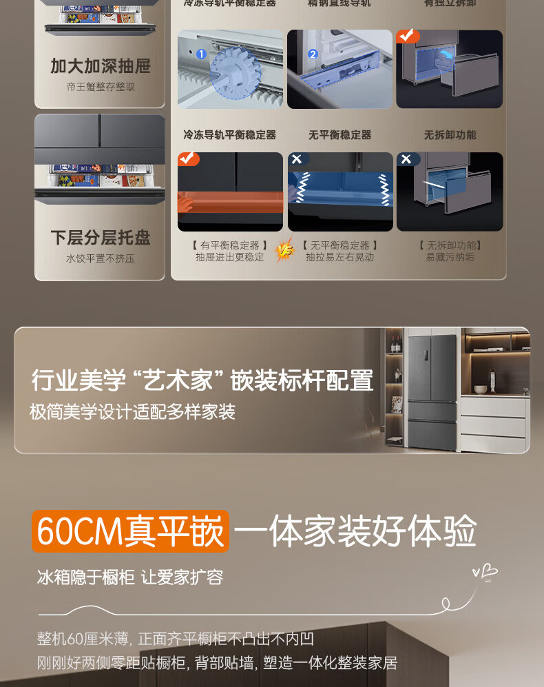 Rongsheng Cube 515 machine king double system French multi-door four-door ultra-thin zero-embedded refrigerator first-class energy efficiency automatic ice making BCD-515P60FZNAD gray national subsidy World Cup 60cm true zero-embedded | bottom cooling ultra-clean automatic ice making