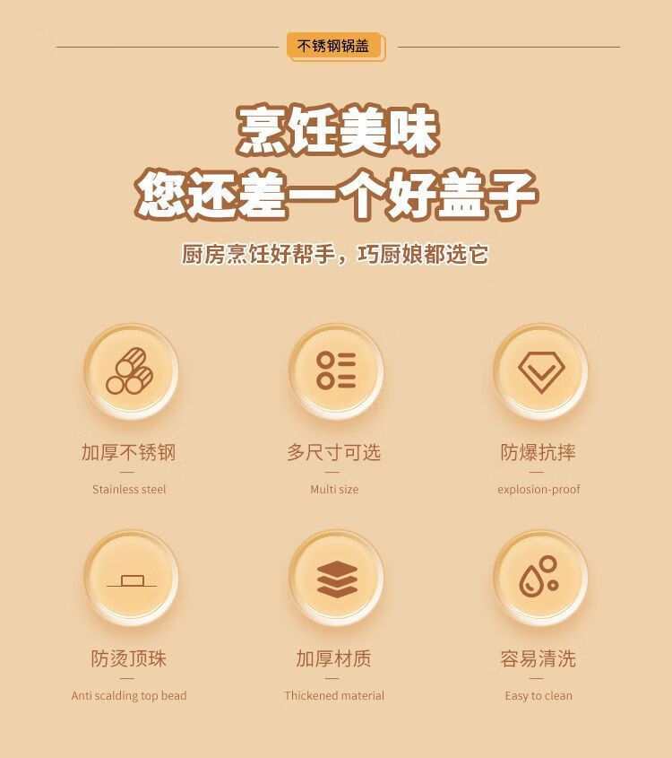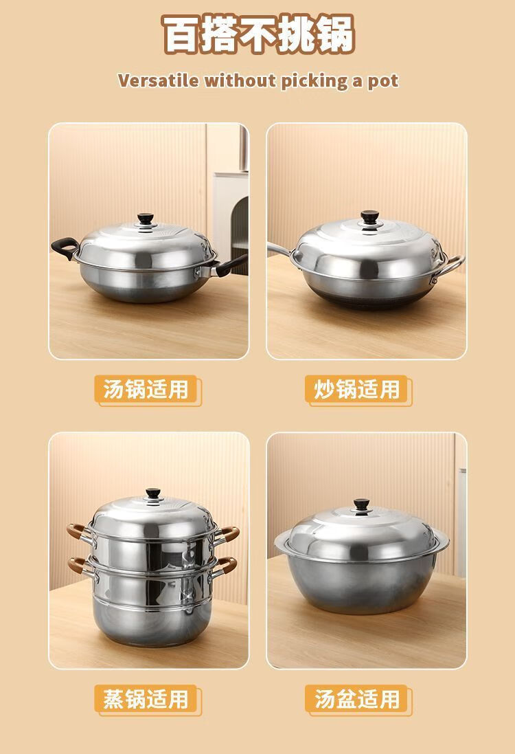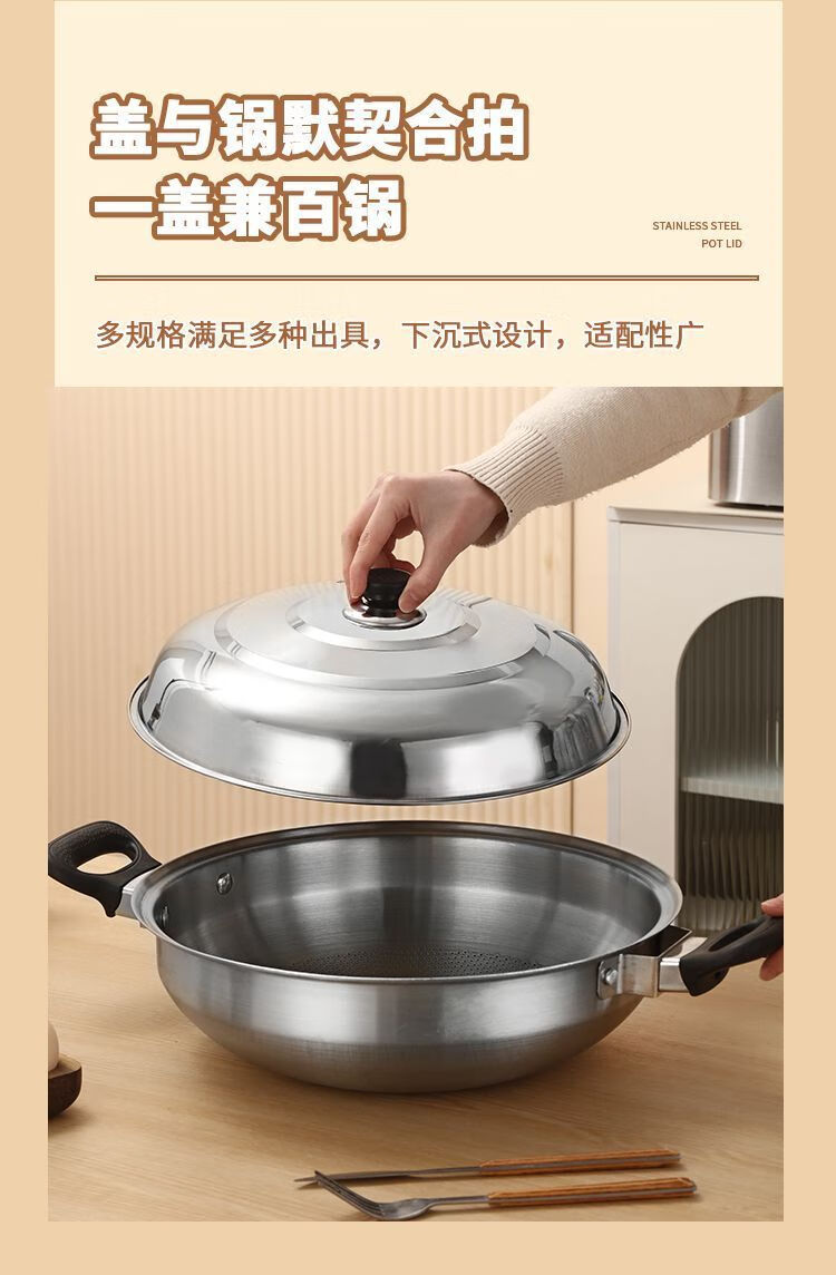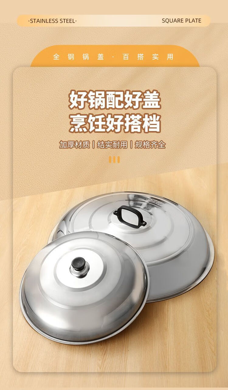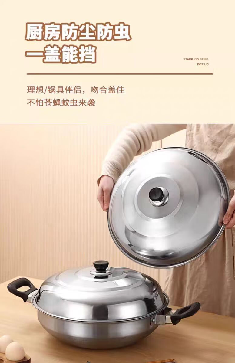 Ye Yu high lid stainless steel household thickened iron wok lid rural explosion-proof lid heightened universal old-fashioned stove cover diameter 43cm heightened pot lid - 2 handles included