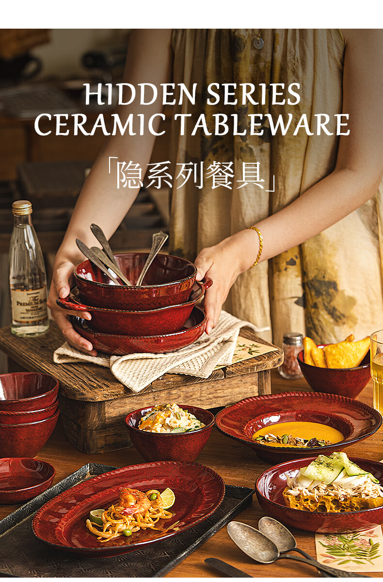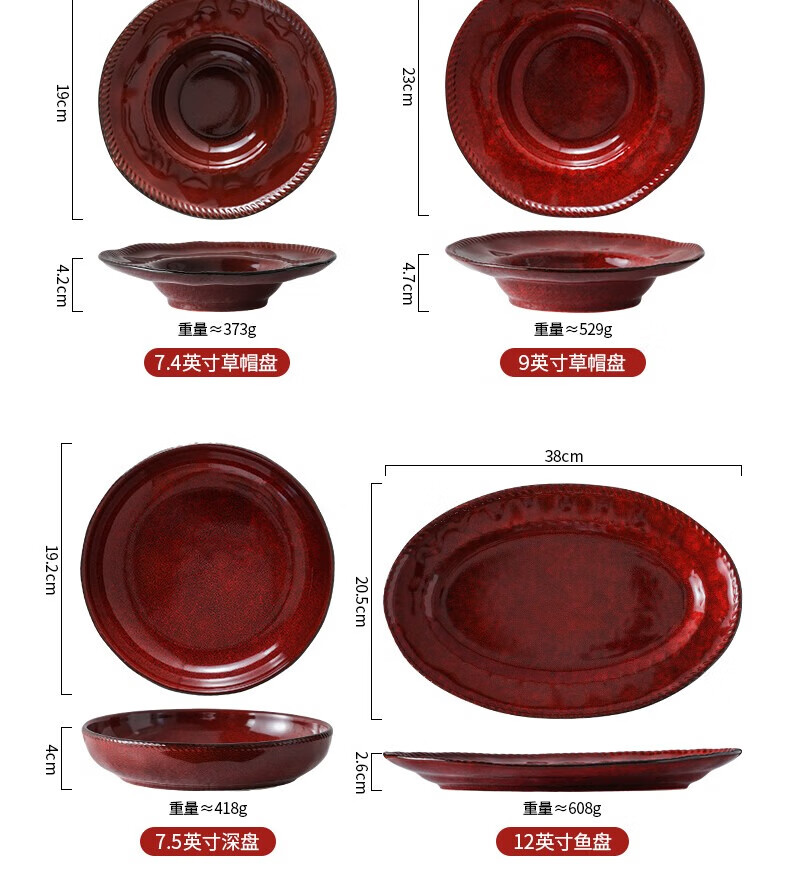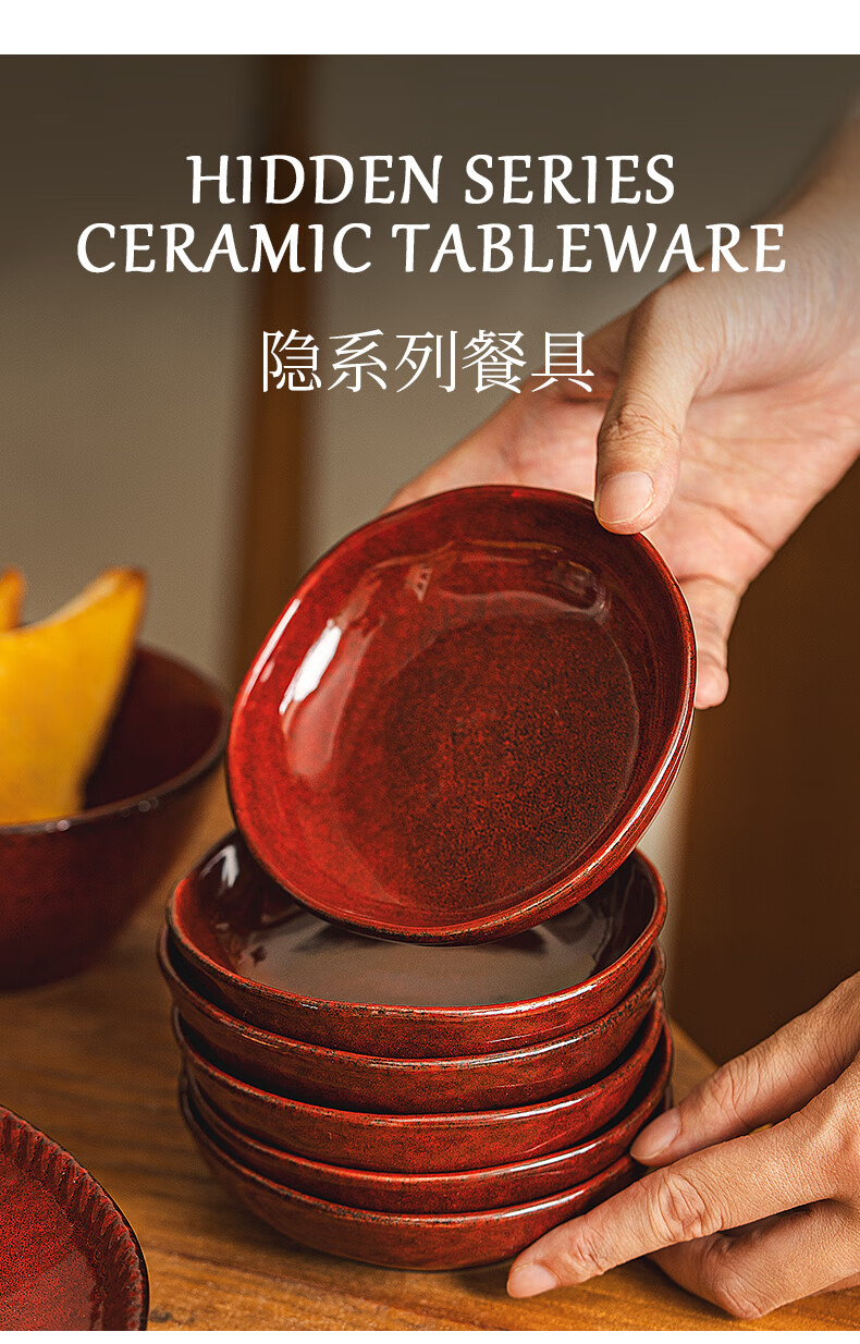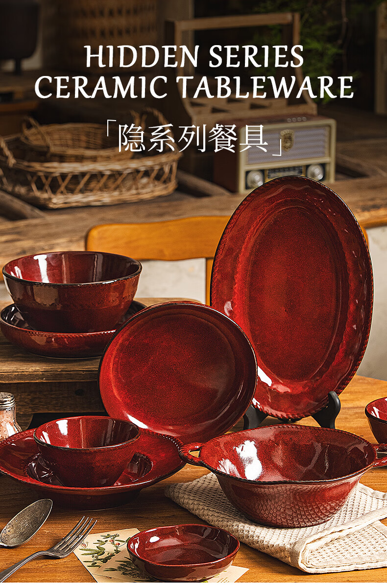 DearDali kiln-turned underglaze color ceramic plates and dishes, household new dishes and tableware sets, high-end light luxury dishes and plates, retro kiln-turned red series - standard for six people