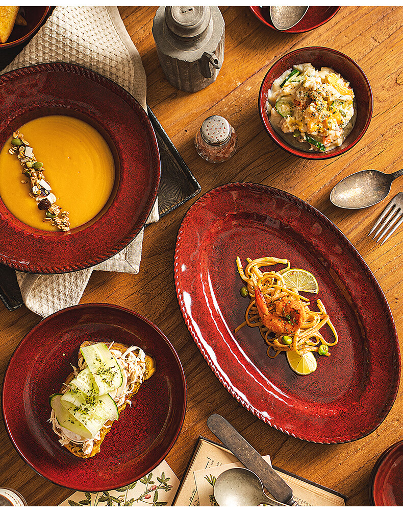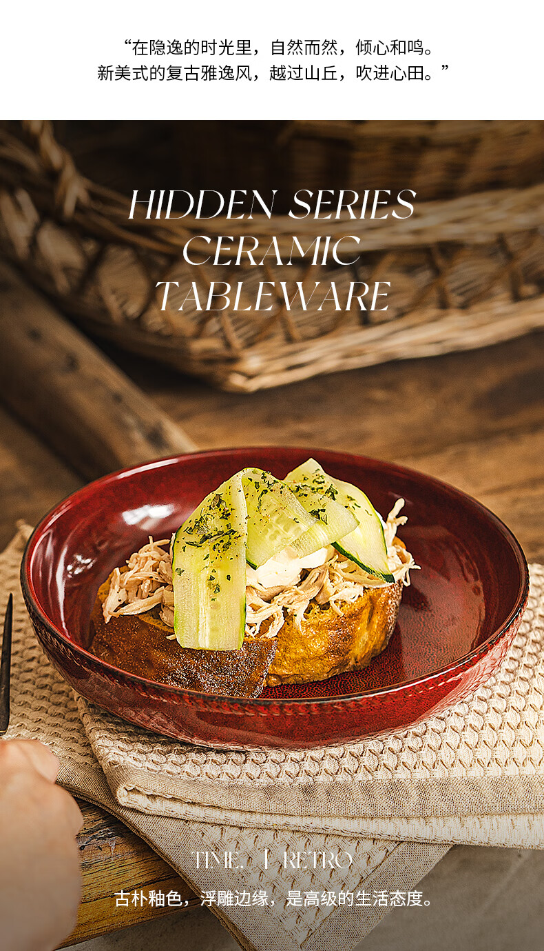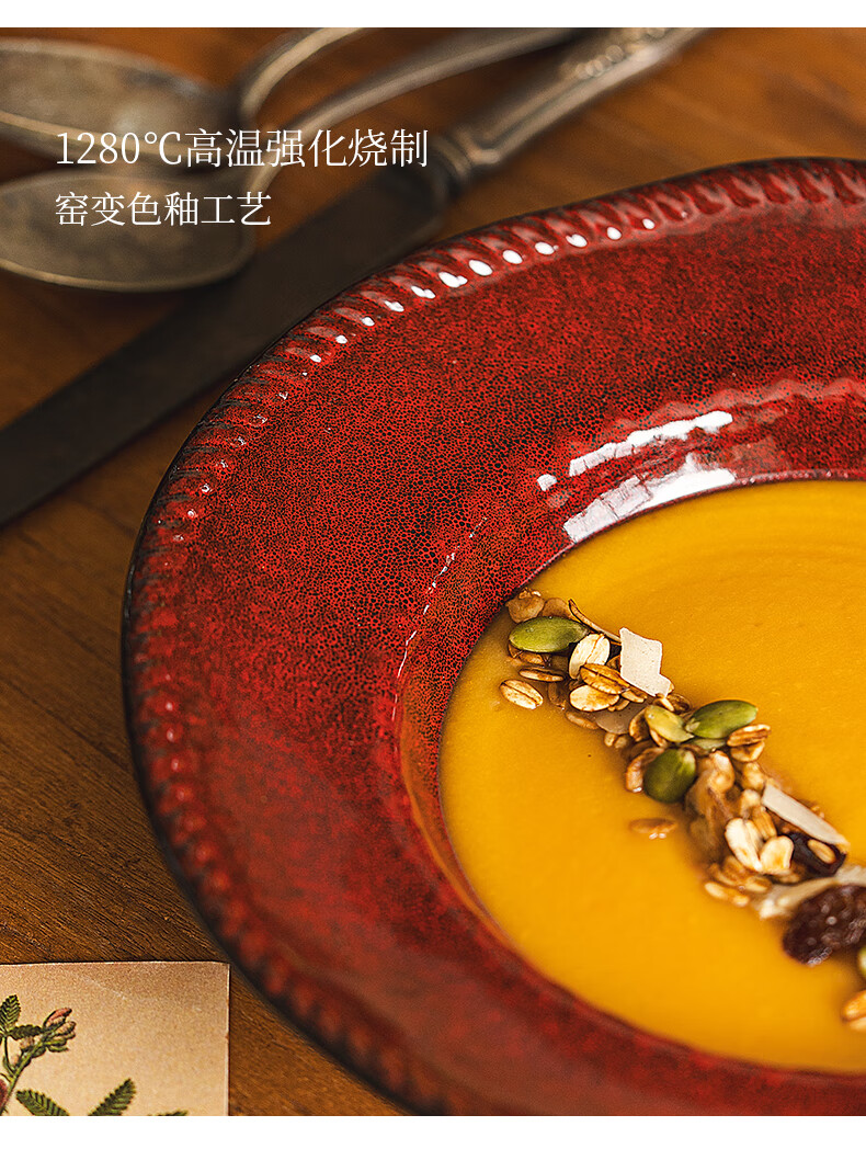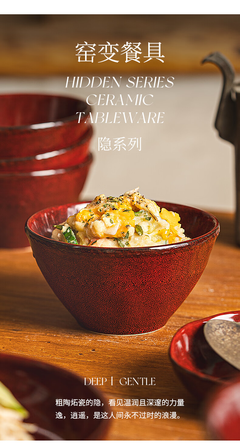 DearDali kiln-turned underglaze color ceramic plates and dishes, household new dishes and tableware sets, high-end light luxury dishes and plates, retro kiln-turned red series - standard for six people