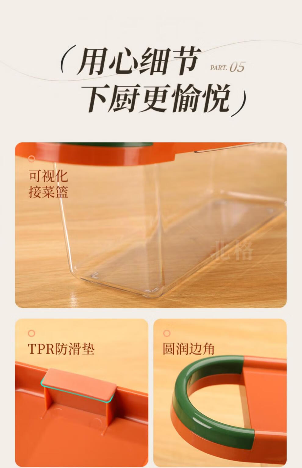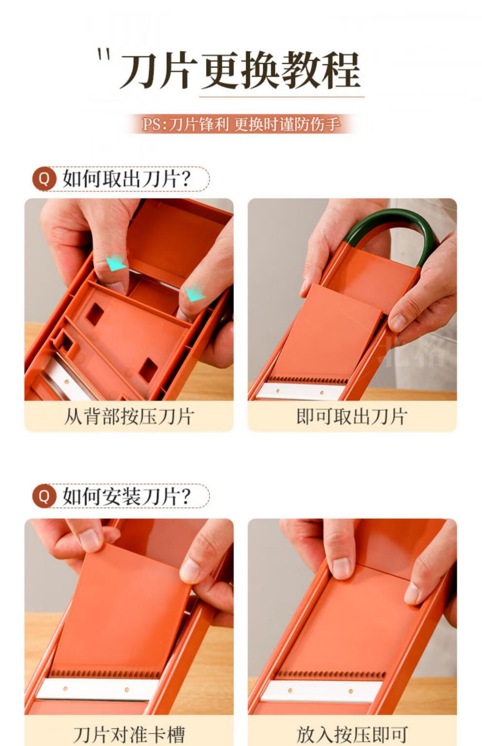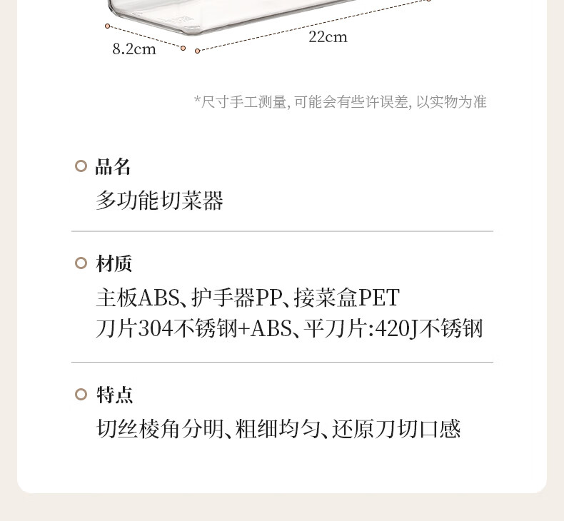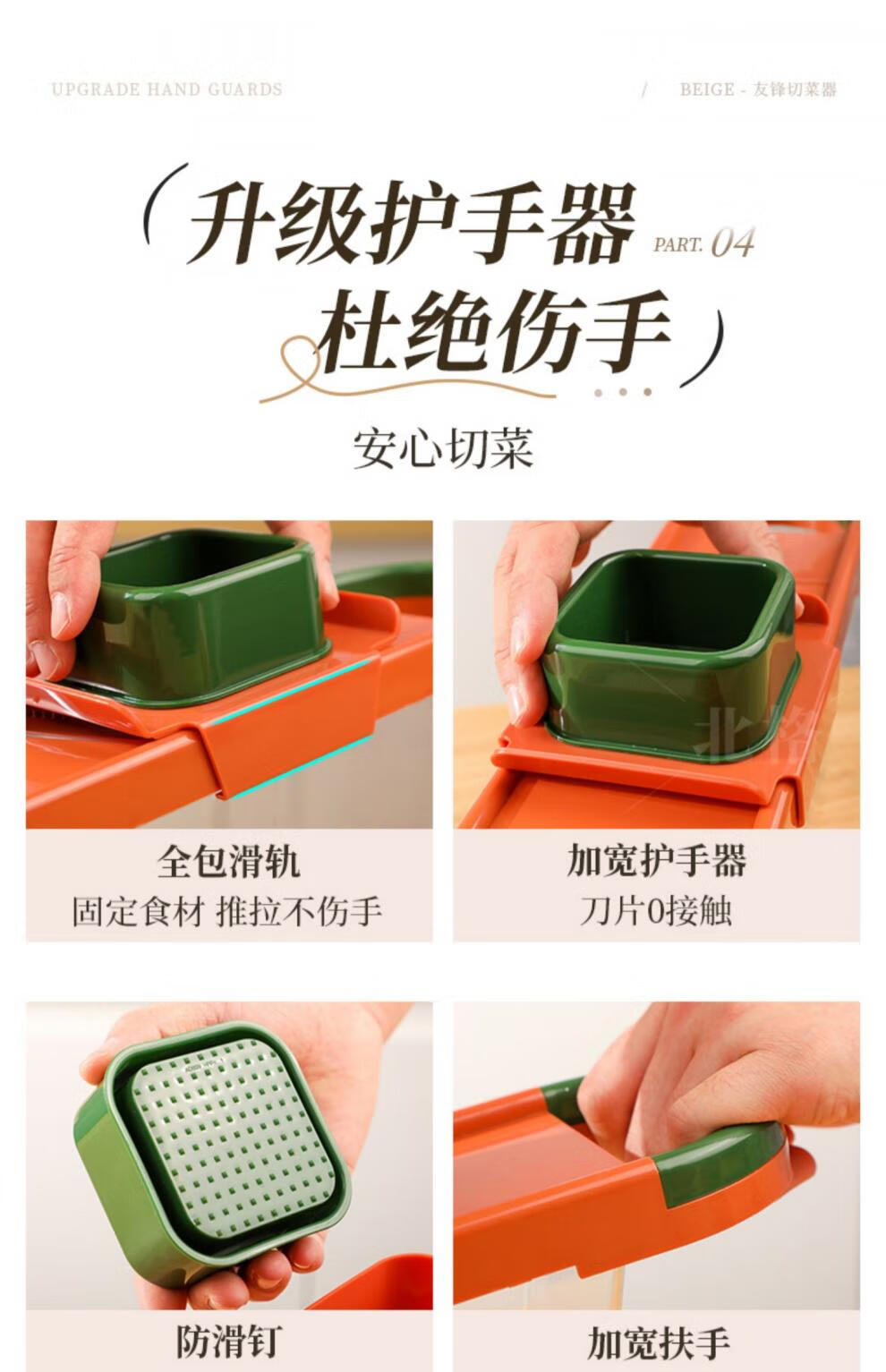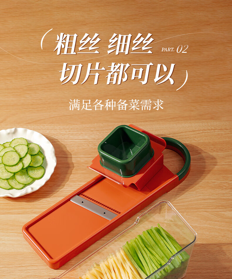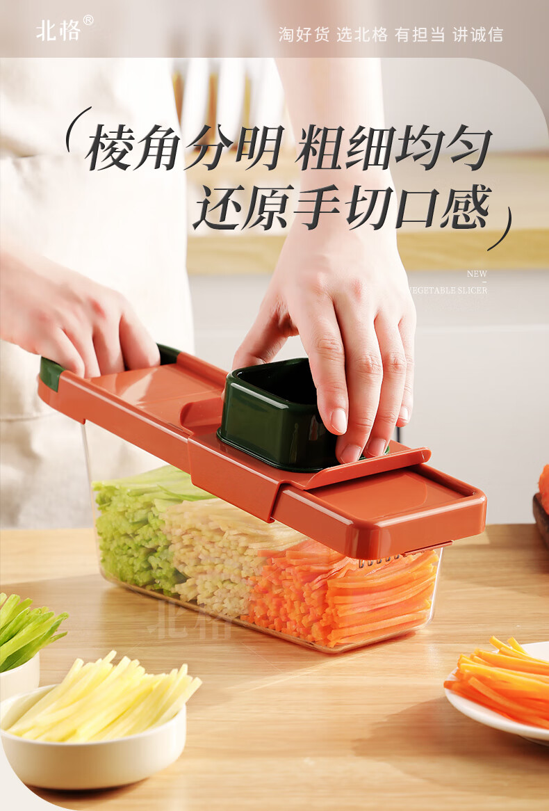 Beige's new grating and shredding device, household potato shredded thin grater, kitchen multi-functional radish thick shredded vegetable cutting tool, slice + thick shred + hand guard, restore chef's hand cutting