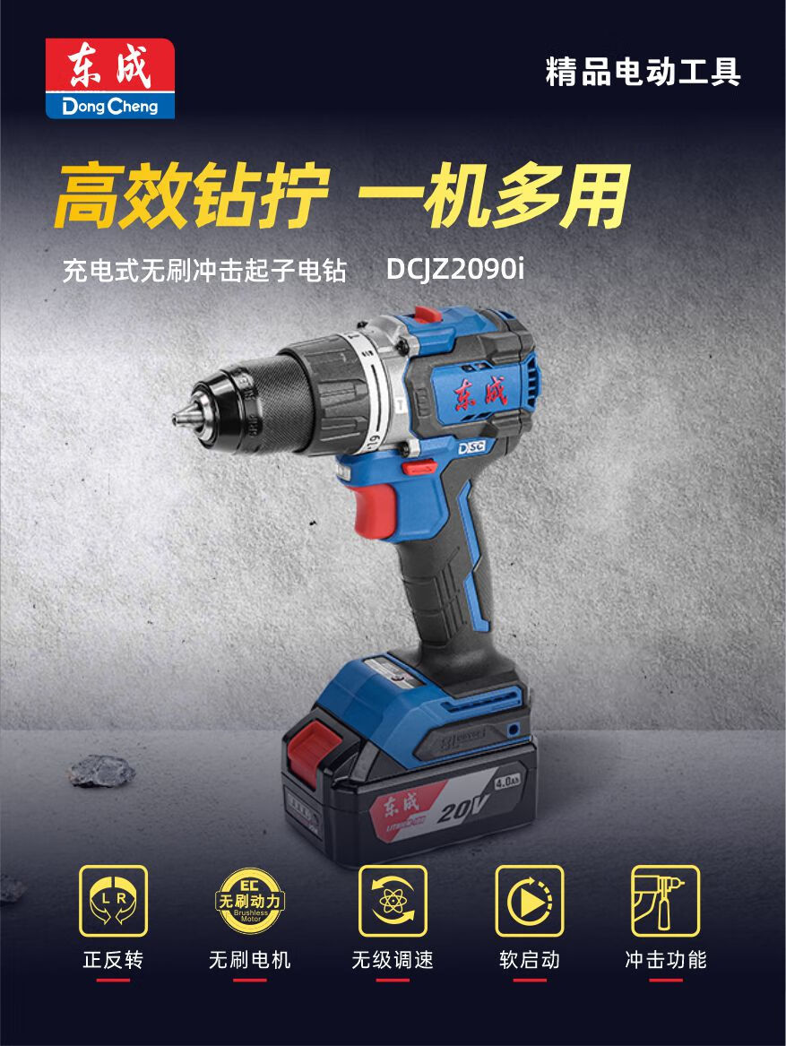 Dongcheng 20V lithium battery rechargeable brushless impact drill DCJZ2090i household multi-functional hand drill driver DCJZ2090i bare metal