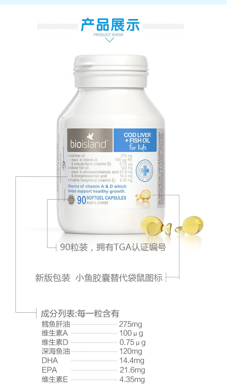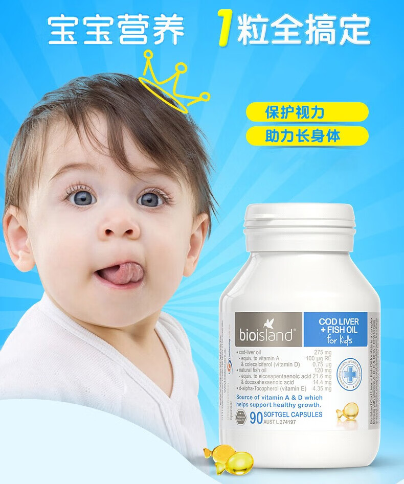 Bio Island deep-sea cod liver oil for infants and young children 90 capsules DHA+VD bonded fast release April 2028 cod oil DHA capsules 90 capsules vitamin E