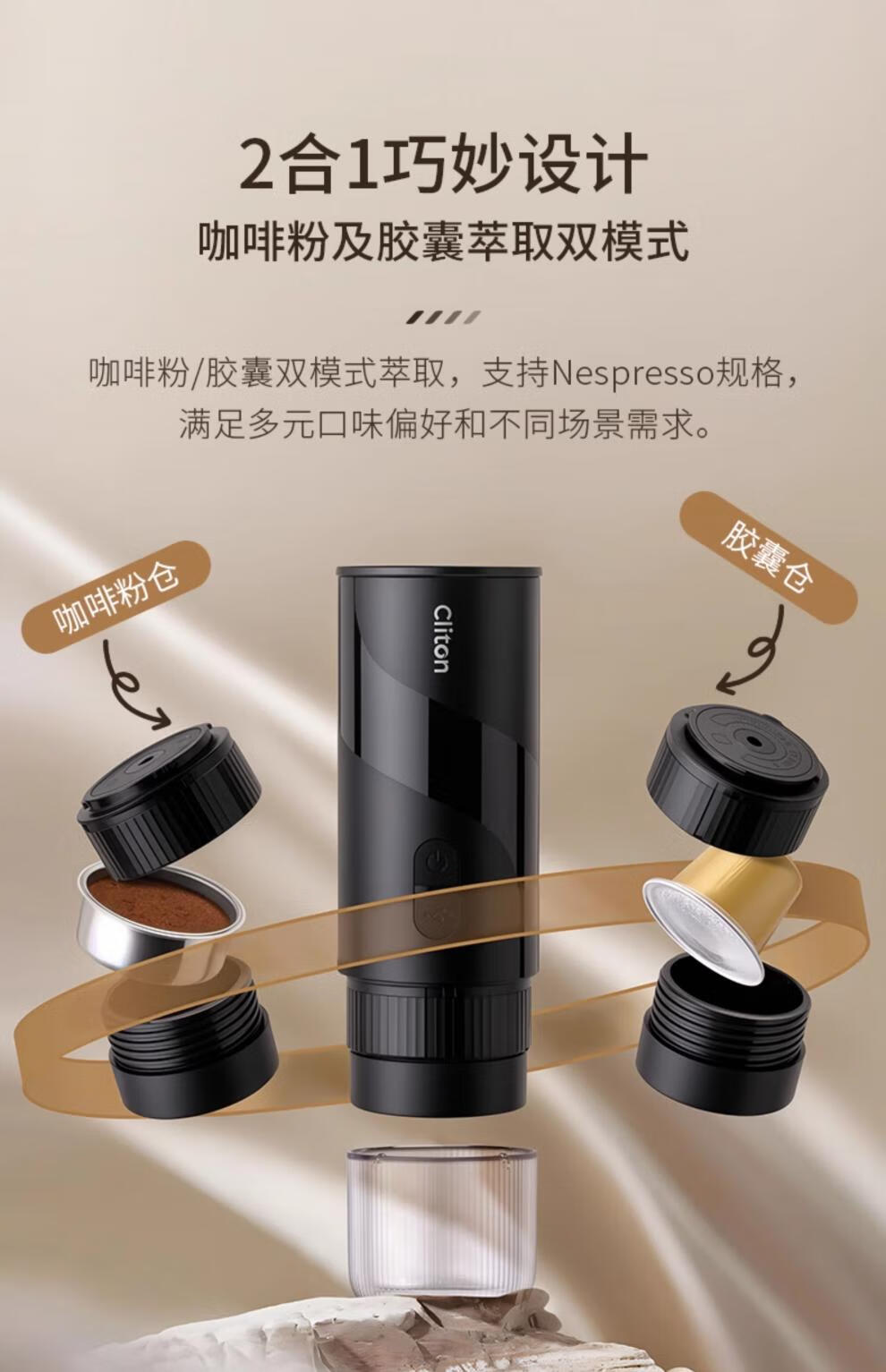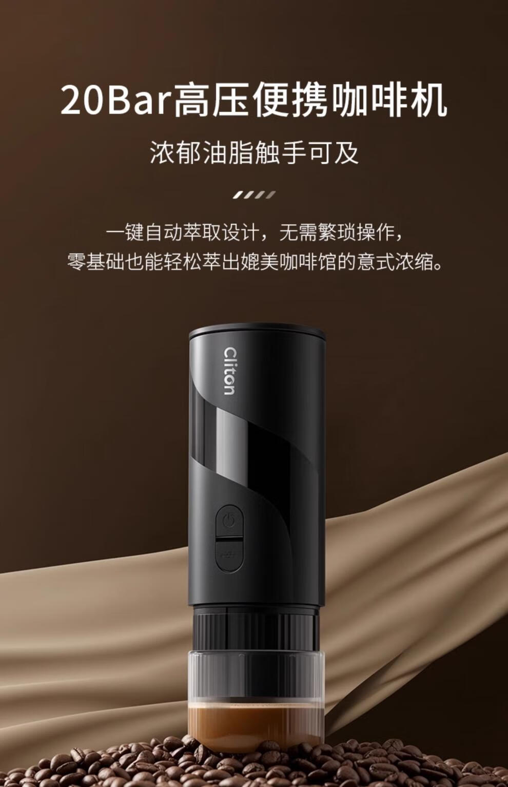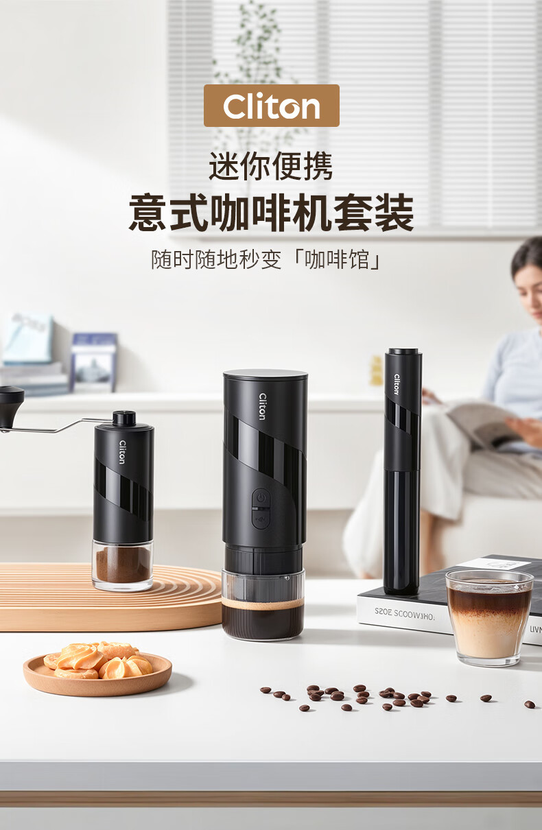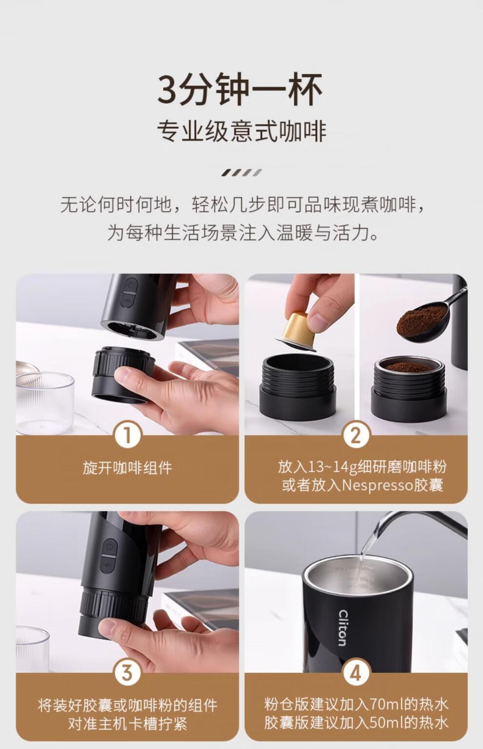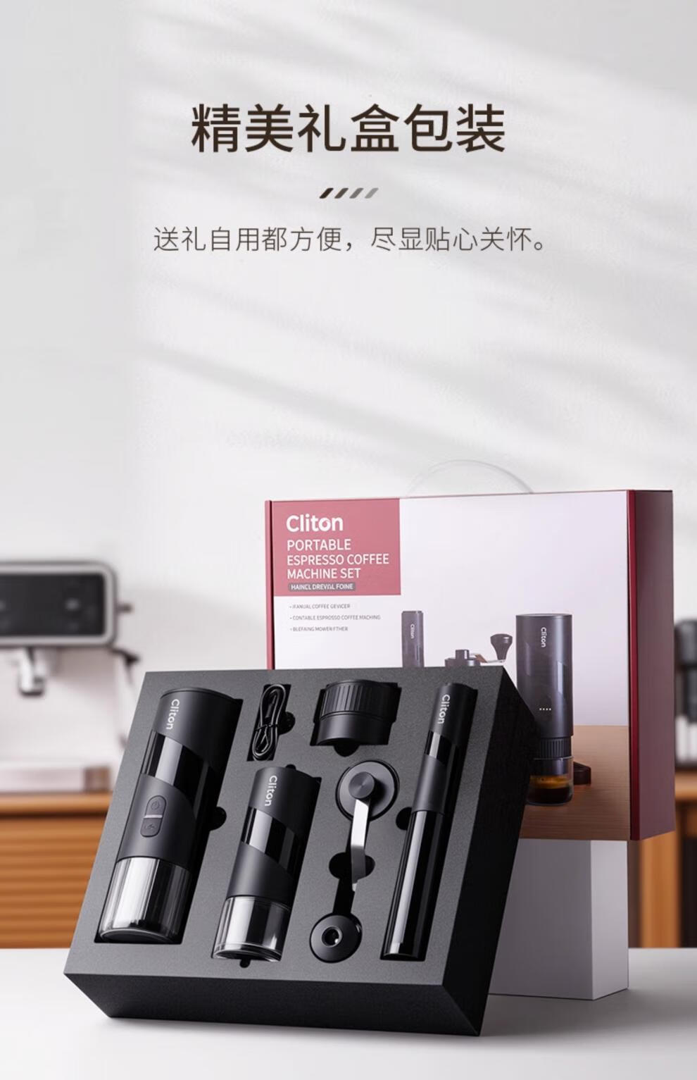 CLITON portable espresso machine set electric espresso machine capsule extraction small home outdoor office S2 portable coffee machine stainless steel water tank + capsule/