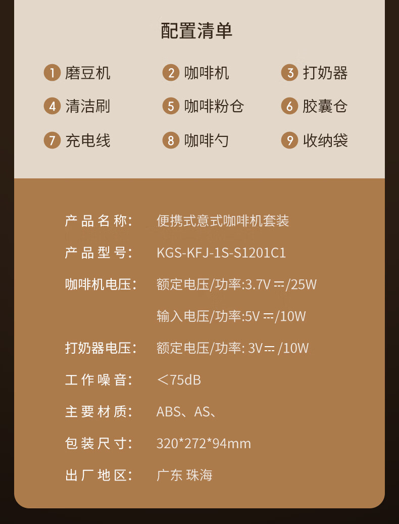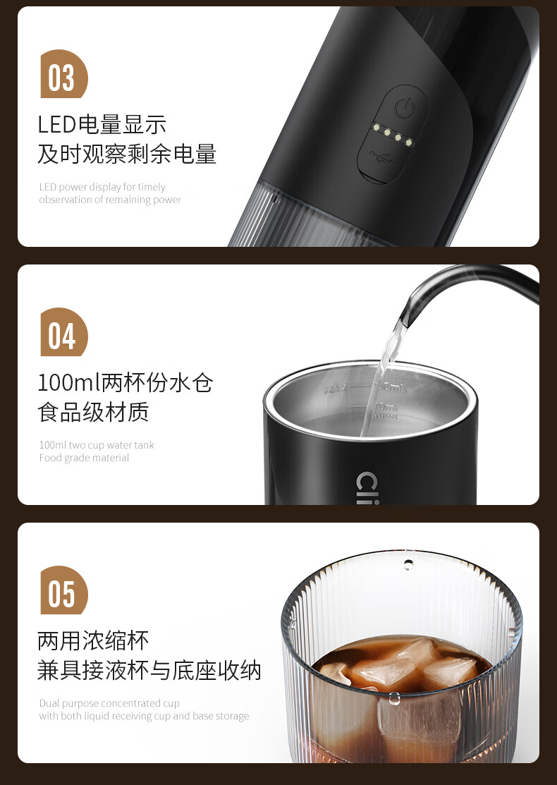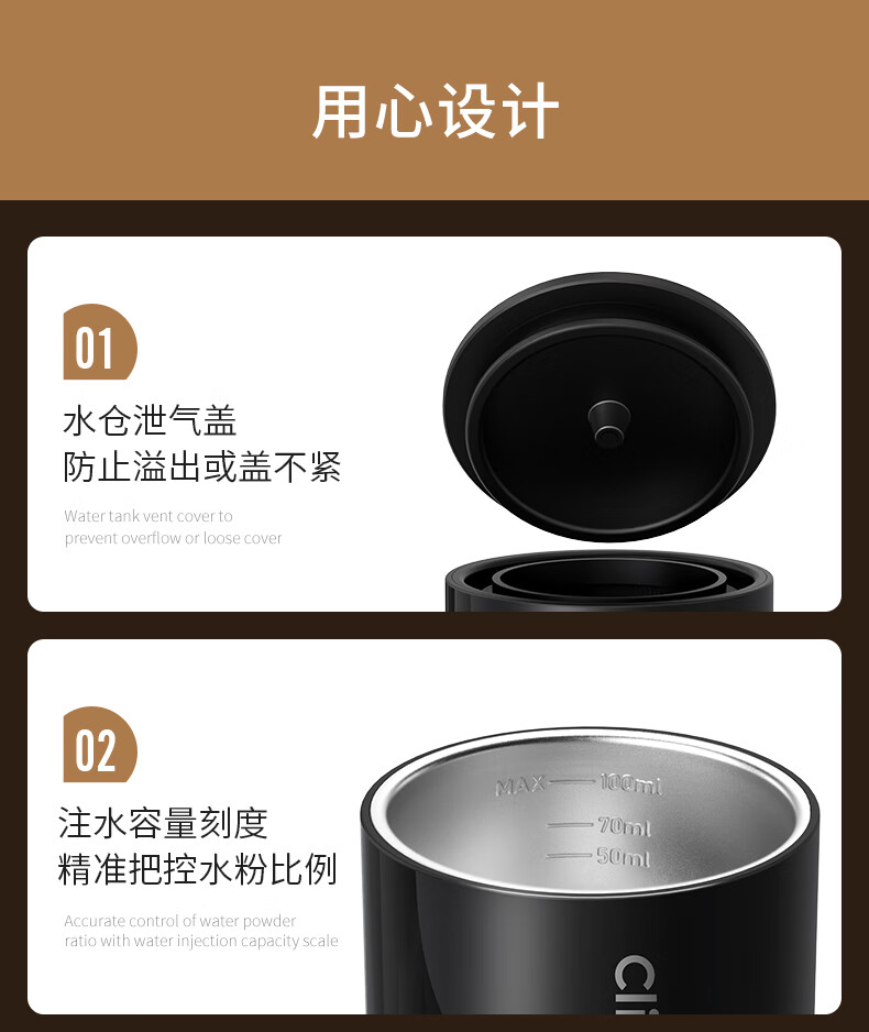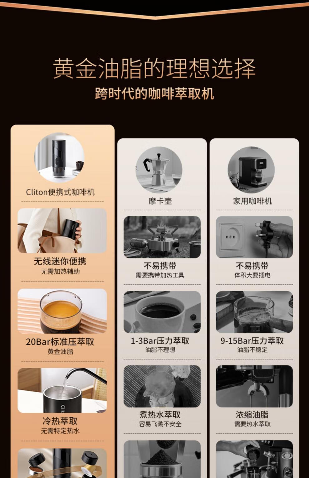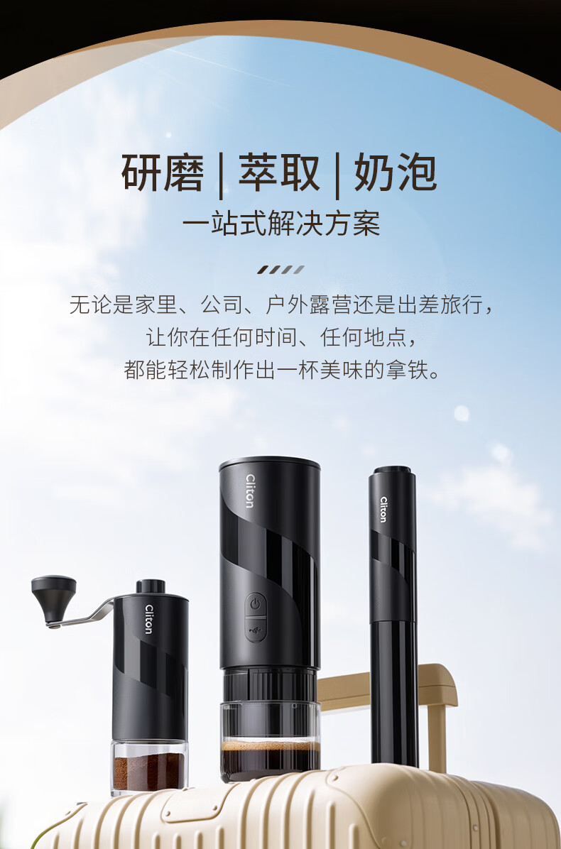 CLITON portable espresso machine set electric espresso machine capsule extraction small home outdoor office S2 portable coffee machine stainless steel water tank + capsule/