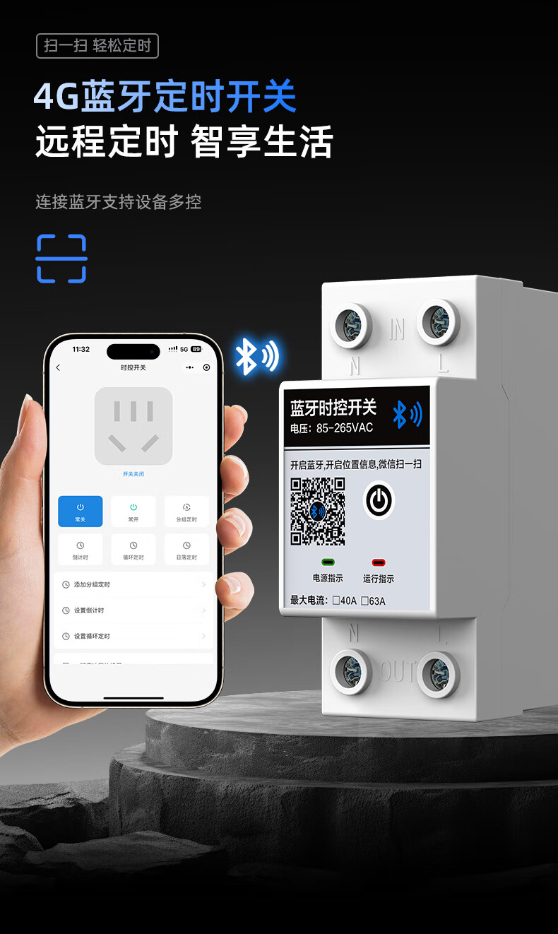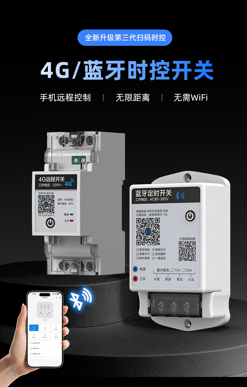 4G/Bluetooth remote switch mobile phone control outdoor wireless remote control longitude and latitude time control switch controller 220V Bluetooth time control switch 10A (wall-mounted)