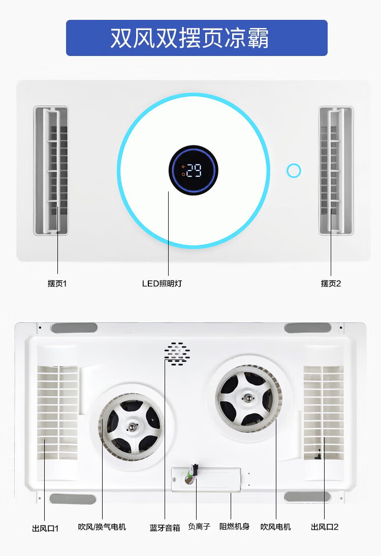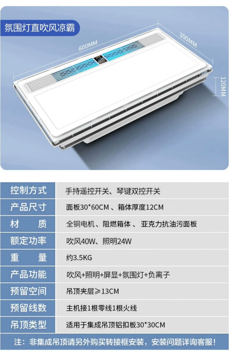 Opda Kitchen Special Cooler Cooler Suspended Ceiling Embedded Lighting Ventilation Air Conditioner Three Motors Extra Large Double Blower Double Swing Page*9 120mm High