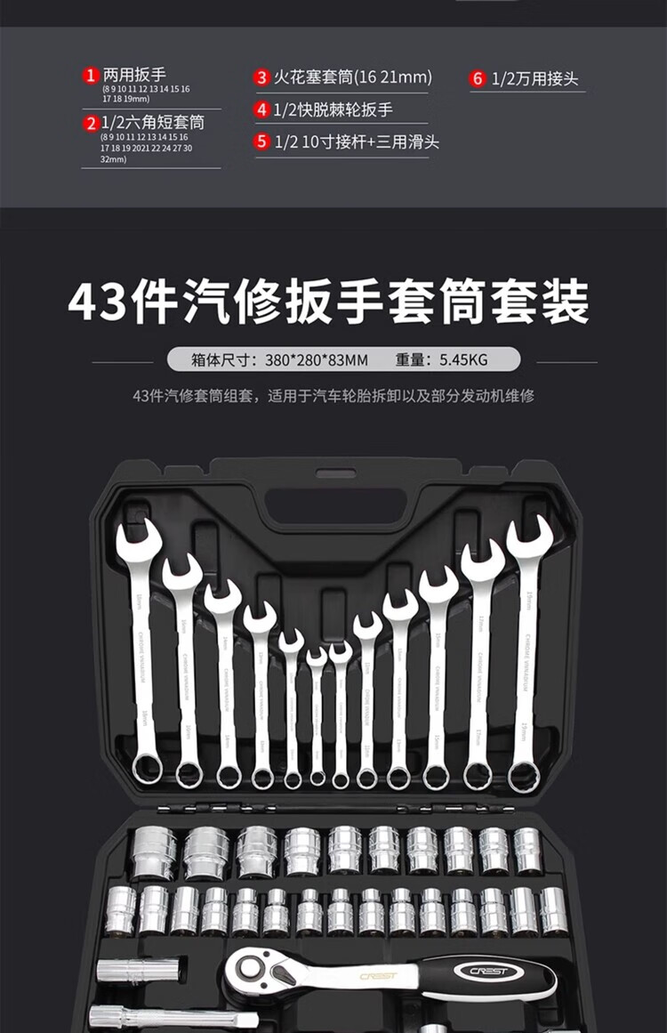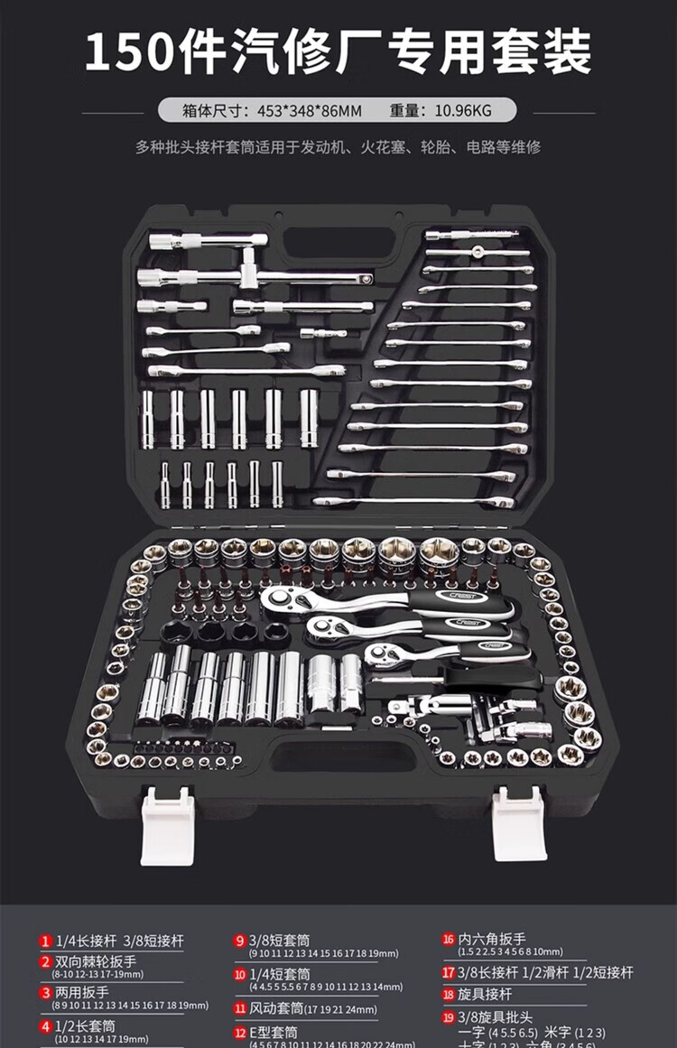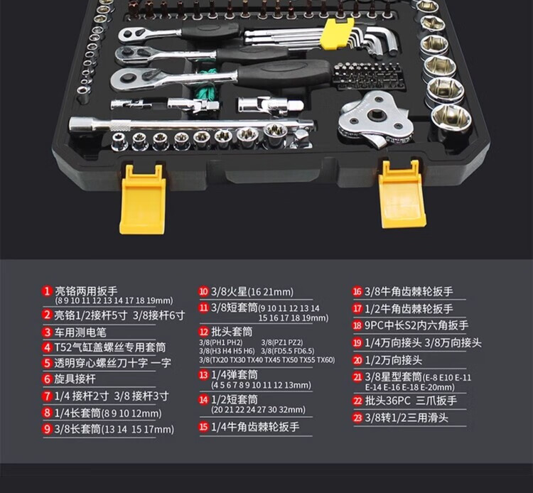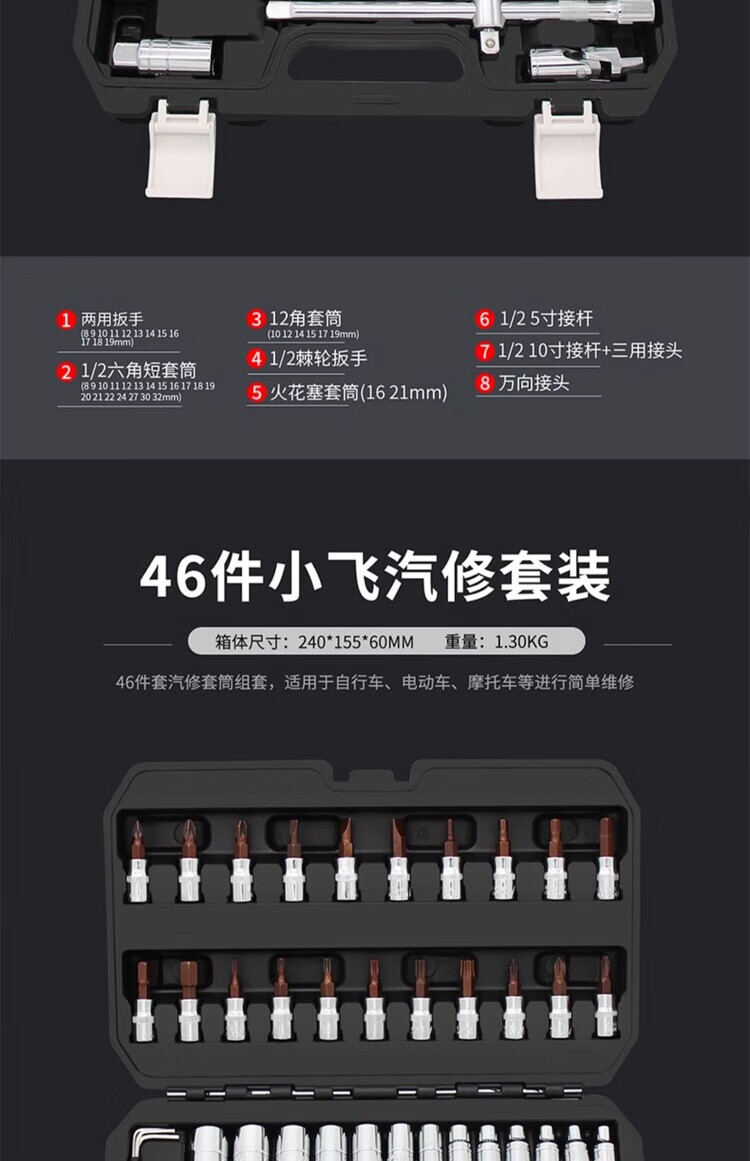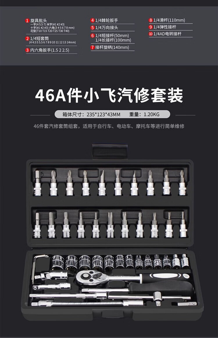 Bangyue German tool set household industrial-grade complete set of auto repair electrician hardware box car repair socket combination repair 24-tooth straight handle ratchet 46-piece small fly set