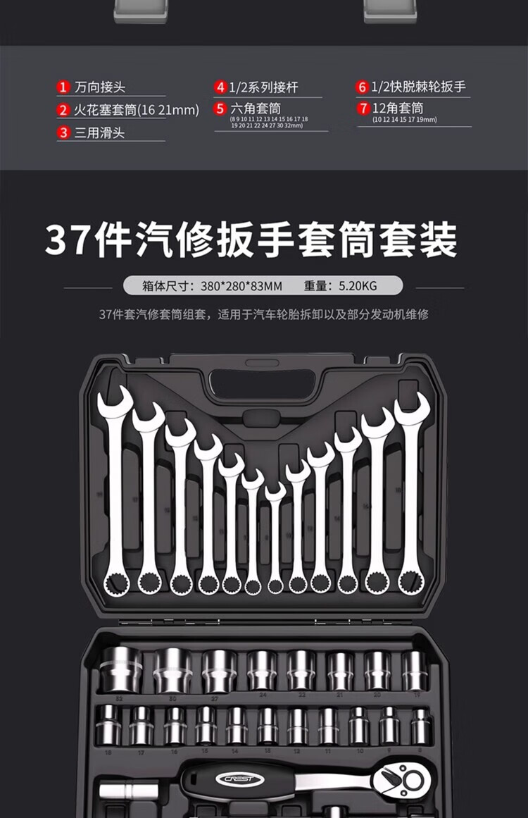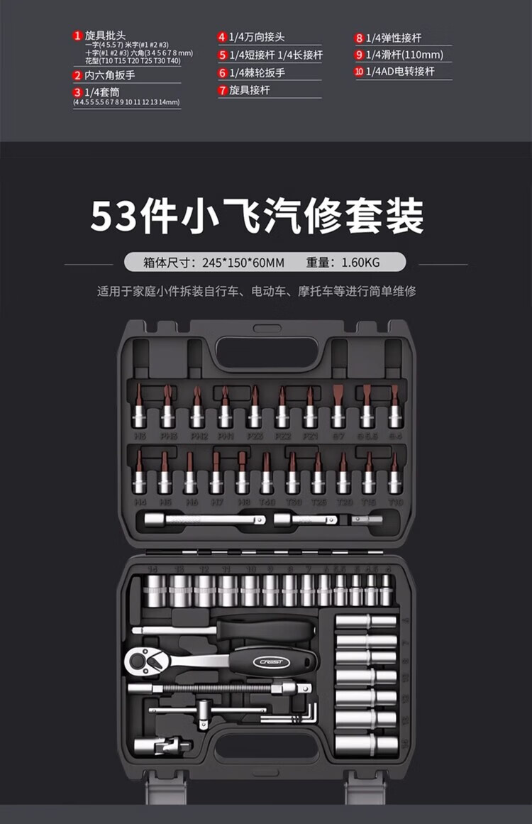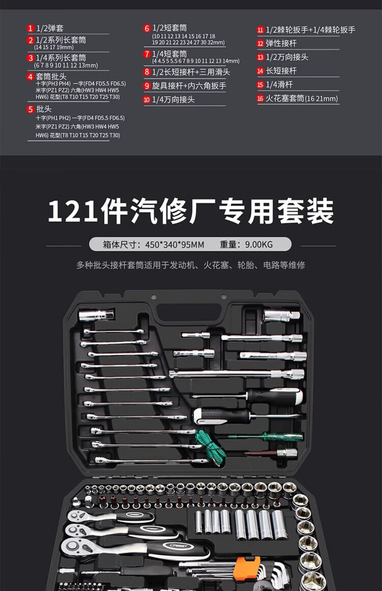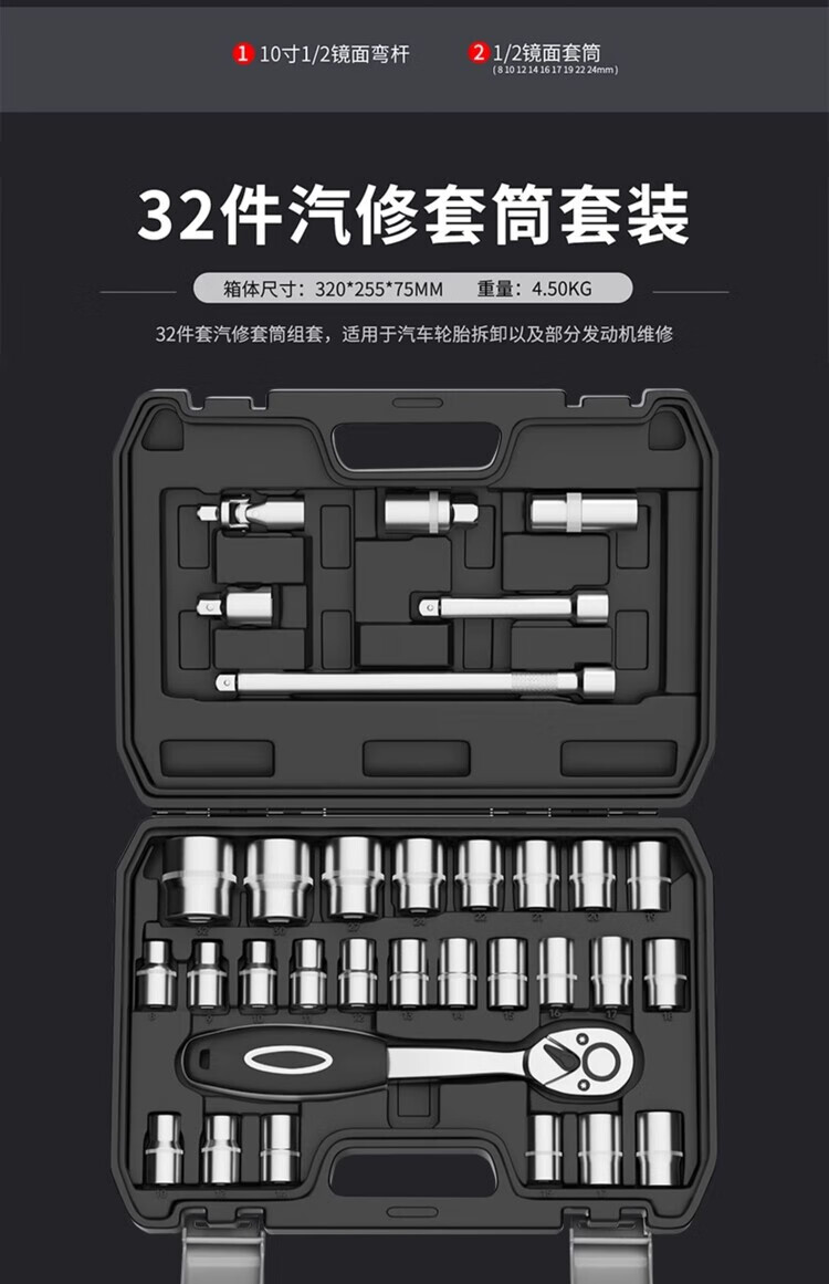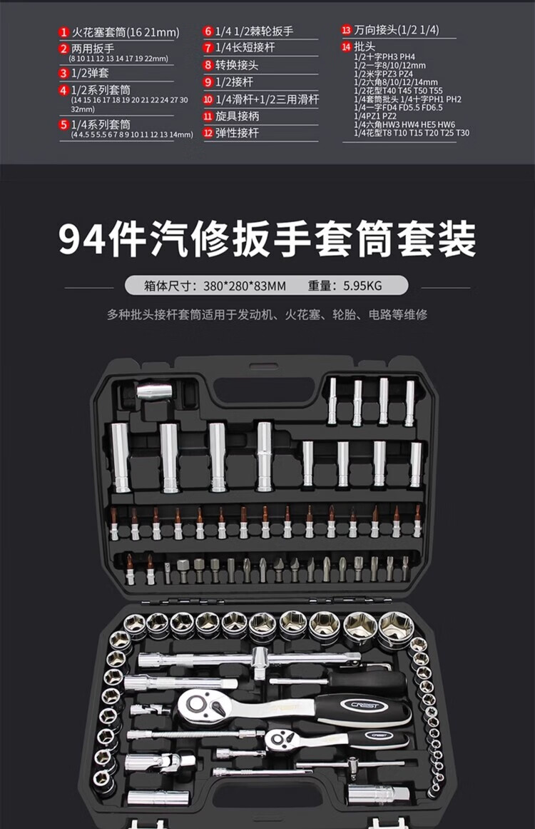 Bangyue German tool set household industrial-grade complete set of auto repair electrician hardware box car repair socket combination repair 24-tooth straight handle ratchet 46-piece small fly set