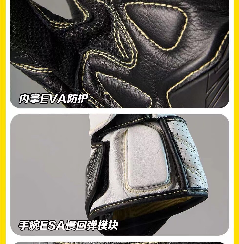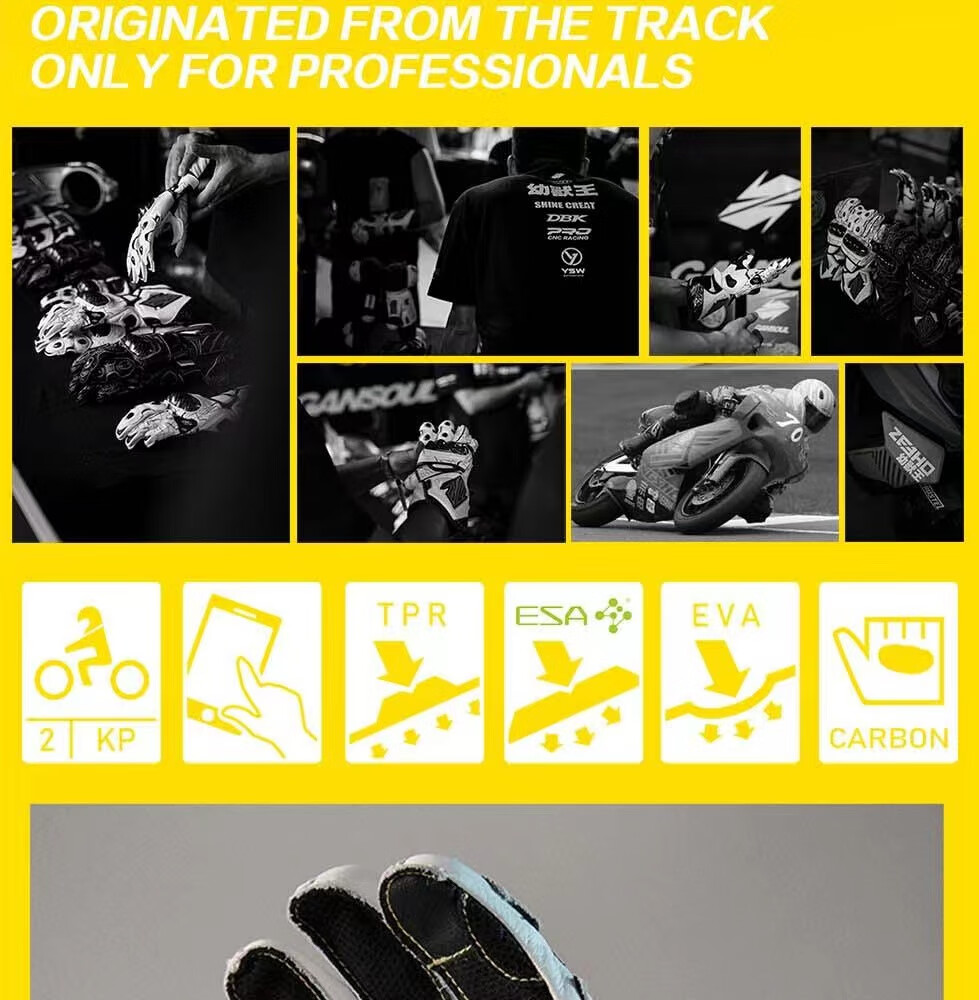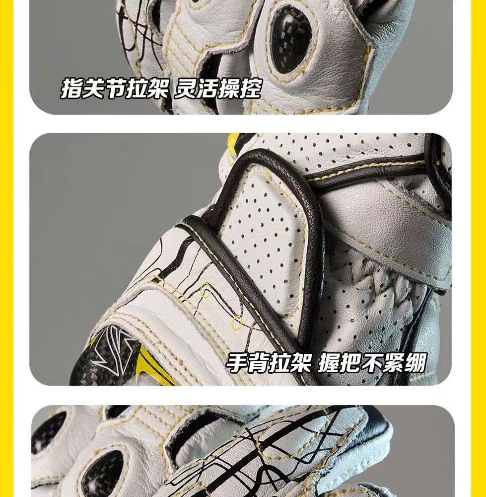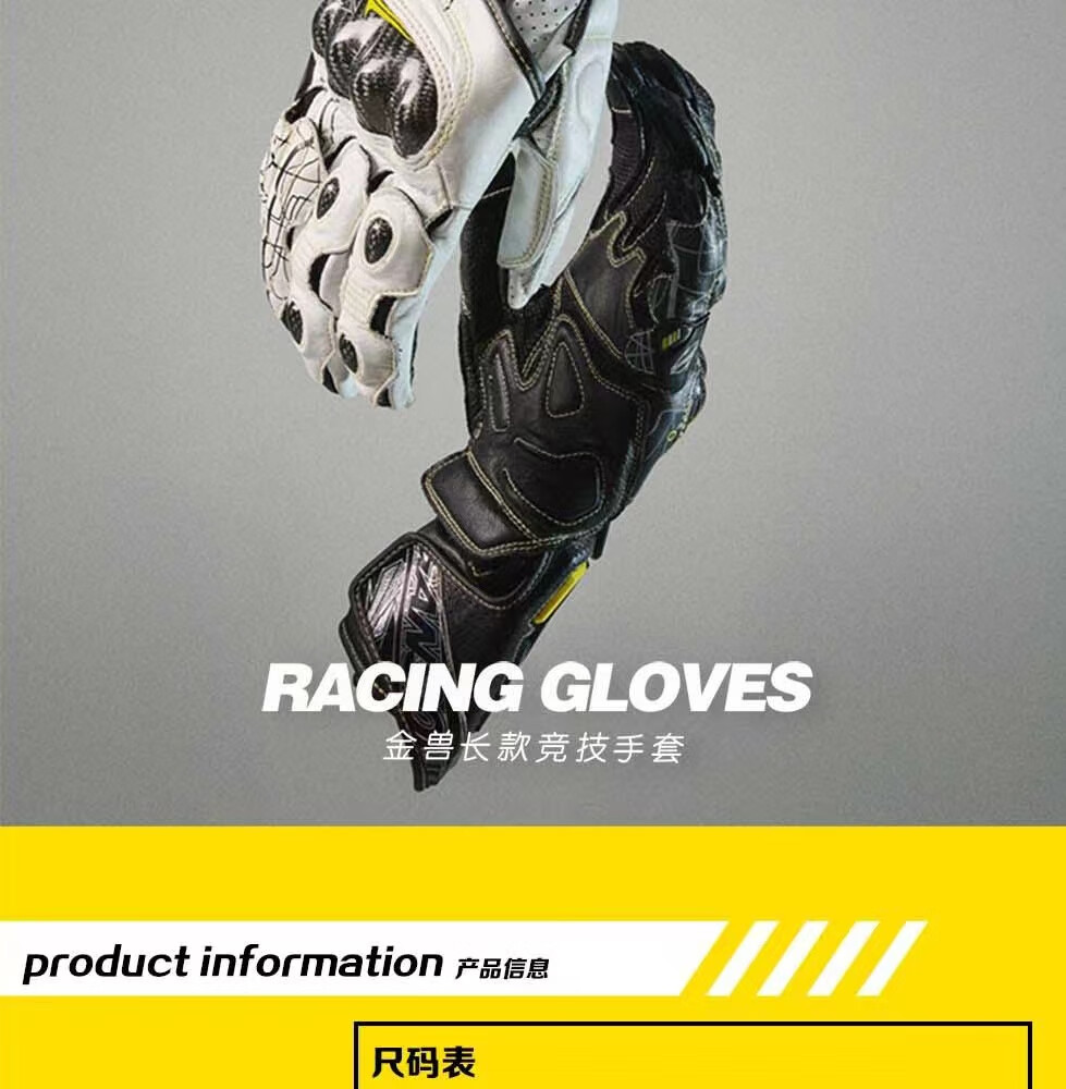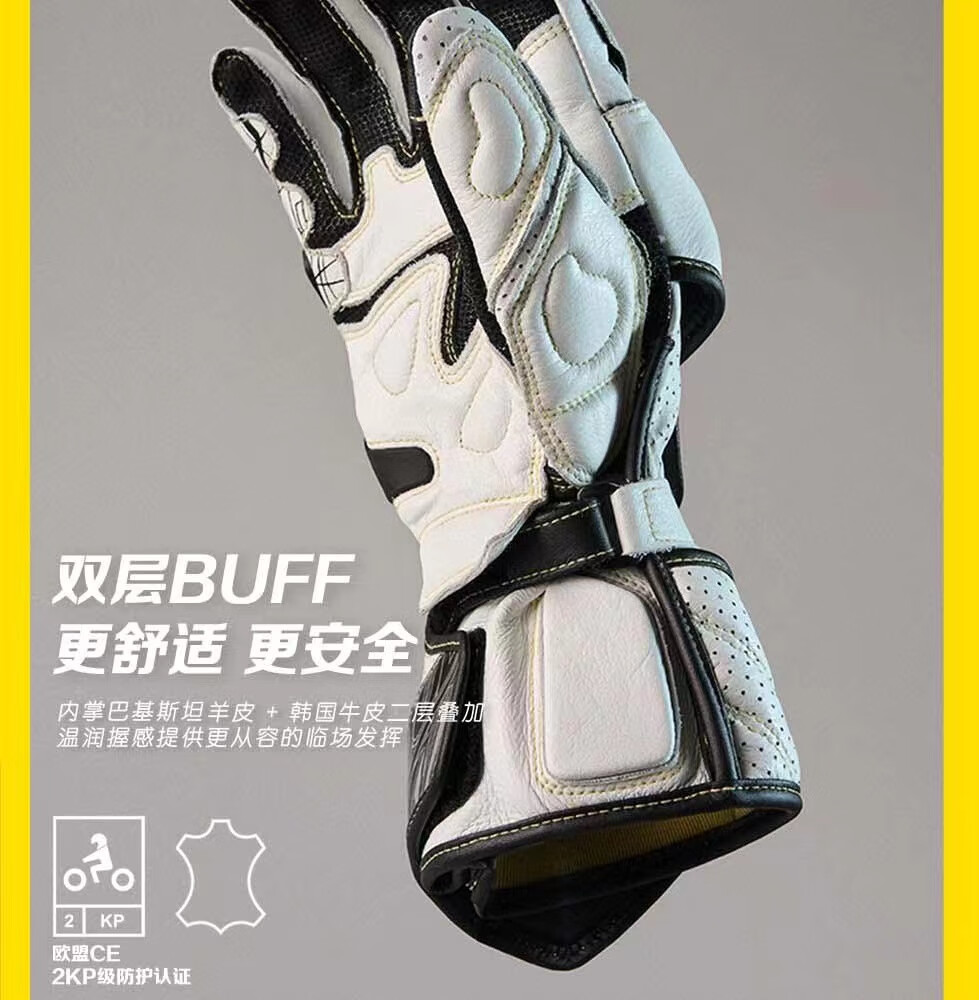GANSOULWANGGanSoul Golden Beast Long Racing Cycling Gloves Motorcycle Carbon Fiber CE2 Track Leather Gloves Aurora White Tech Track Racing Gloves Shipped by SF Express M