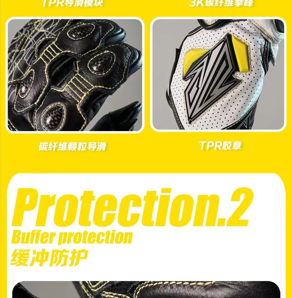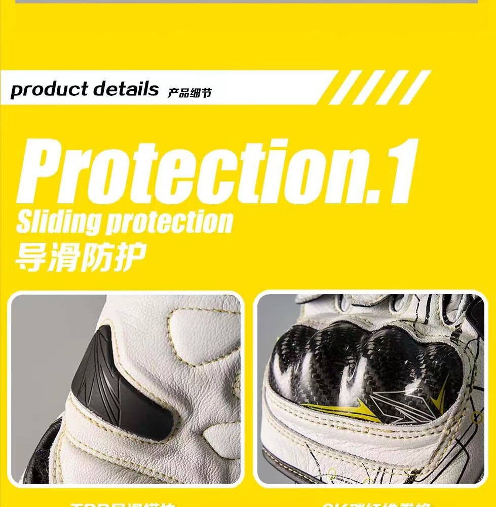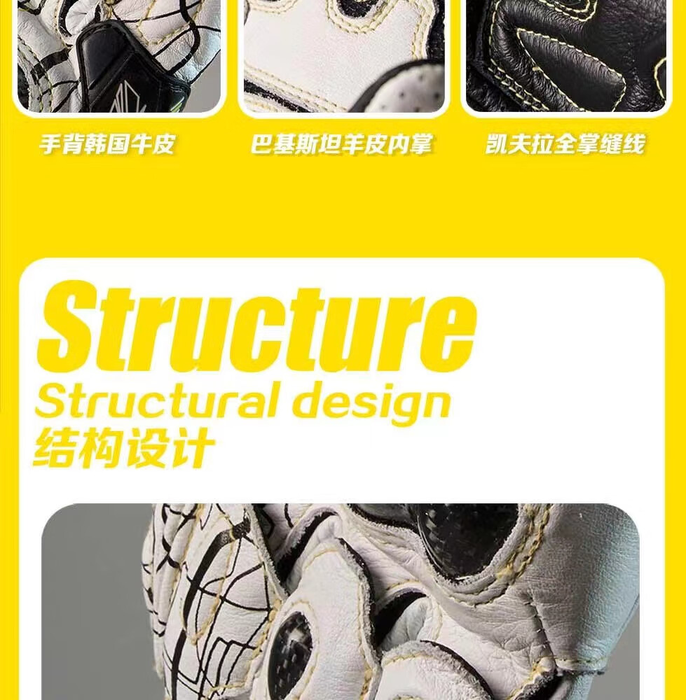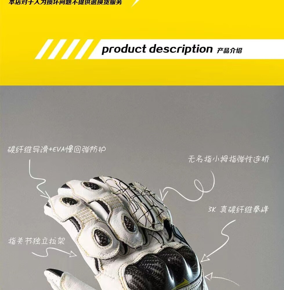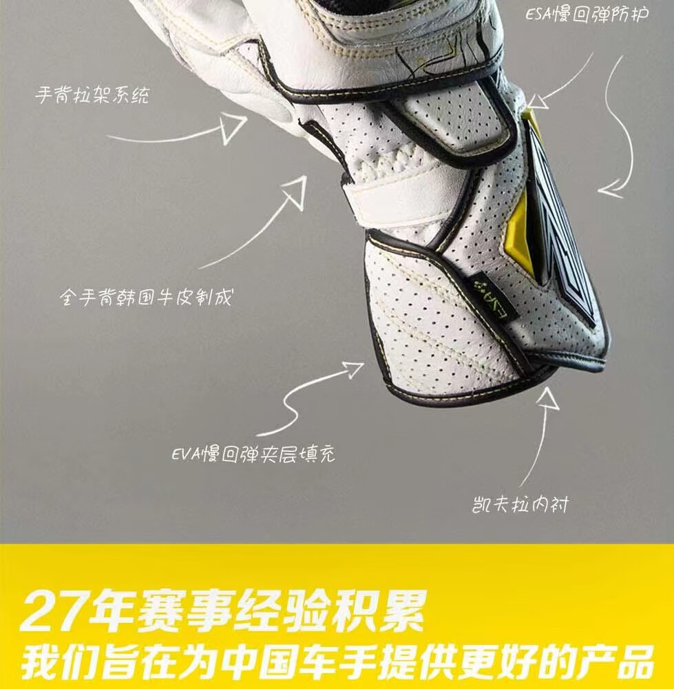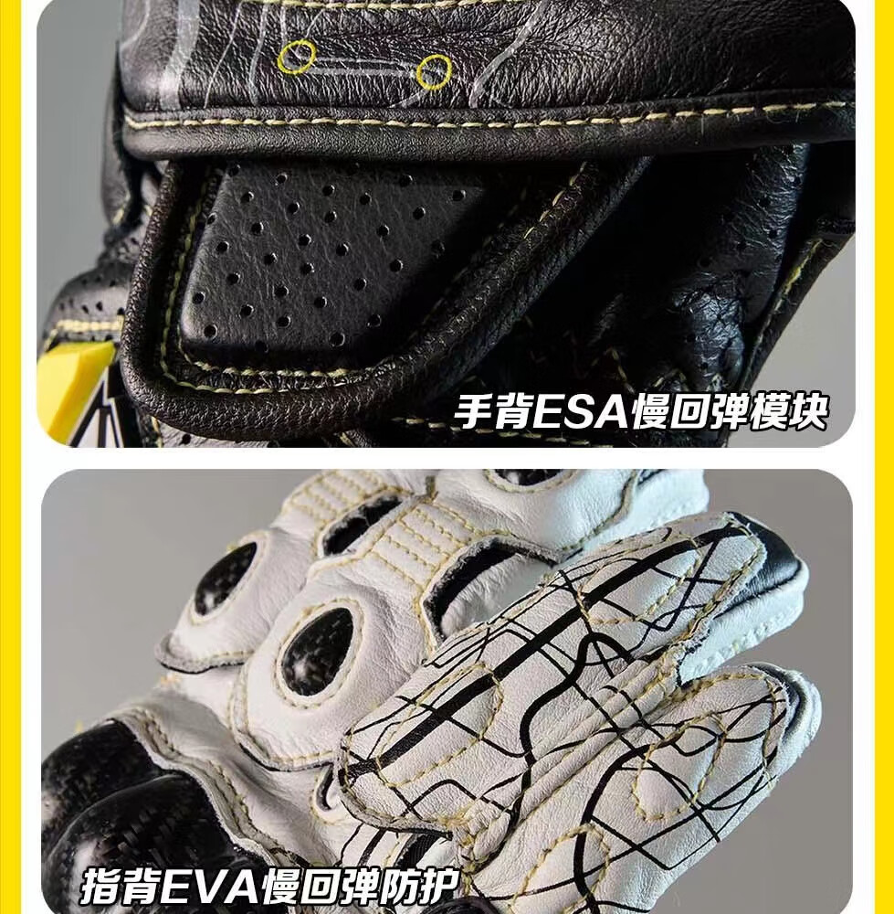 GANSOULWANGGanSoul Golden Beast Long Racing Cycling Gloves Motorcycle Carbon Fiber CE2 Track Leather Gloves Aurora White Tech Track Racing Gloves Shipped by SF Express M