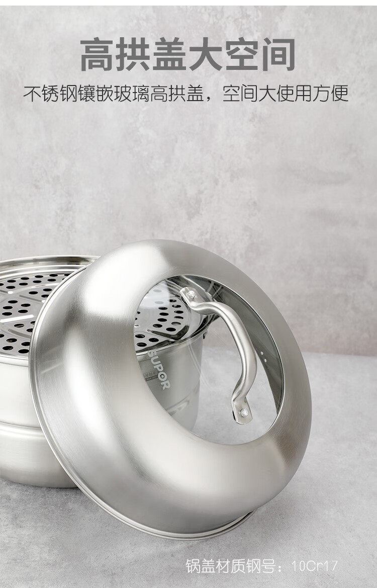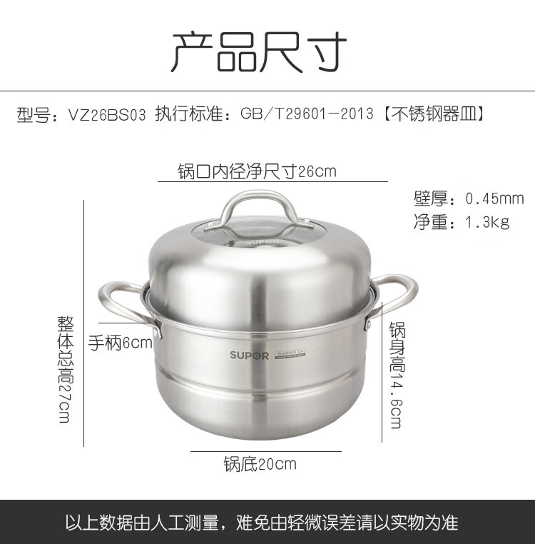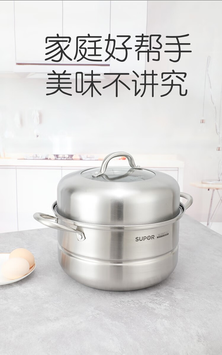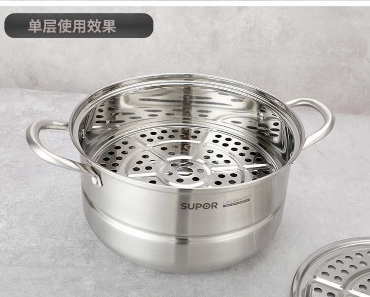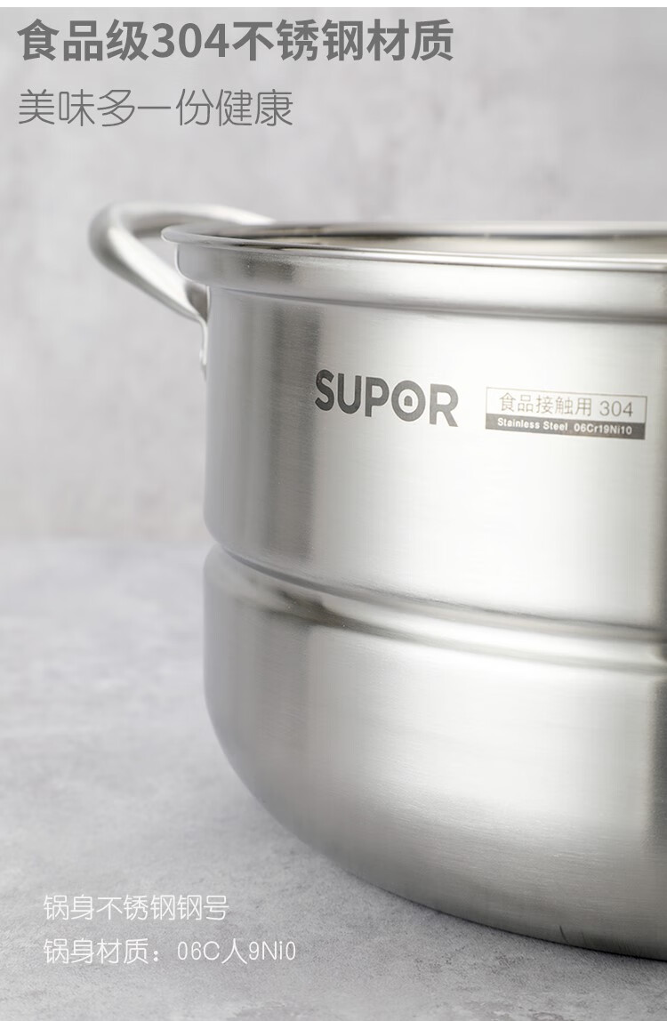 Supor steamer 304 stainless steel double-layer 2-layer integrated single-bottom soup pot for steaming steamed buns and cooking noodles for gas stoves 26 26cm